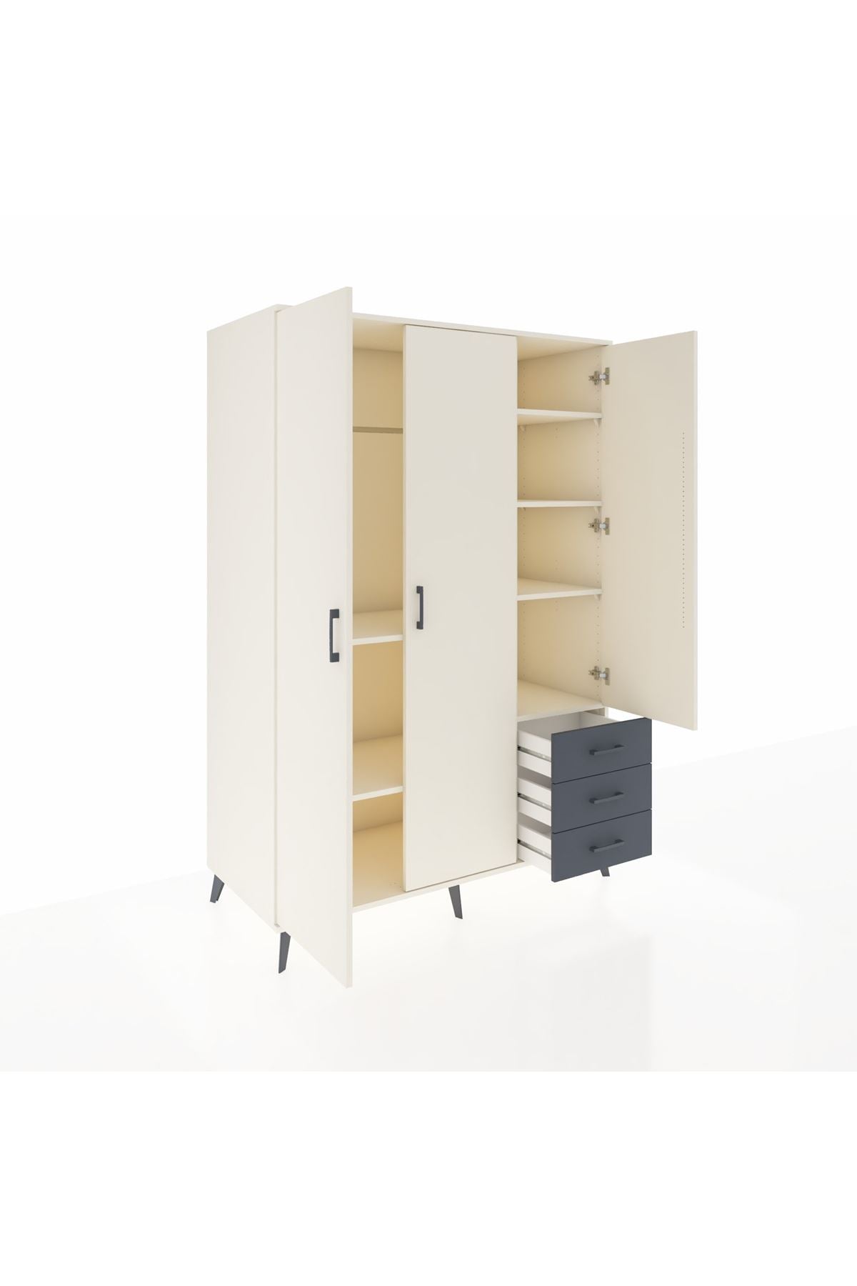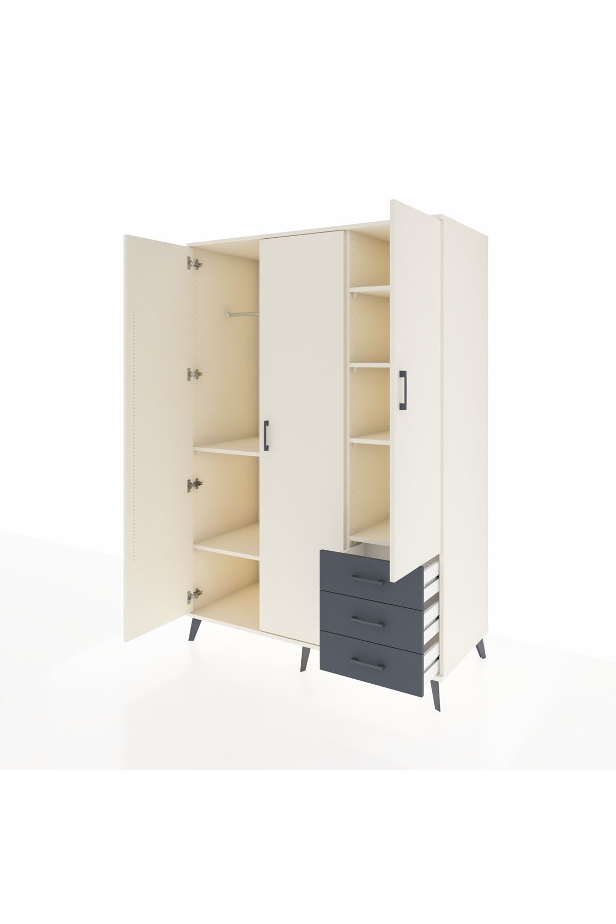 Kronos Dolap 6 Raflı 3 Çekmeceli Tek Askılı 132x59x195 Aytaşı-Aytaşı/Antrasit