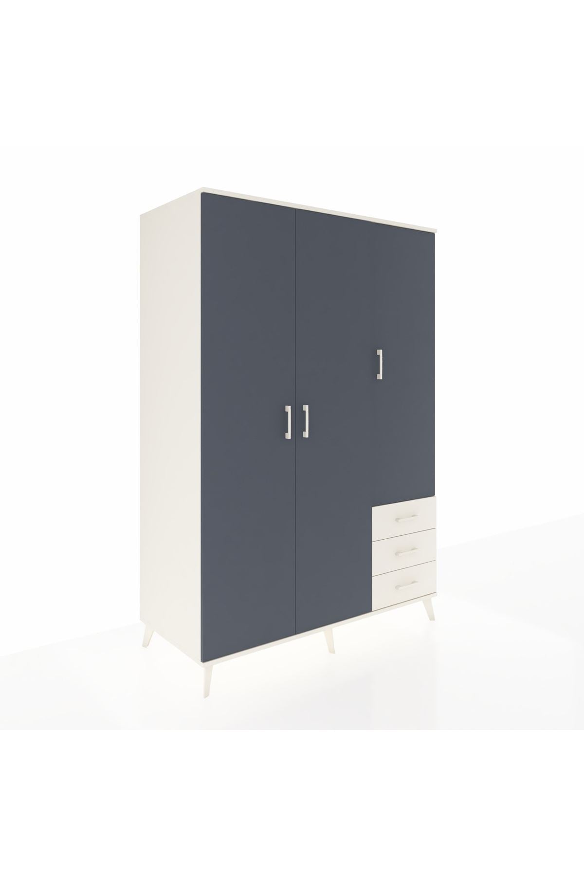 Kronos Dolap 6 Raflı 3 Çekmeceli Tek Askılı 132x59x195 Aytaşı-Antrasit/Aytaşı