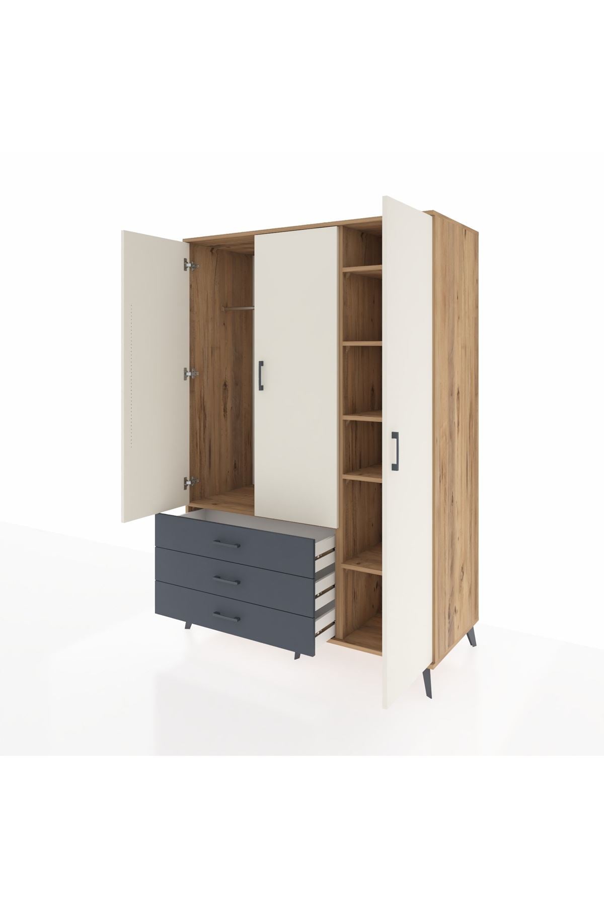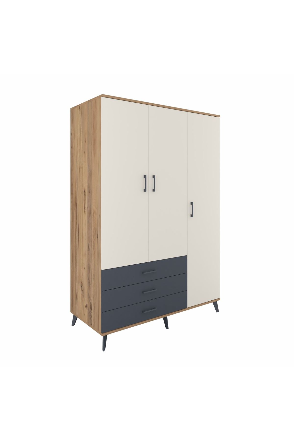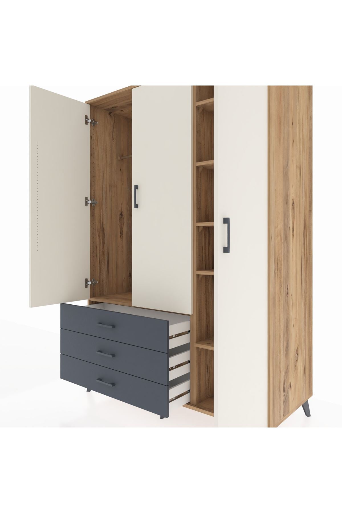 Kronos Dolap 6 Raflı 3 Çekmeceli Tek Askılı 132x59x195 Çam-Aytaşı/Antrasit