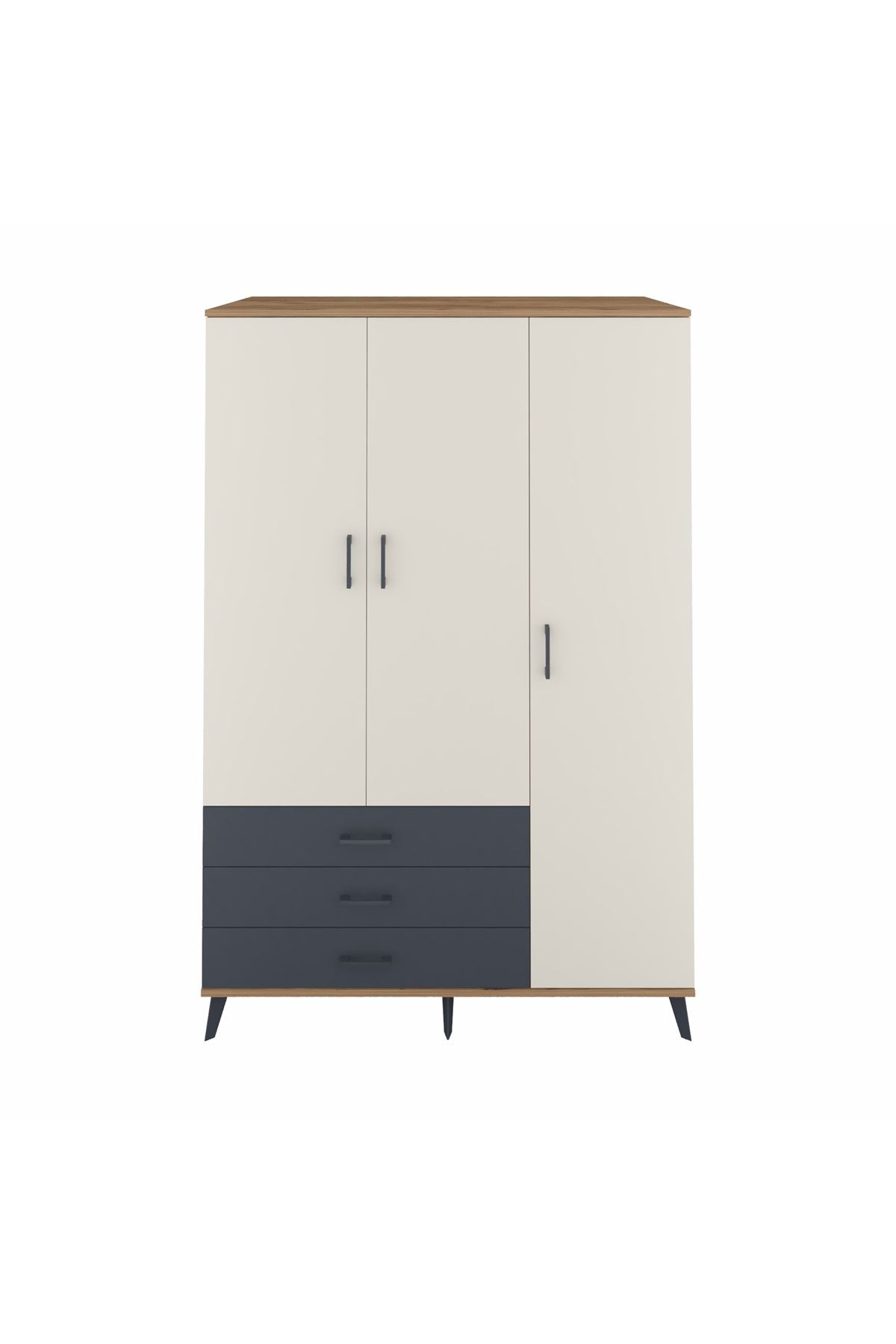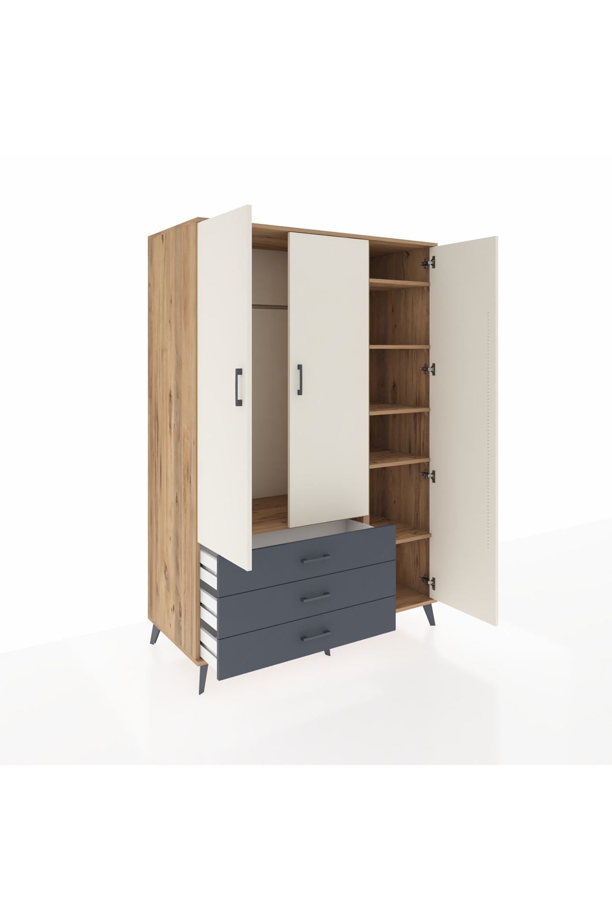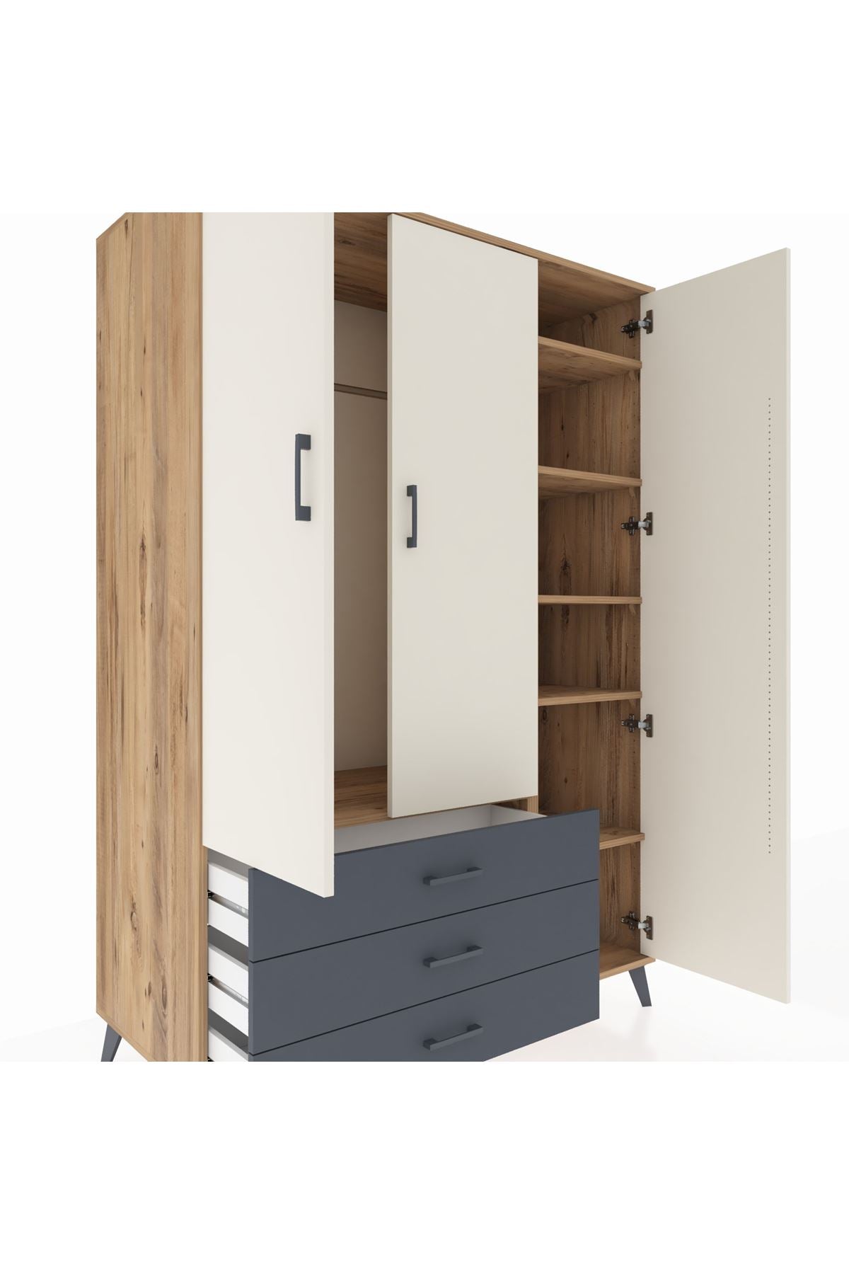 Kronos Dolap 6 Raflı 3 Çekmeceli Tek Askılı 132x59x195 Çam-Aytaşı/Antrasit