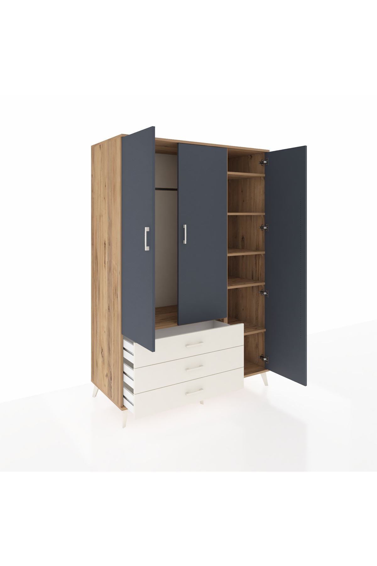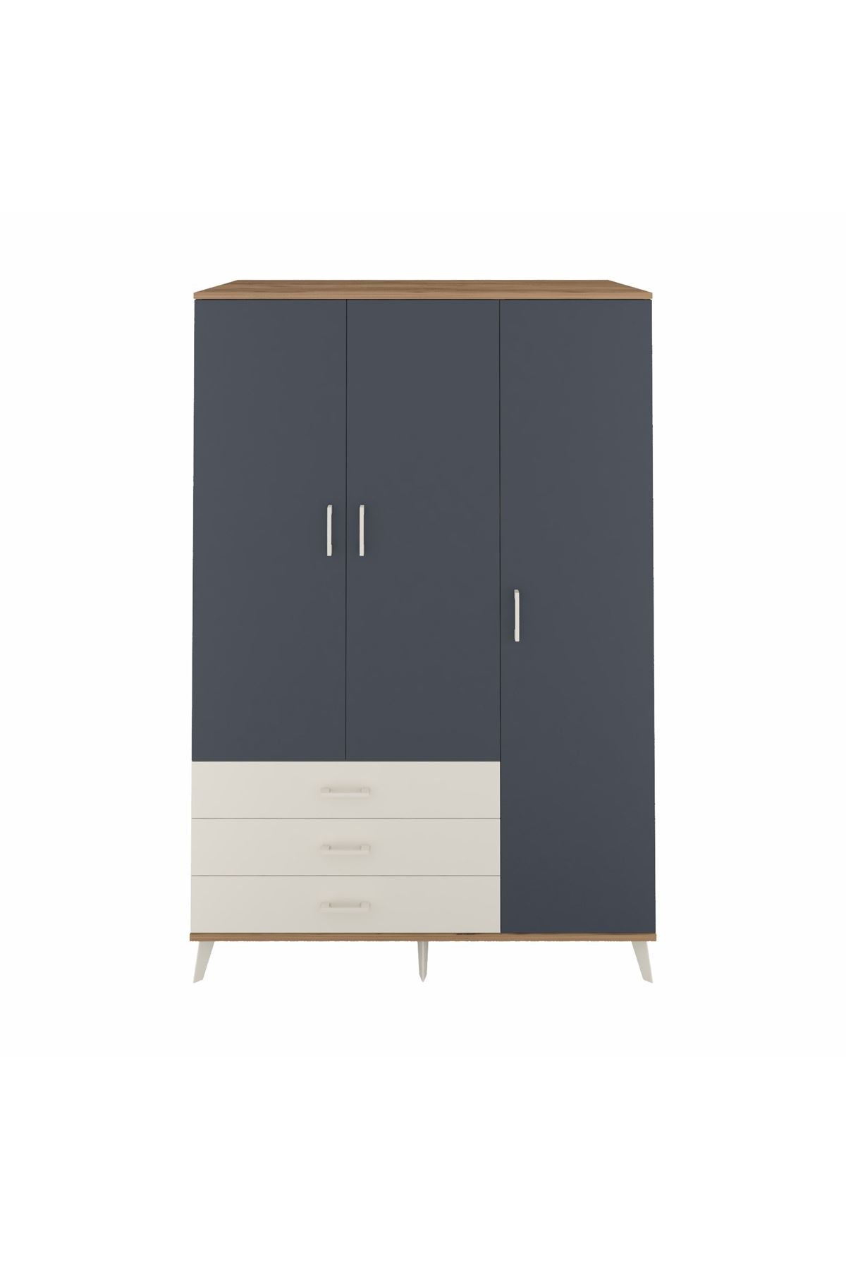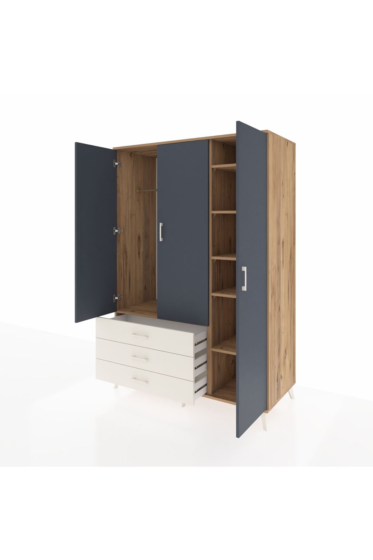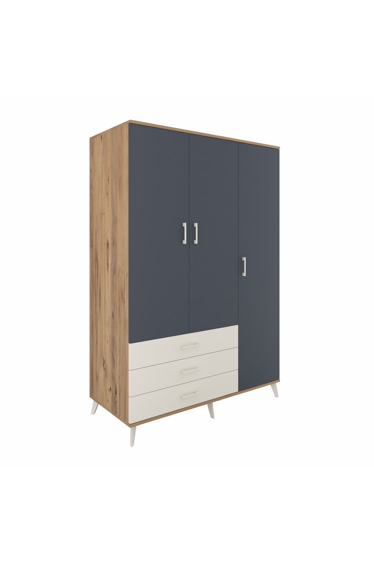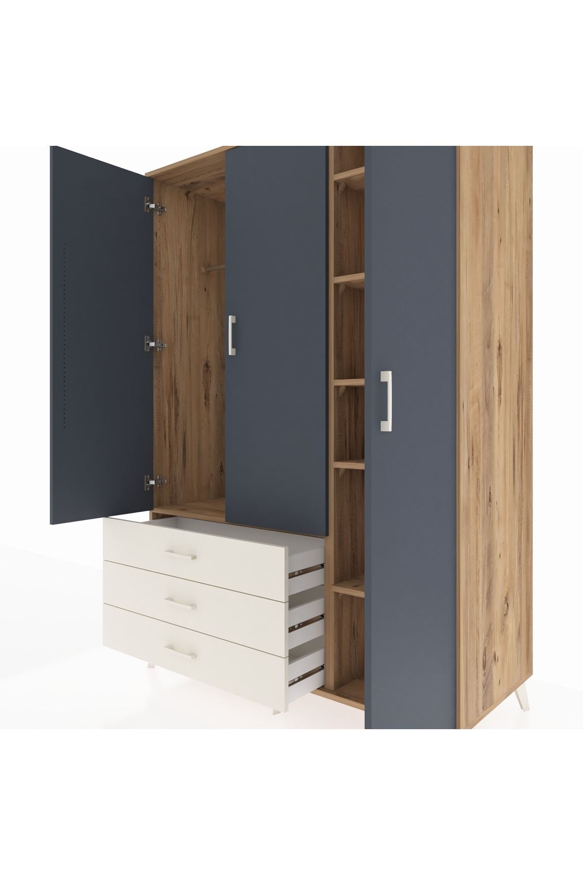 Kronos Dolap 6 Raflı 3 Çekmeceli Tek Askılı 132x59x195 Çam-Antrasit/Aytaşı