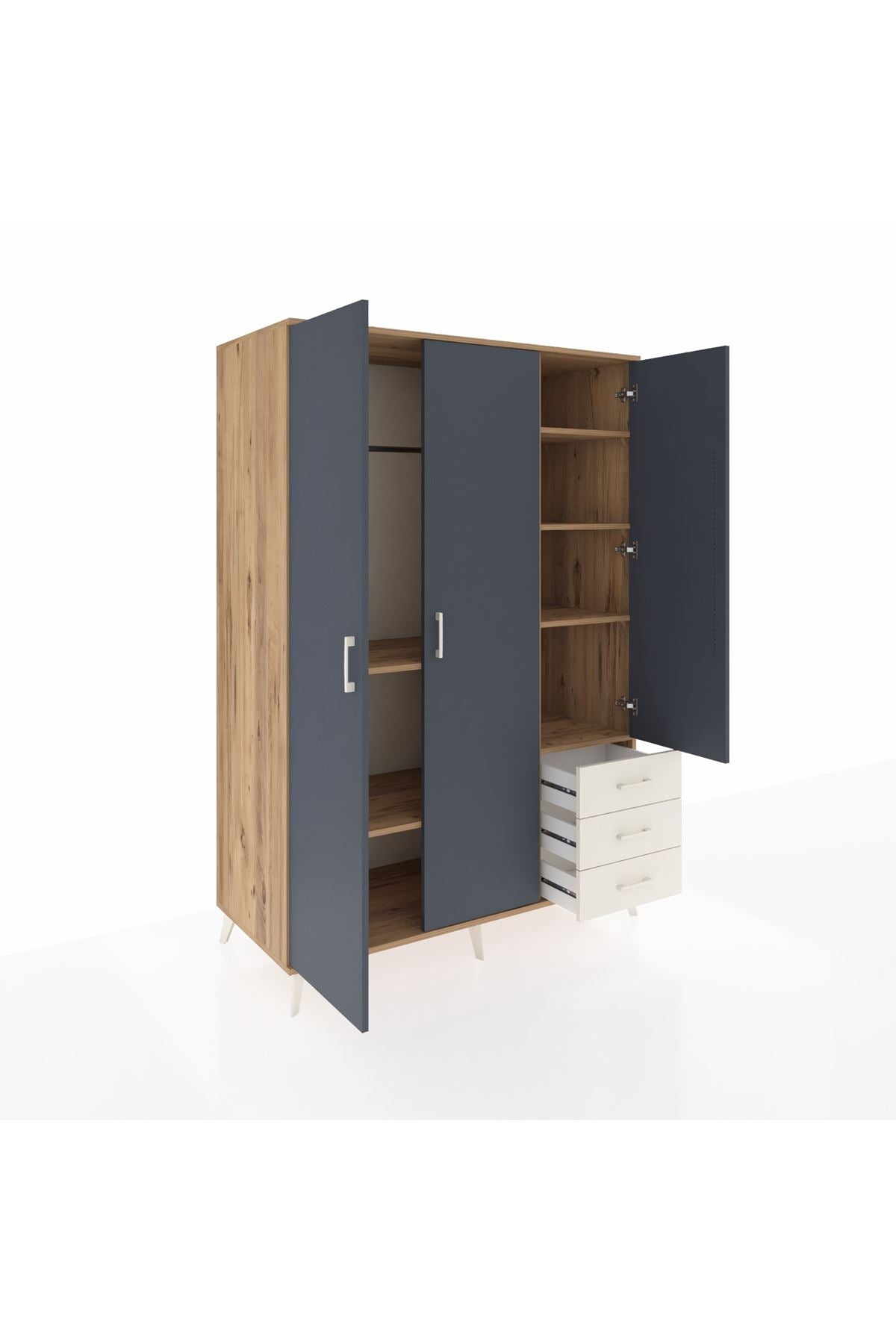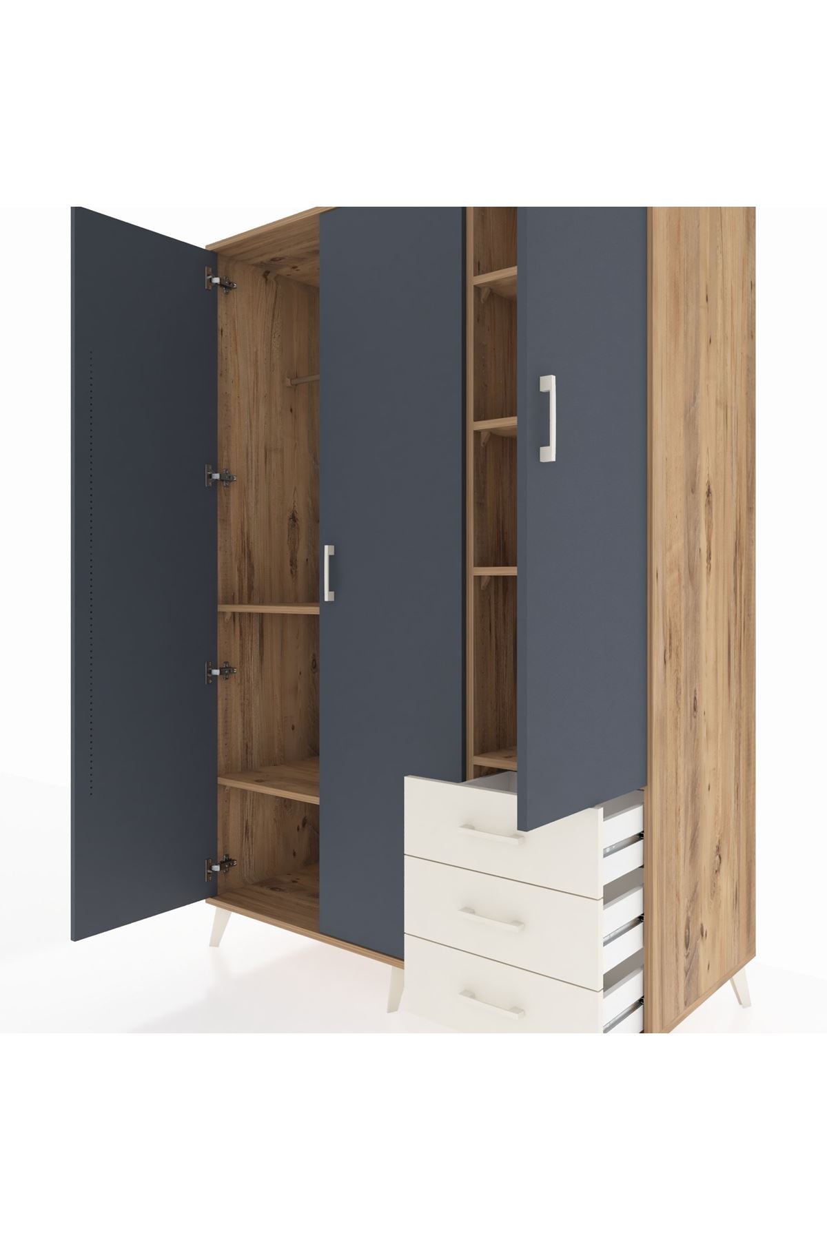 • Yatak odası dolabı: Çok çekmeceli yapısıyla düzenli tekstil depolaması sunar.