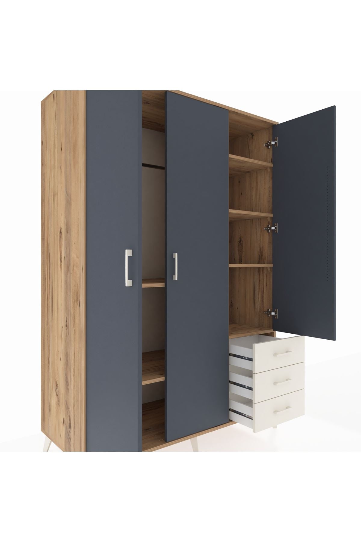 🌞 Kronos Dolap 7 Raflı 4 Çekmeceli 3 Kapaklı 132x59x195 Aytaşı-Çam/Antrasit