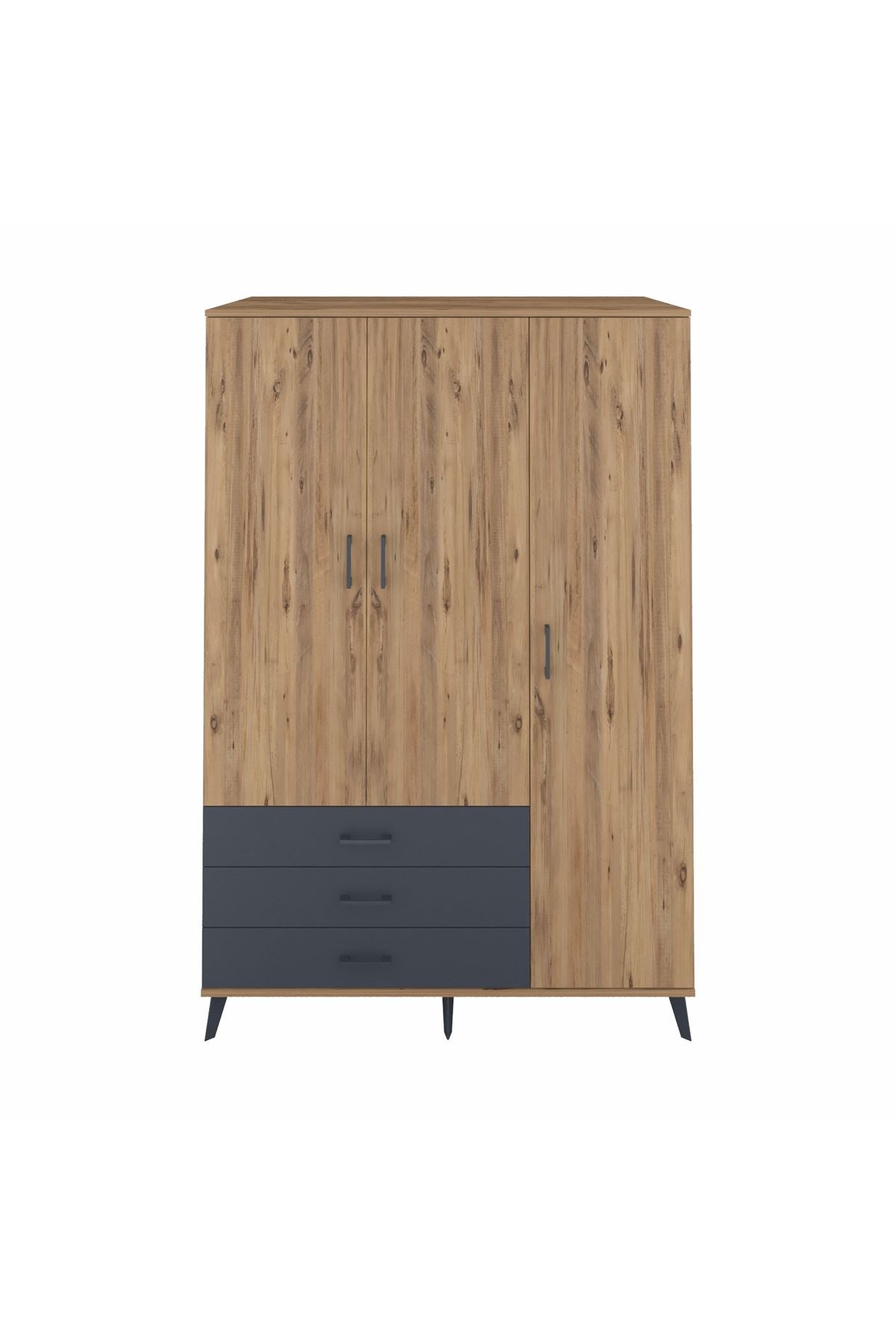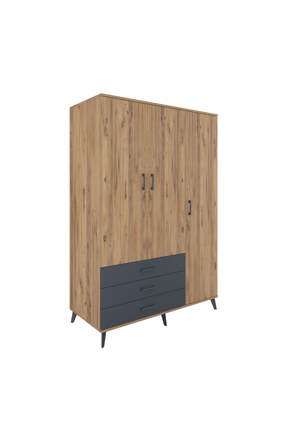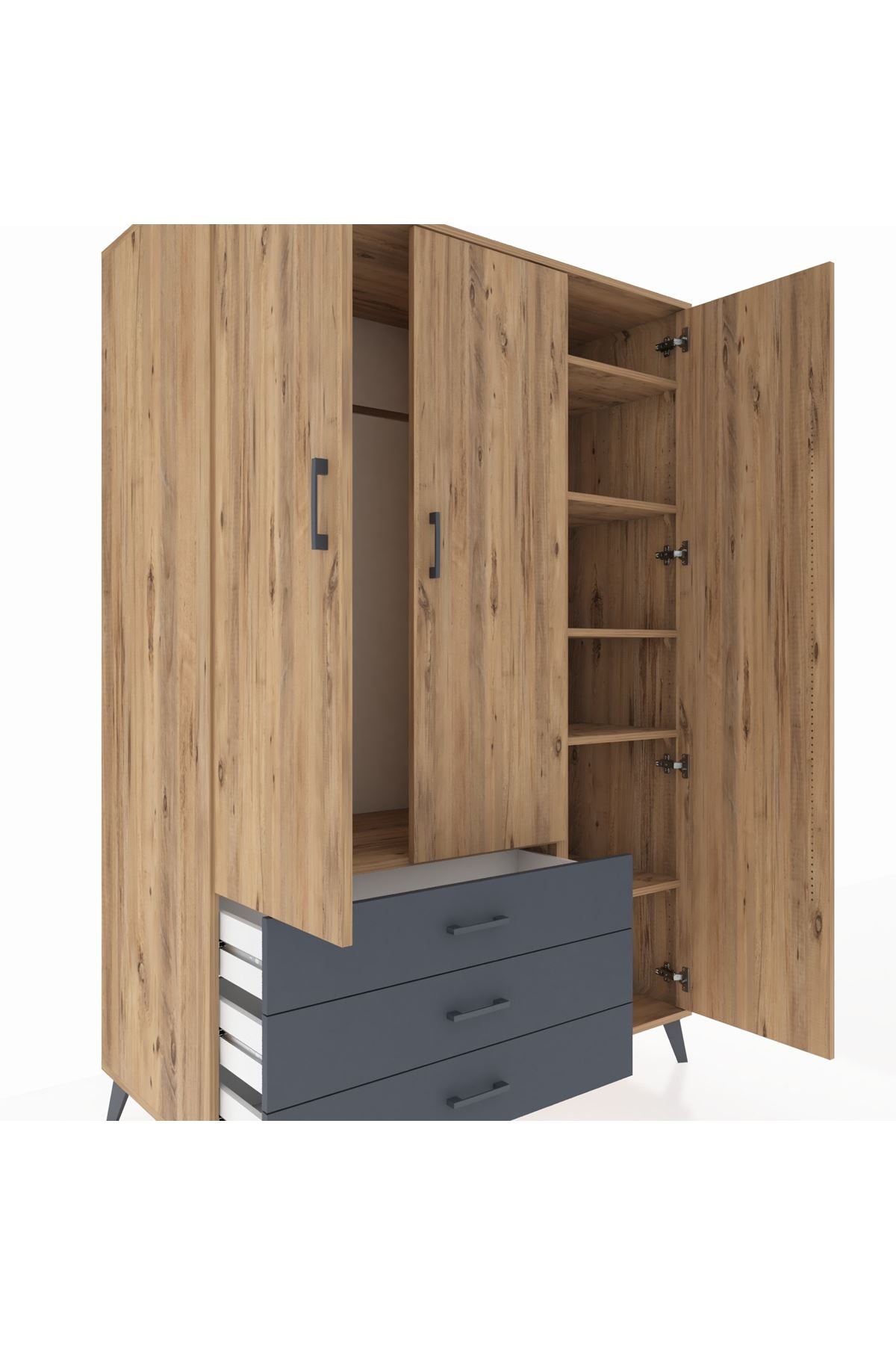 Kronos Dolap 6 Raflı 3 Çekmeceli Tek Askılı 132x59x195 Çam-Çam/Antrasit