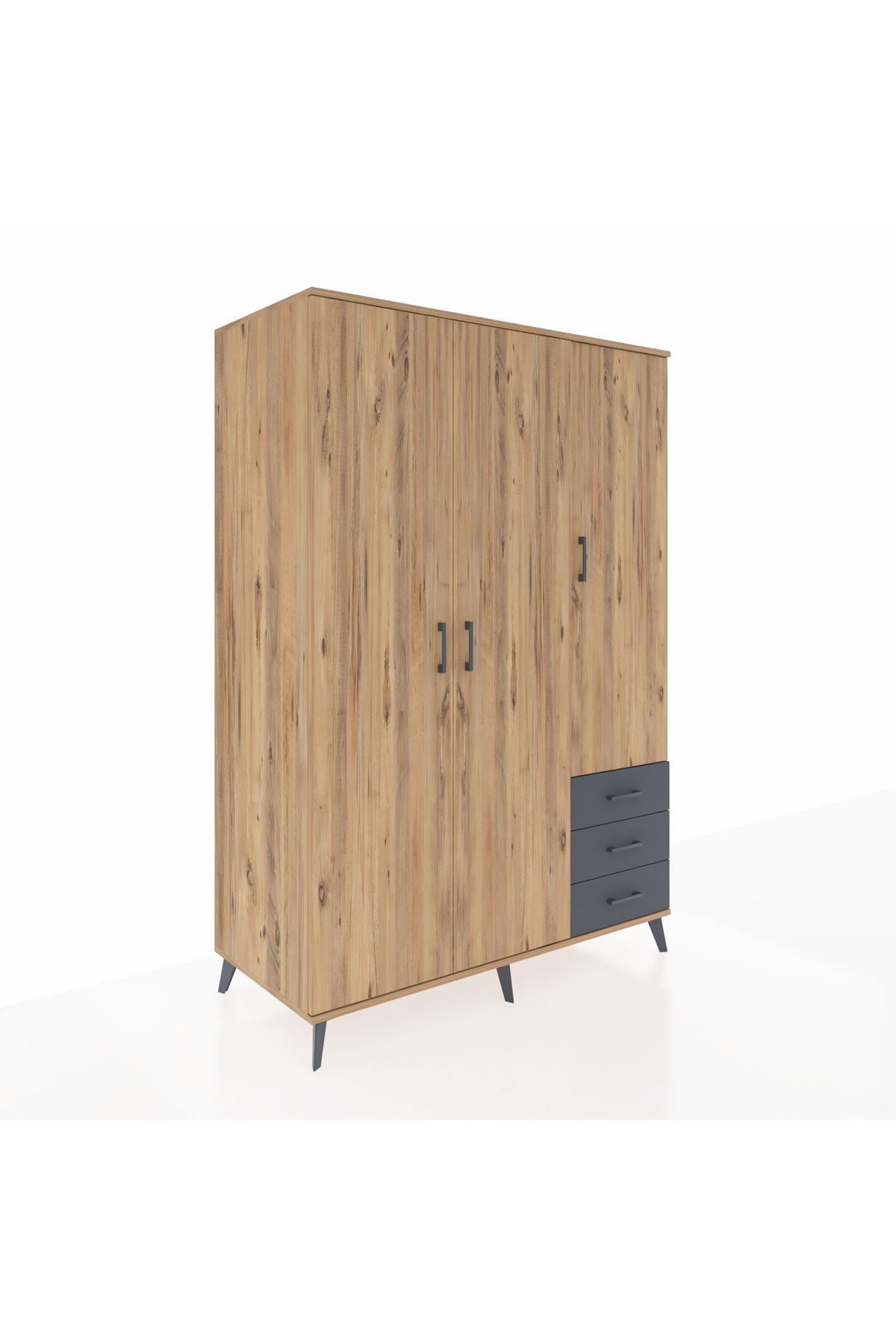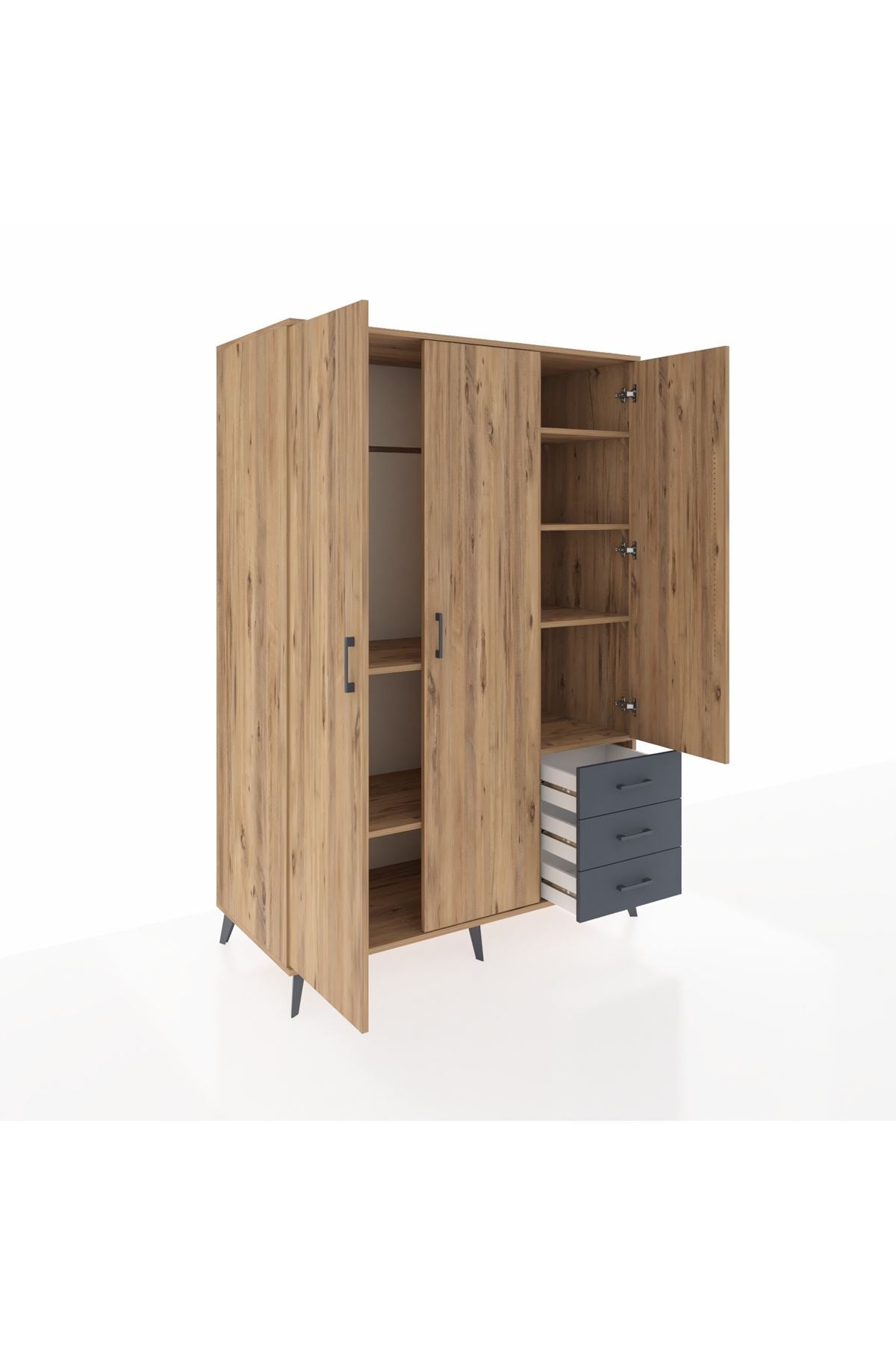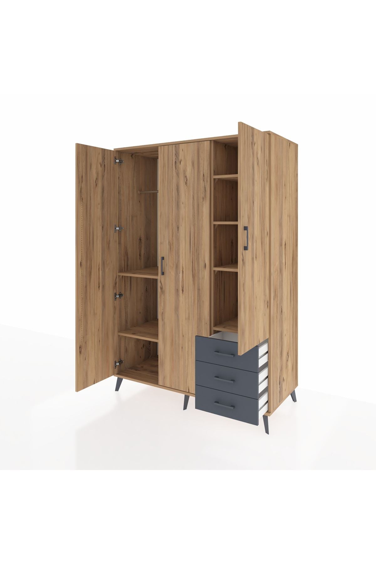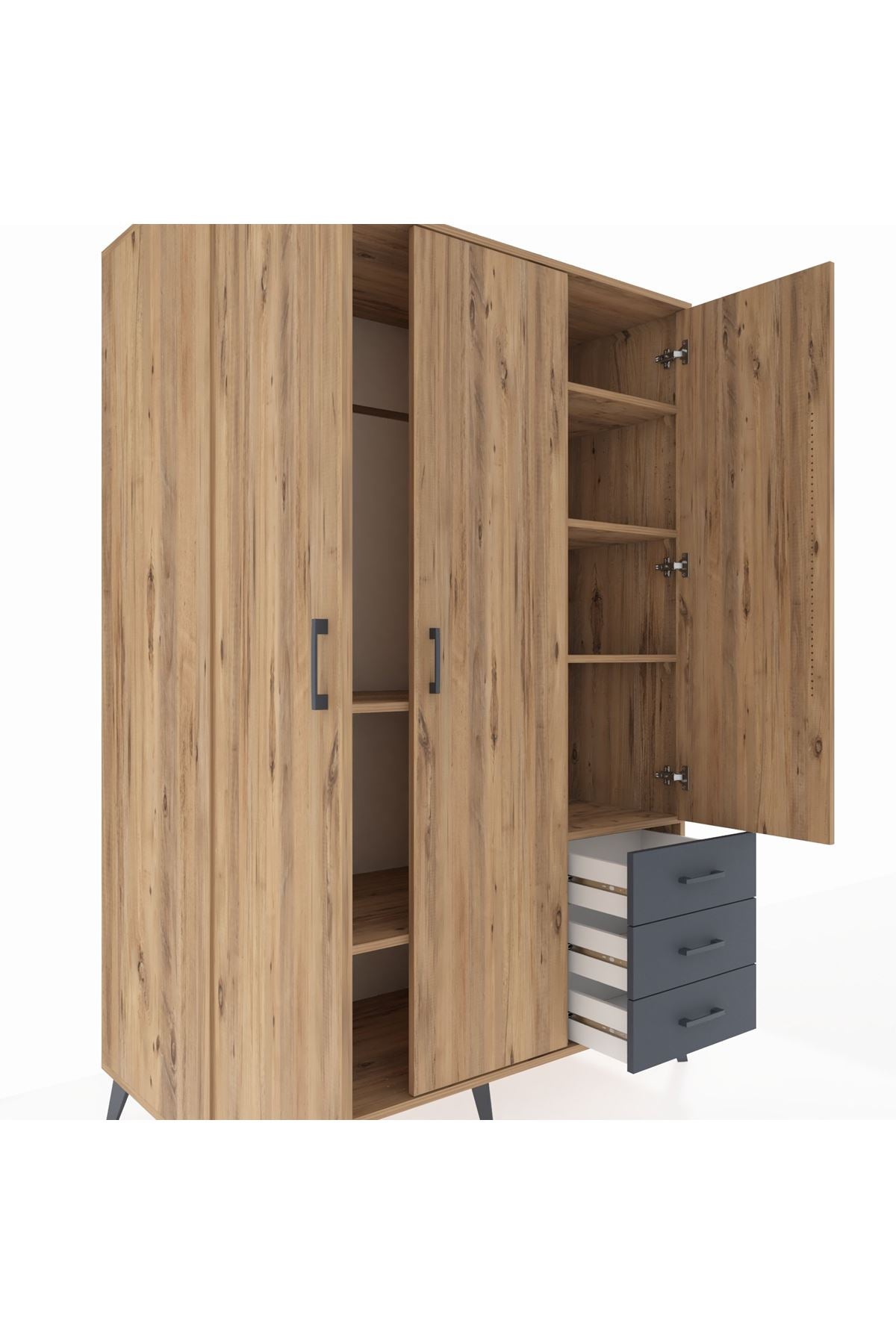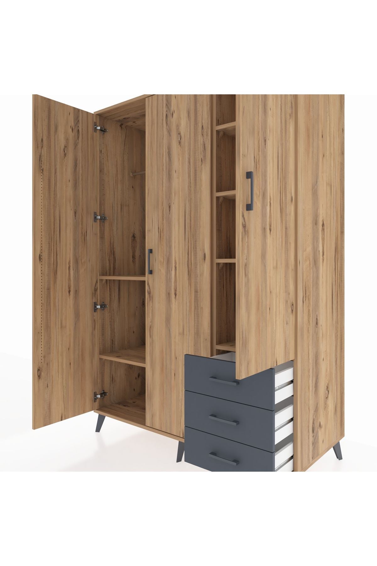 Kronos Dolap 6 Raflı 3 Çekmeceli Tek Askılı 132x59x195 Çam-Çam/Antrasit