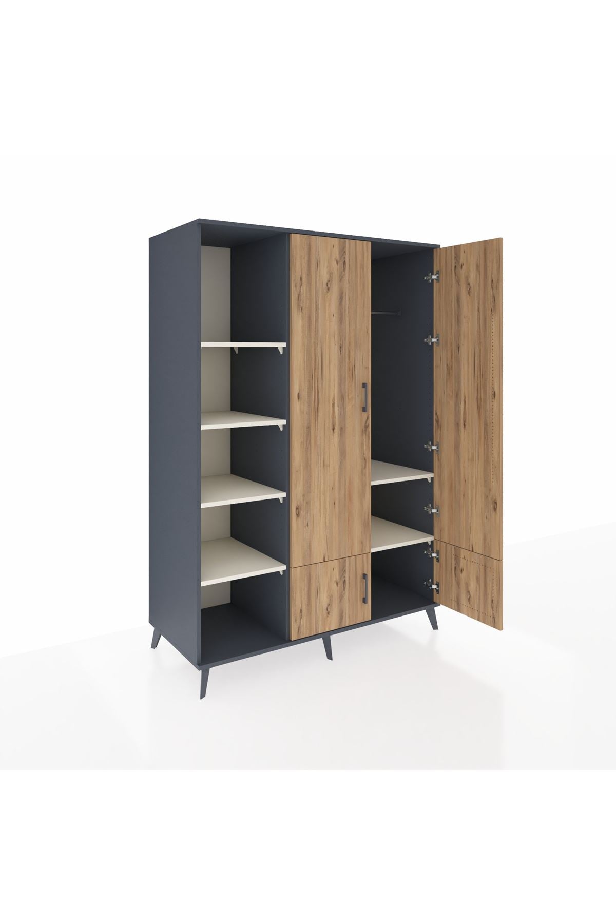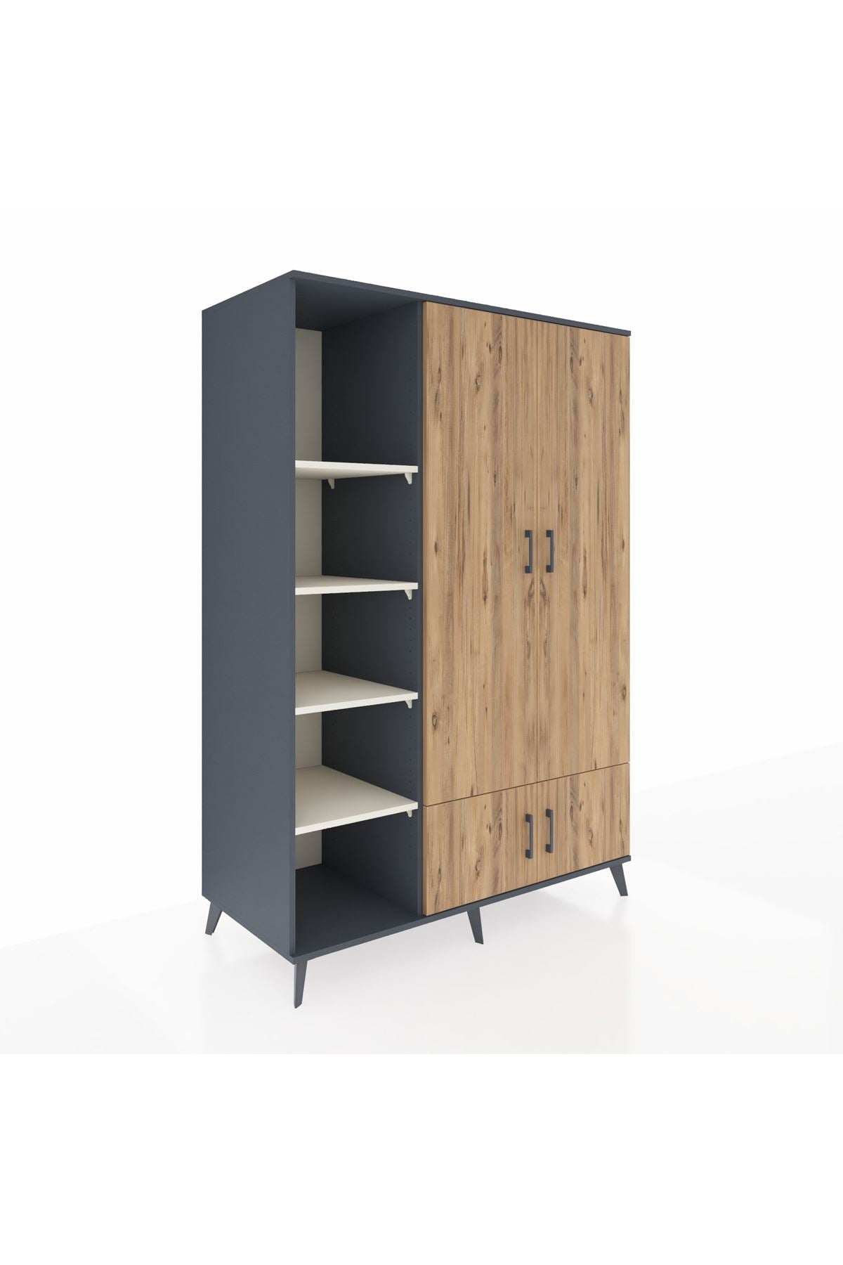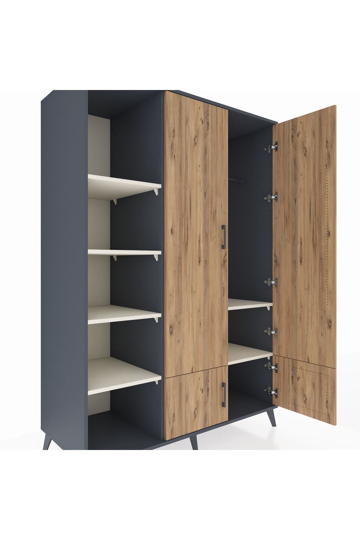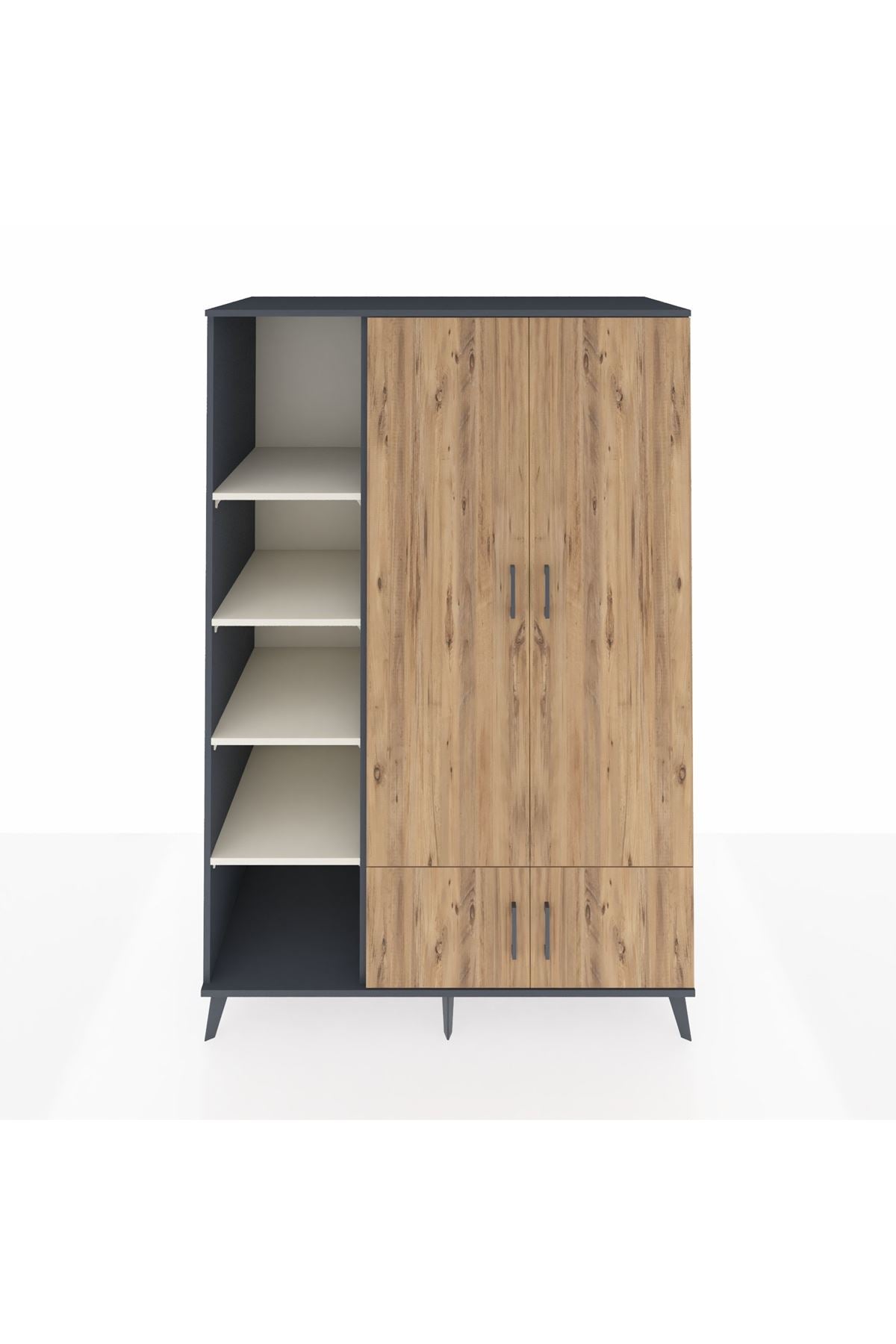 Kronos Dolap 6 Raflı 4 Kapaklı Tek Askılı 132x59x195 Antrasit-Çam/Aytaşı