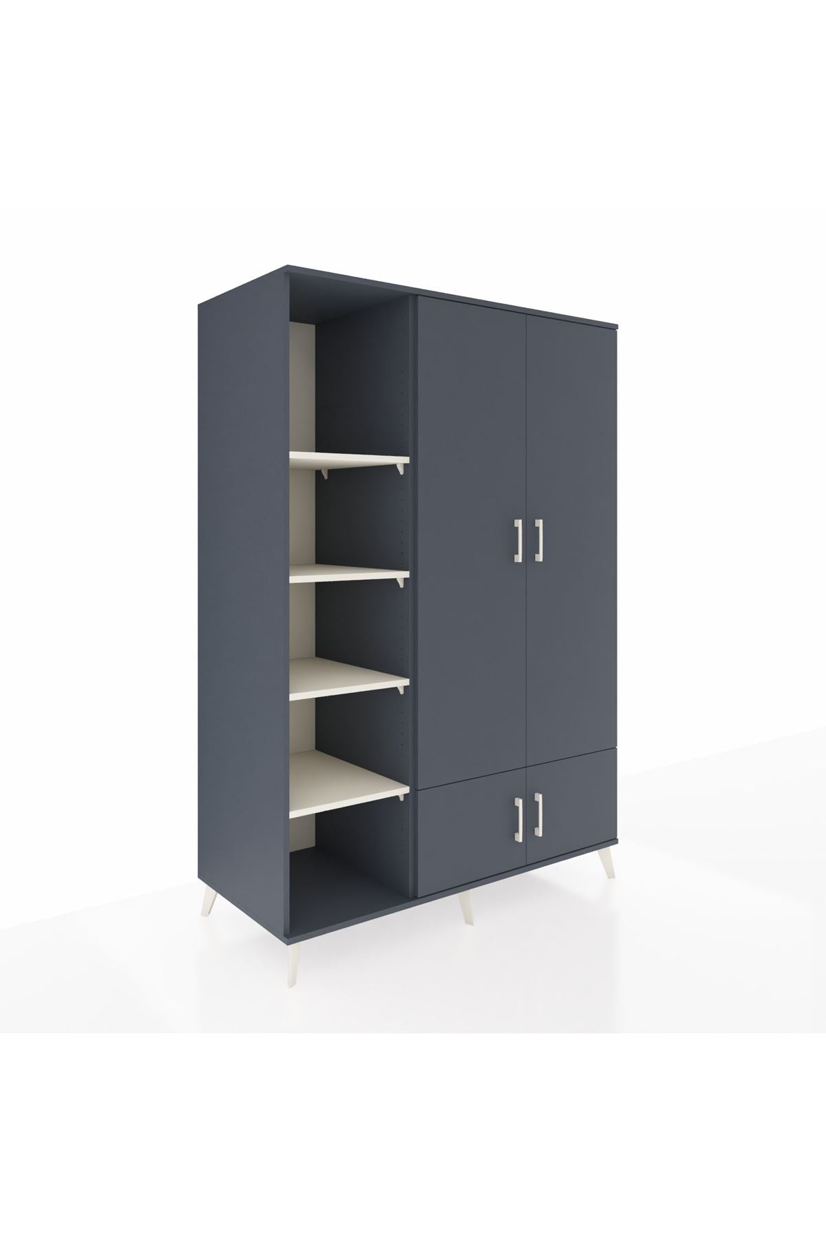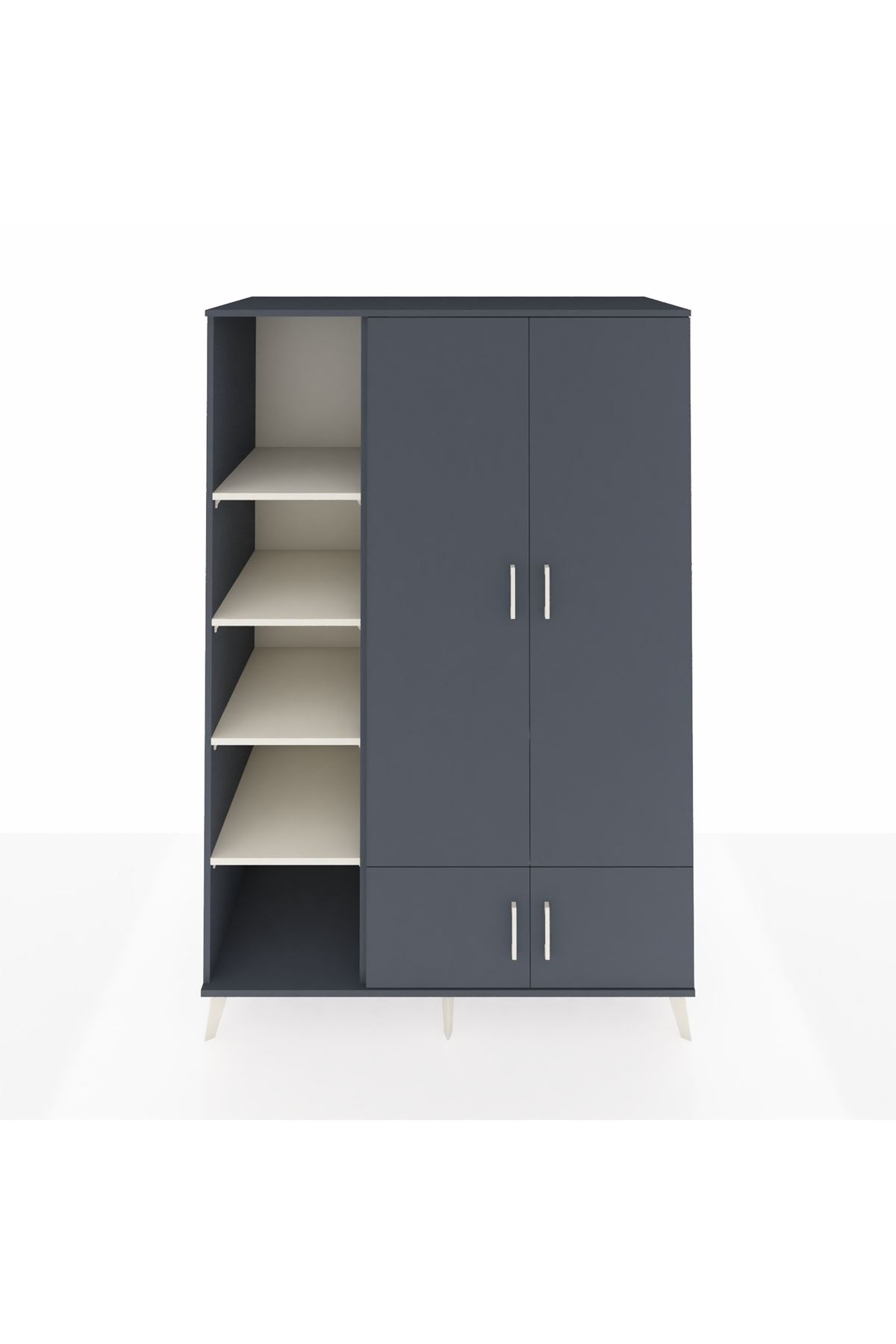 Kronos Dolap 6 Raflı 4 Kapaklı Tek Askılı 132x59x195 Antrasit-Antrasit/Aytaşı