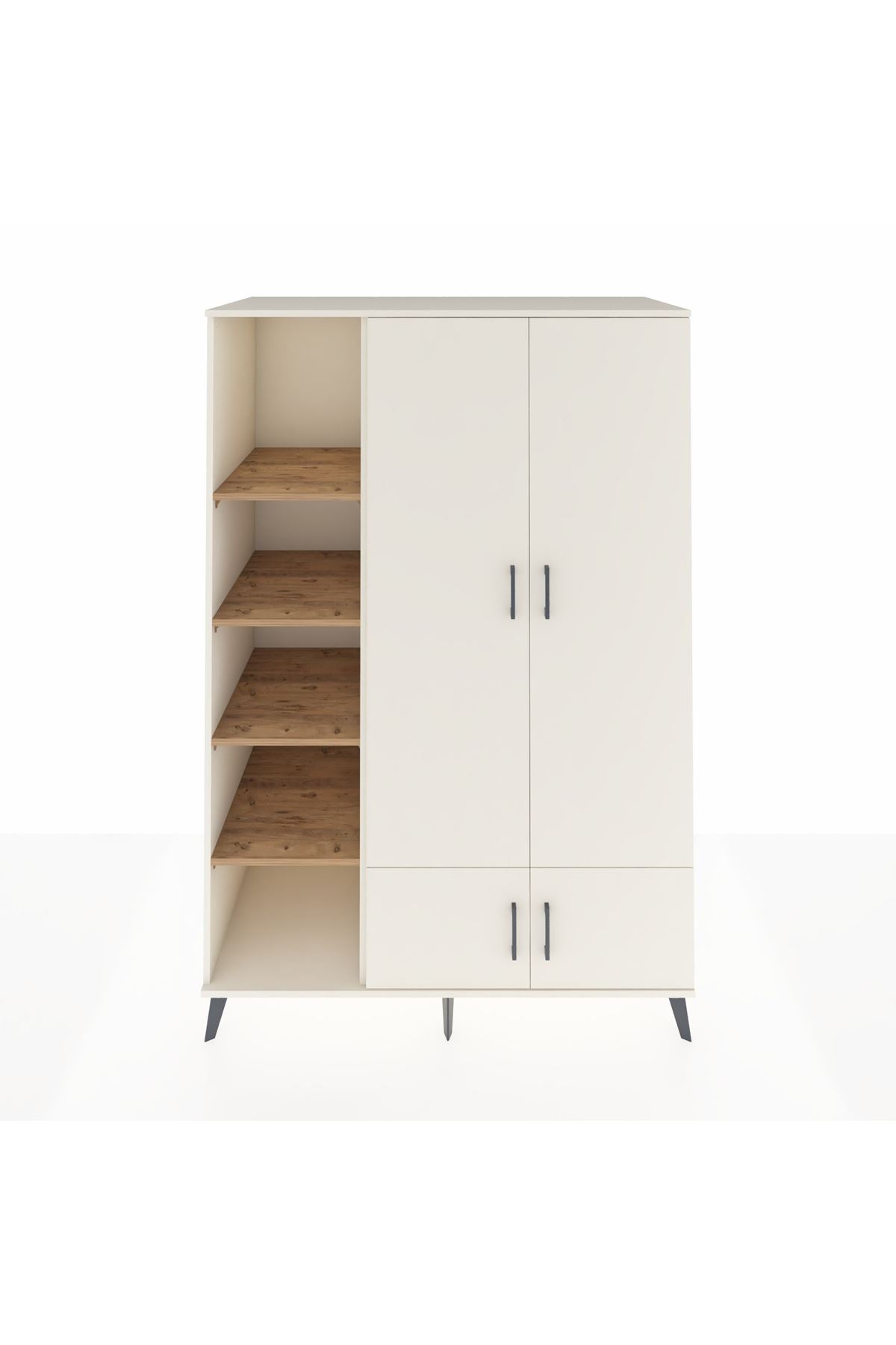 - 🔹 6 adet geniş rafı, 4 kapaklı yapısı ve tek askılık bölümü ile fonksiyonel