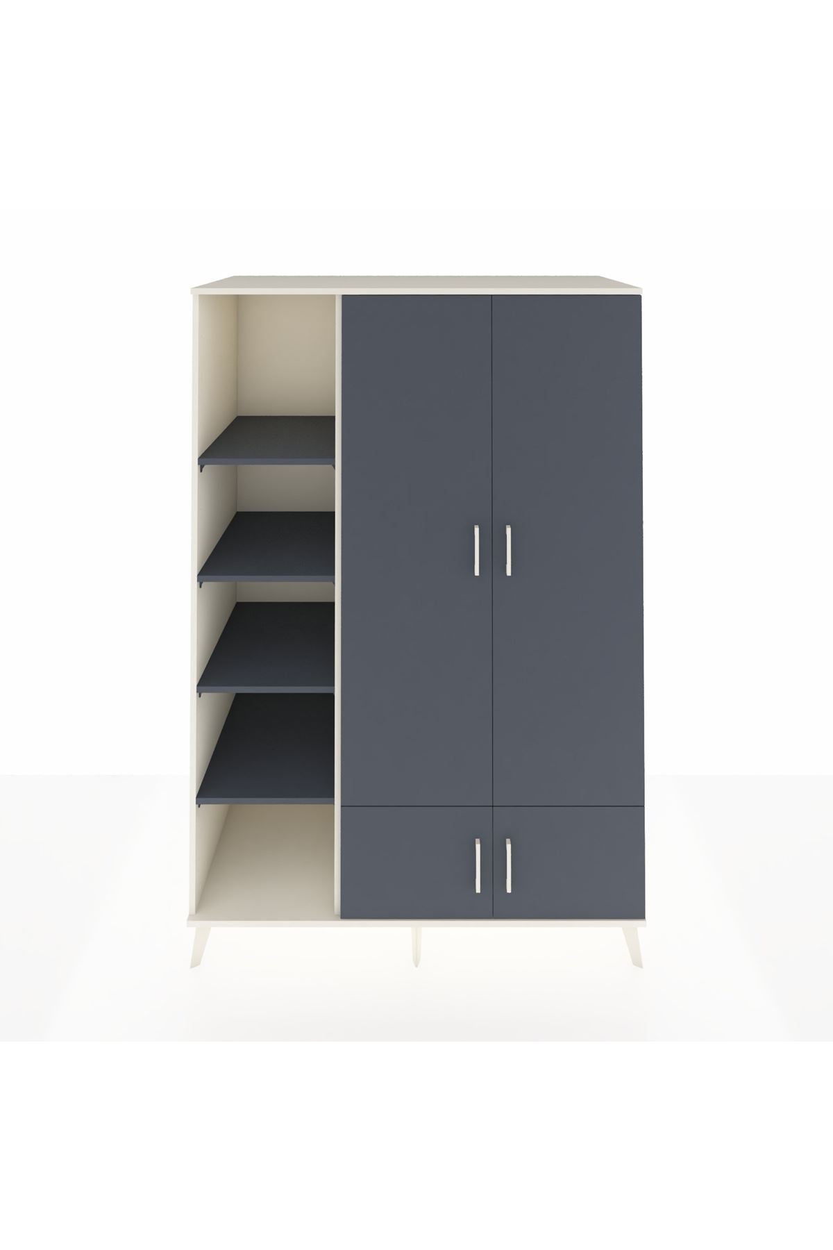 Metal ayakları ve modern antrasit renkli metal kulpları, hem sağlamlık hem de çağdaş bir görünüm kazandırır 🦾