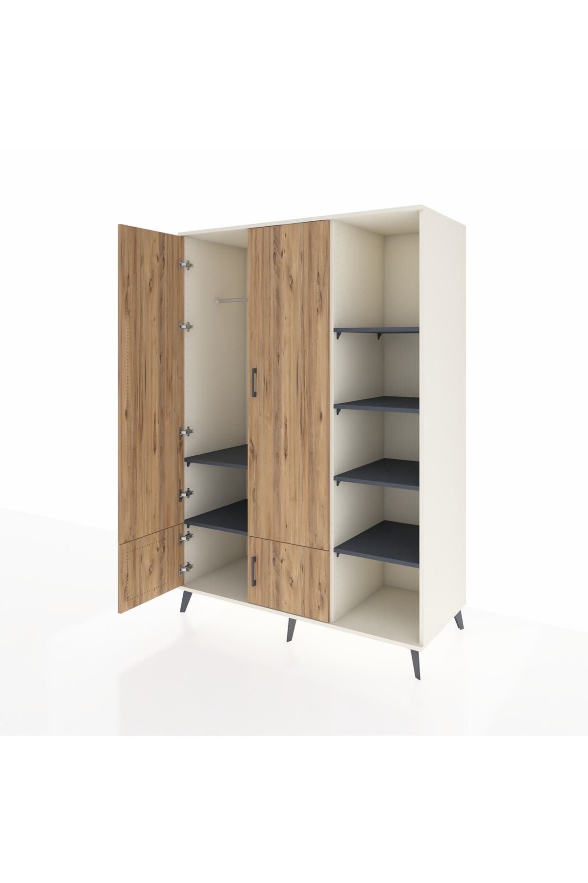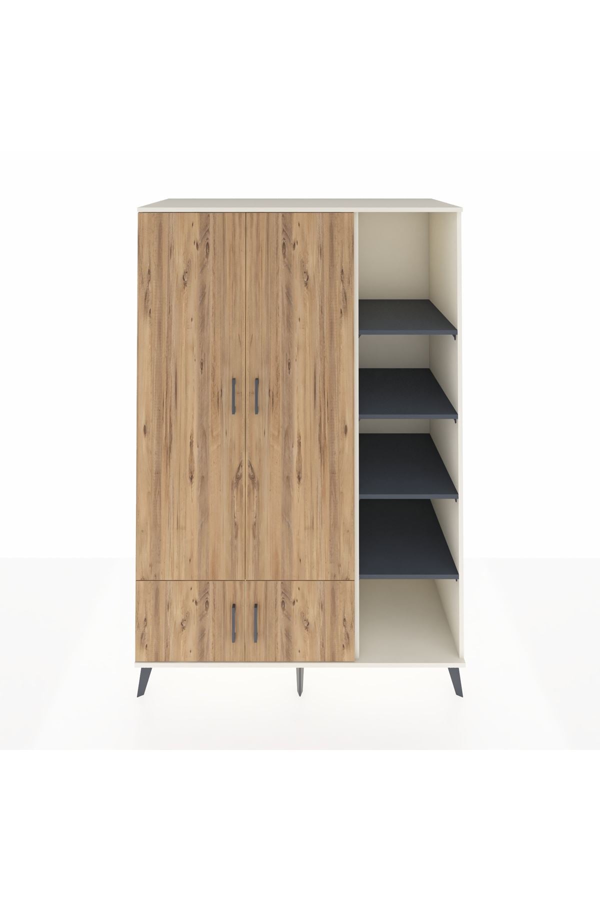 Kronos Dolap 6 Raflı 4 Kapaklı Tek Askılı 132x59x195 Aytaşı-Çam/Antrasit