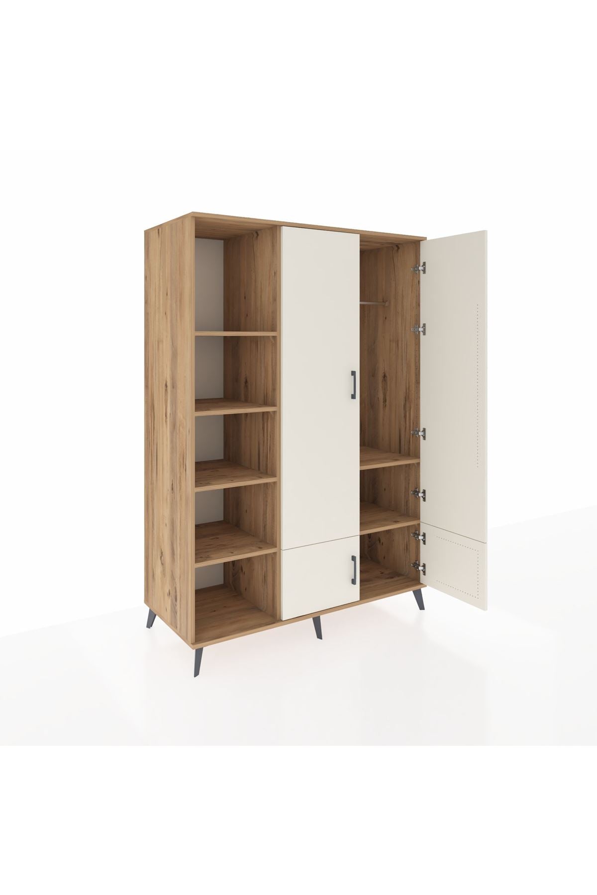 Dört kapaklı yapısı ve altı adet geniş rafı sayesinde tüm eşyalarınızı kolayca yerleştirebilirsiniz 📚👚