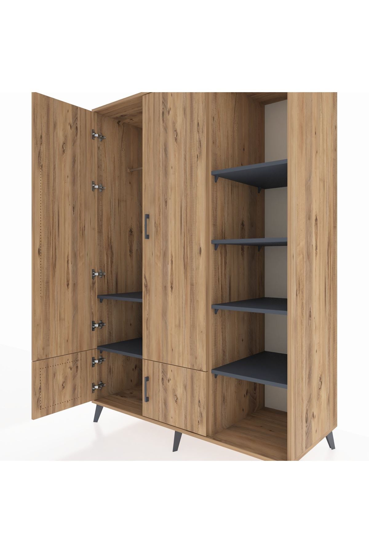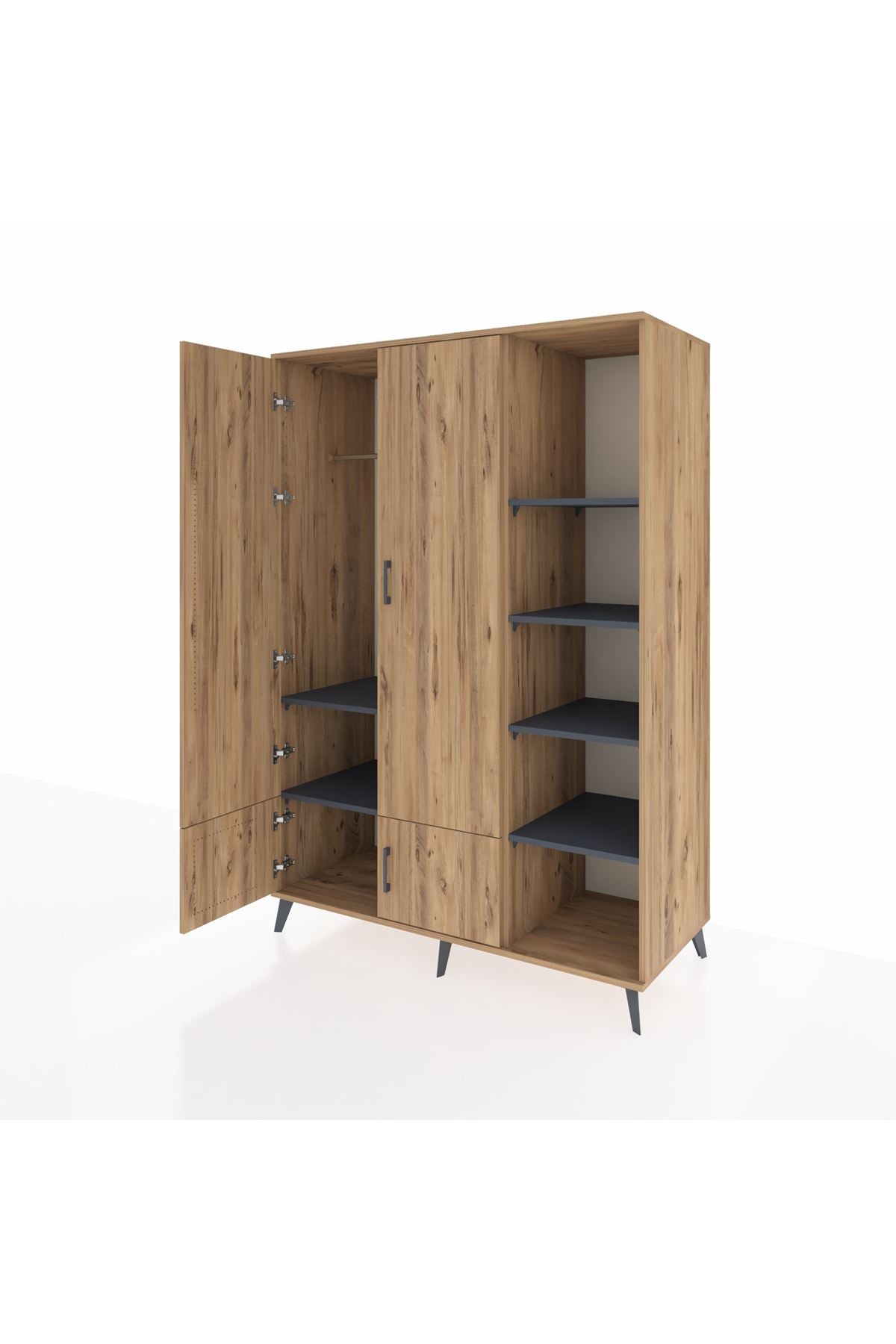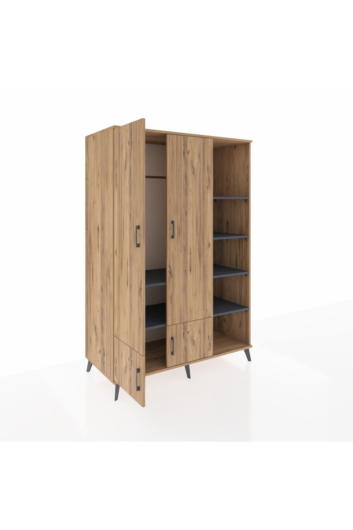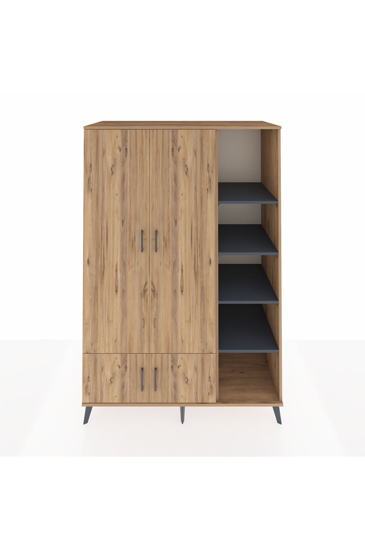 Kronos Dolap 6 Raflı 4 Kapaklı Tek Askılı 132x59x195 Çam-Çam/Antrasit