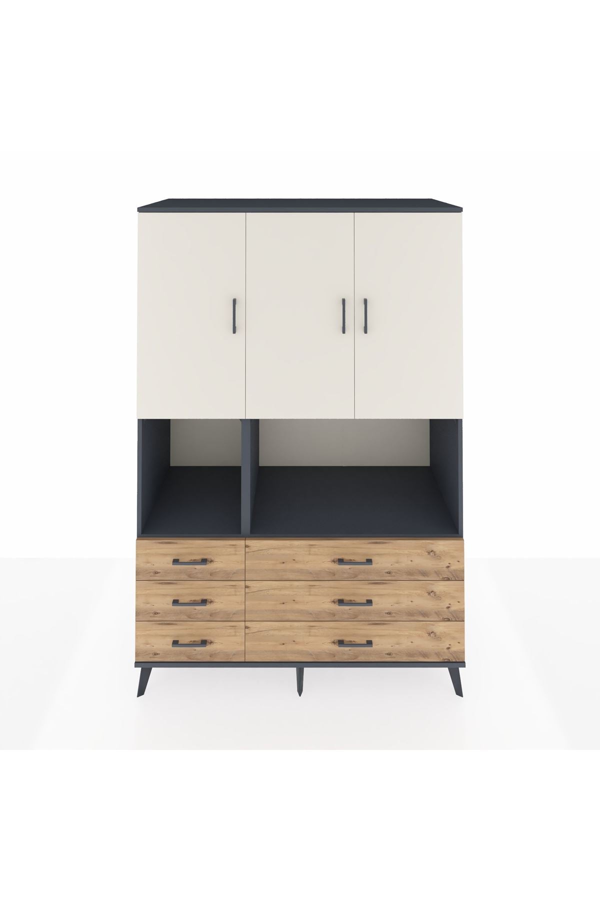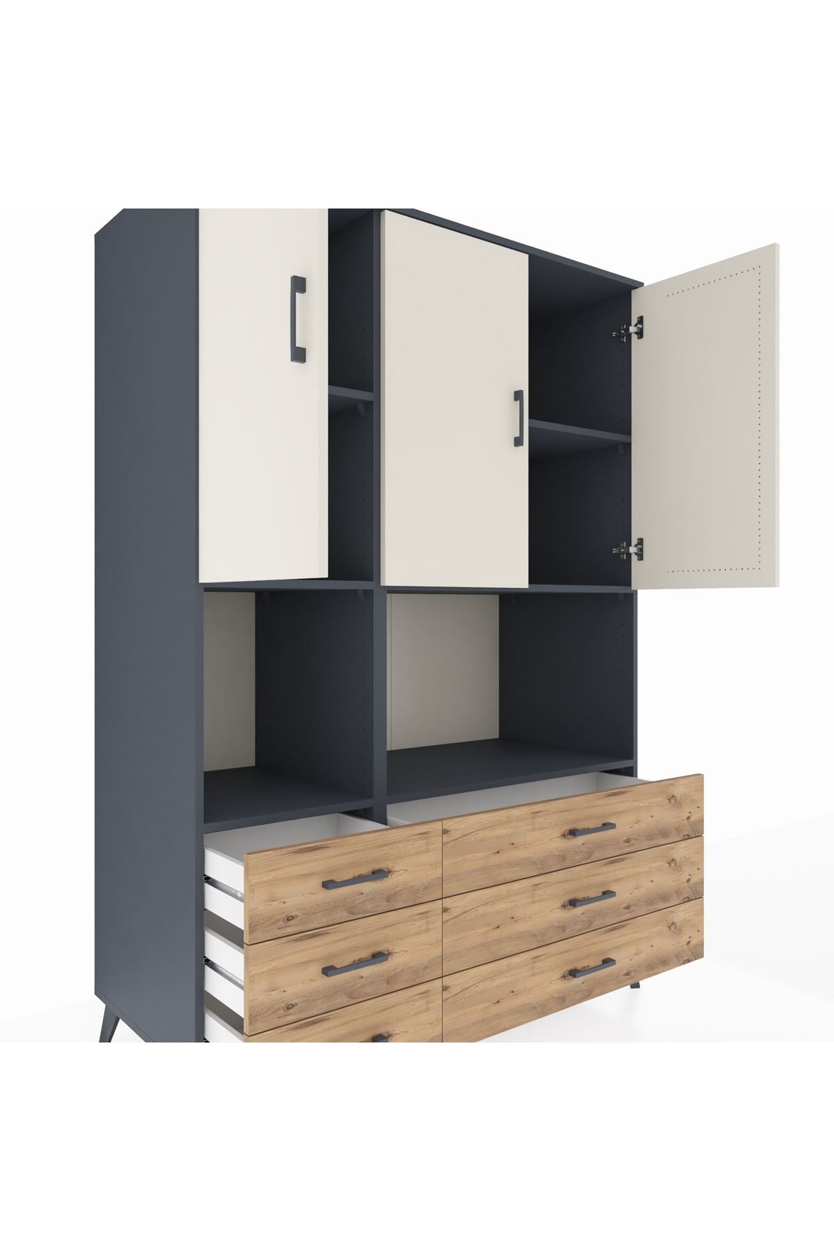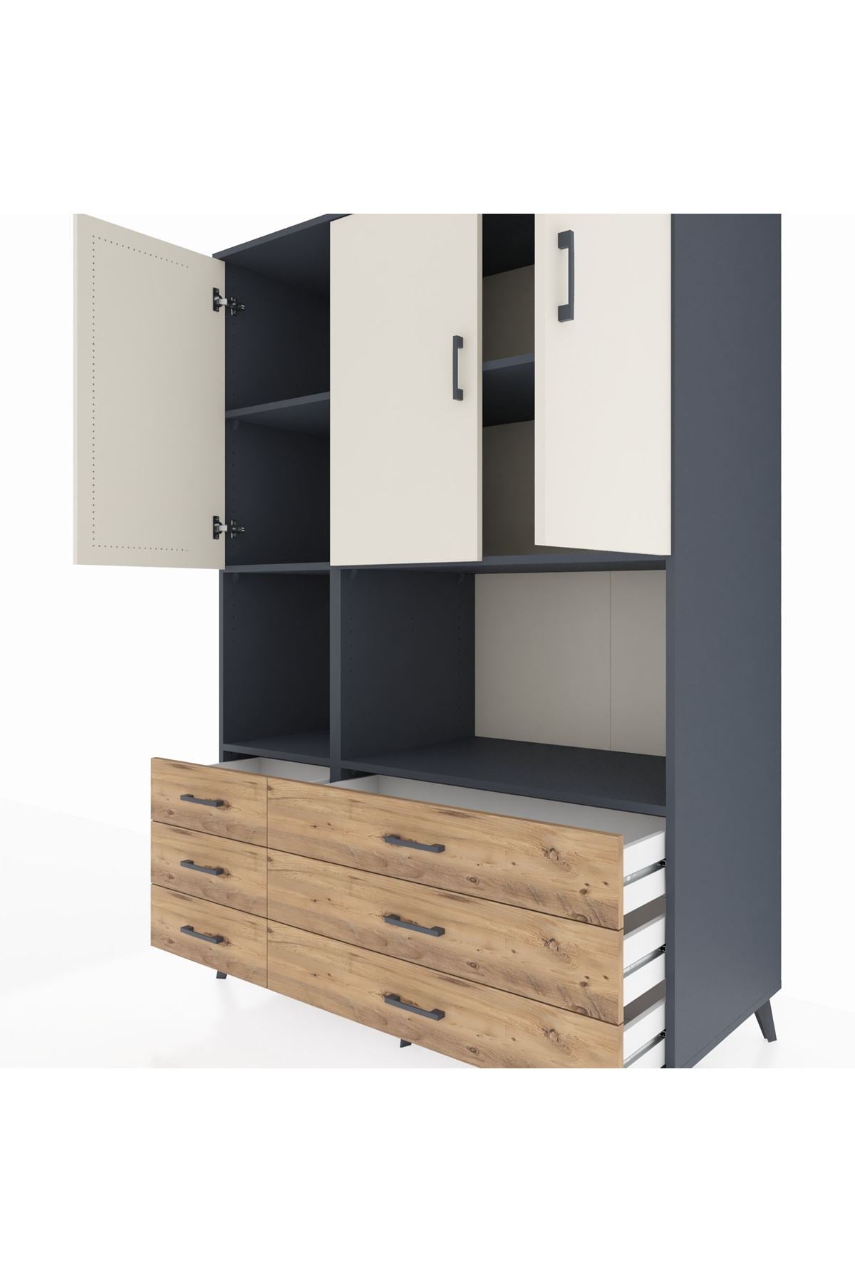 Kronos Dolap 6 Raflı 6 Çekmeceli 3 Kapaklı 132x59x195 Antrasit-Aytaşı/Çam