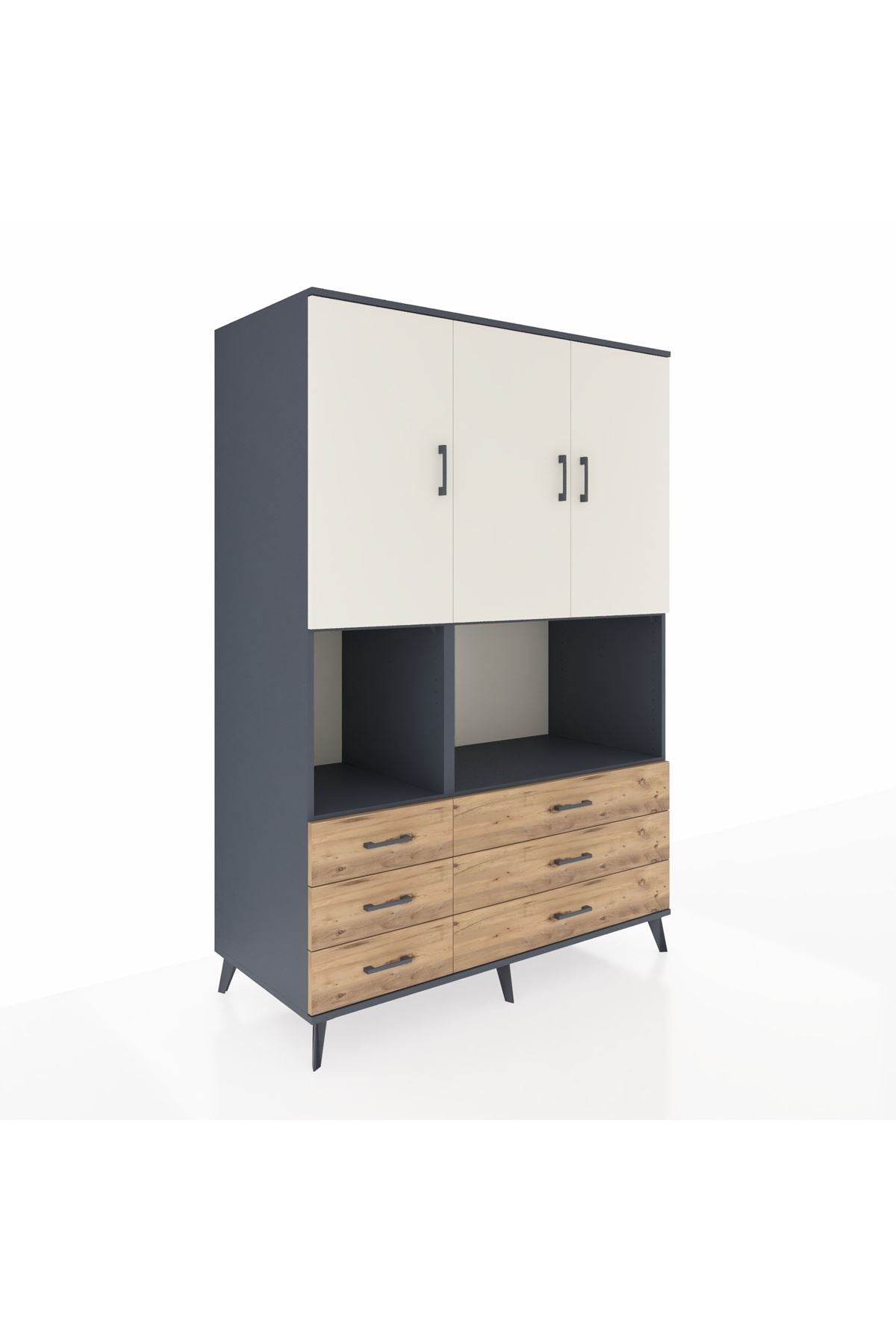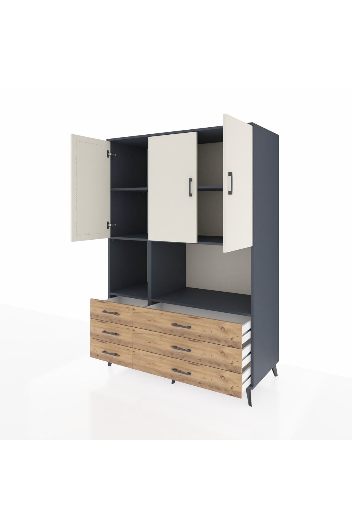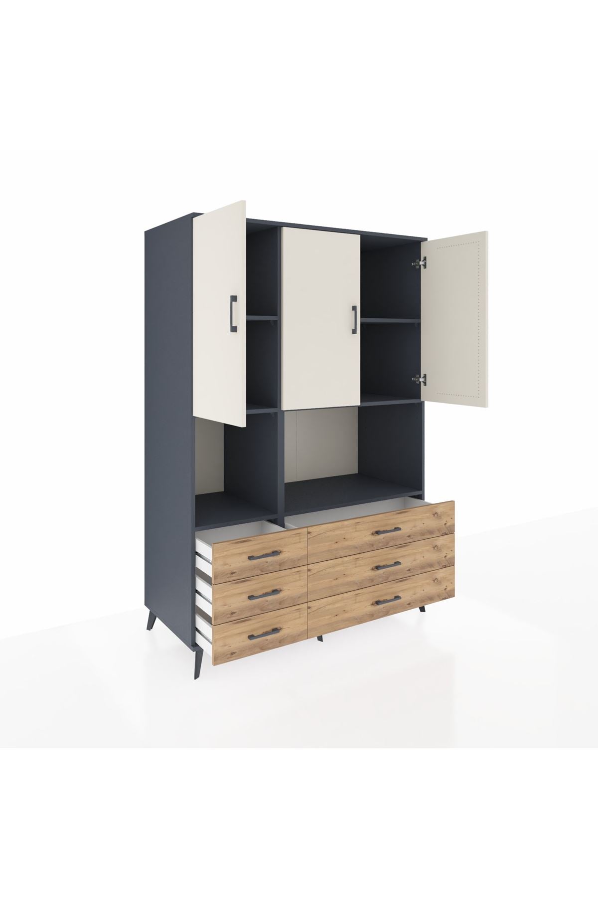 Kronos Dolap 6 Raflı 6 Çekmeceli 3 Kapaklı 132x59x195 Antrasit-Aytaşı/Çam