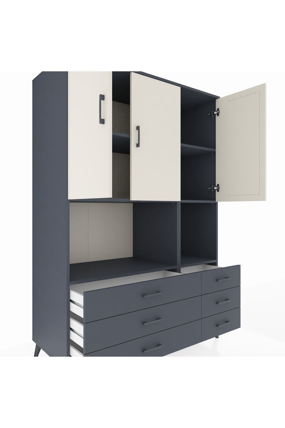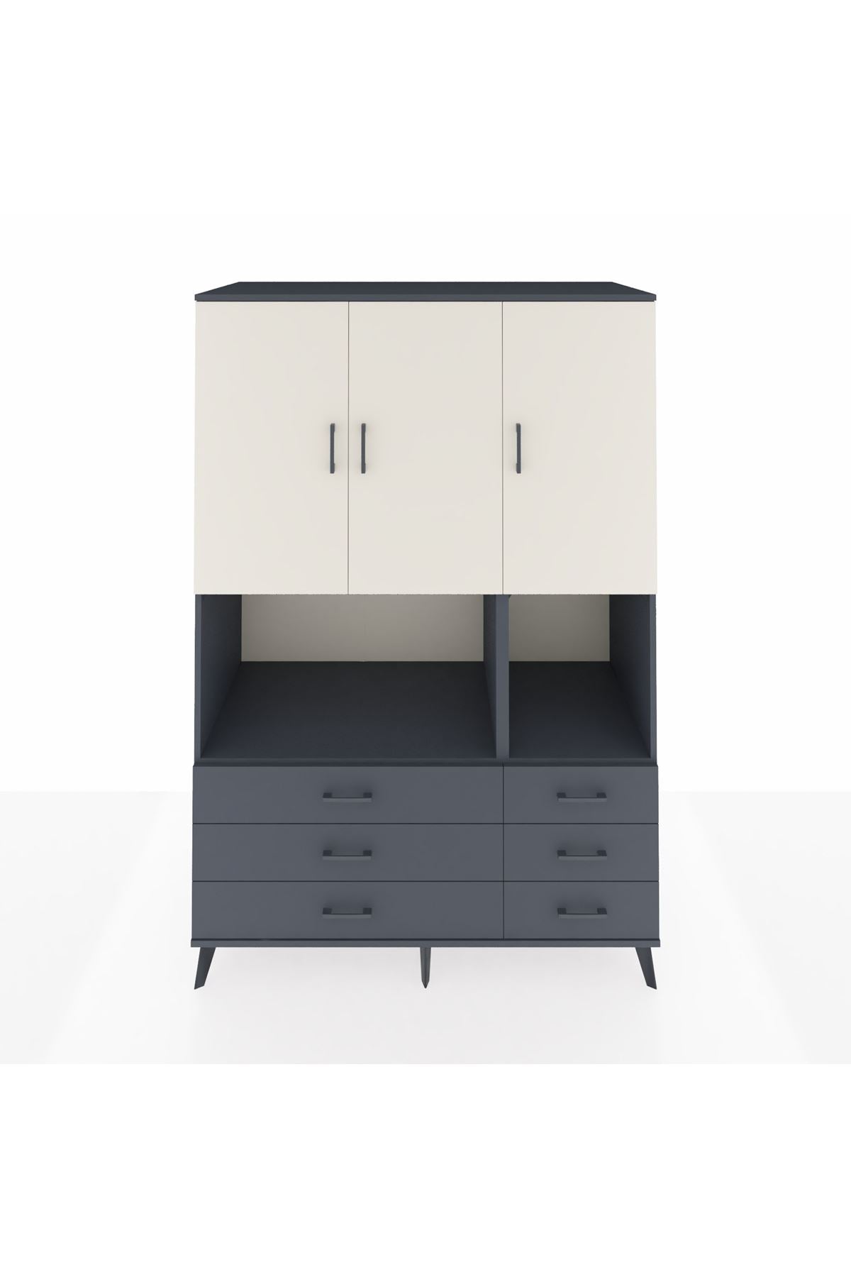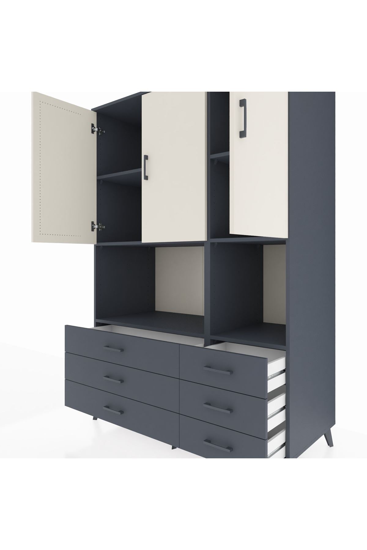 Kronos Dolap 6 Raflı 6 Çekmeceli 3 Kapaklı 132x59x195 Antrasit-Aytaşı/Antrasit