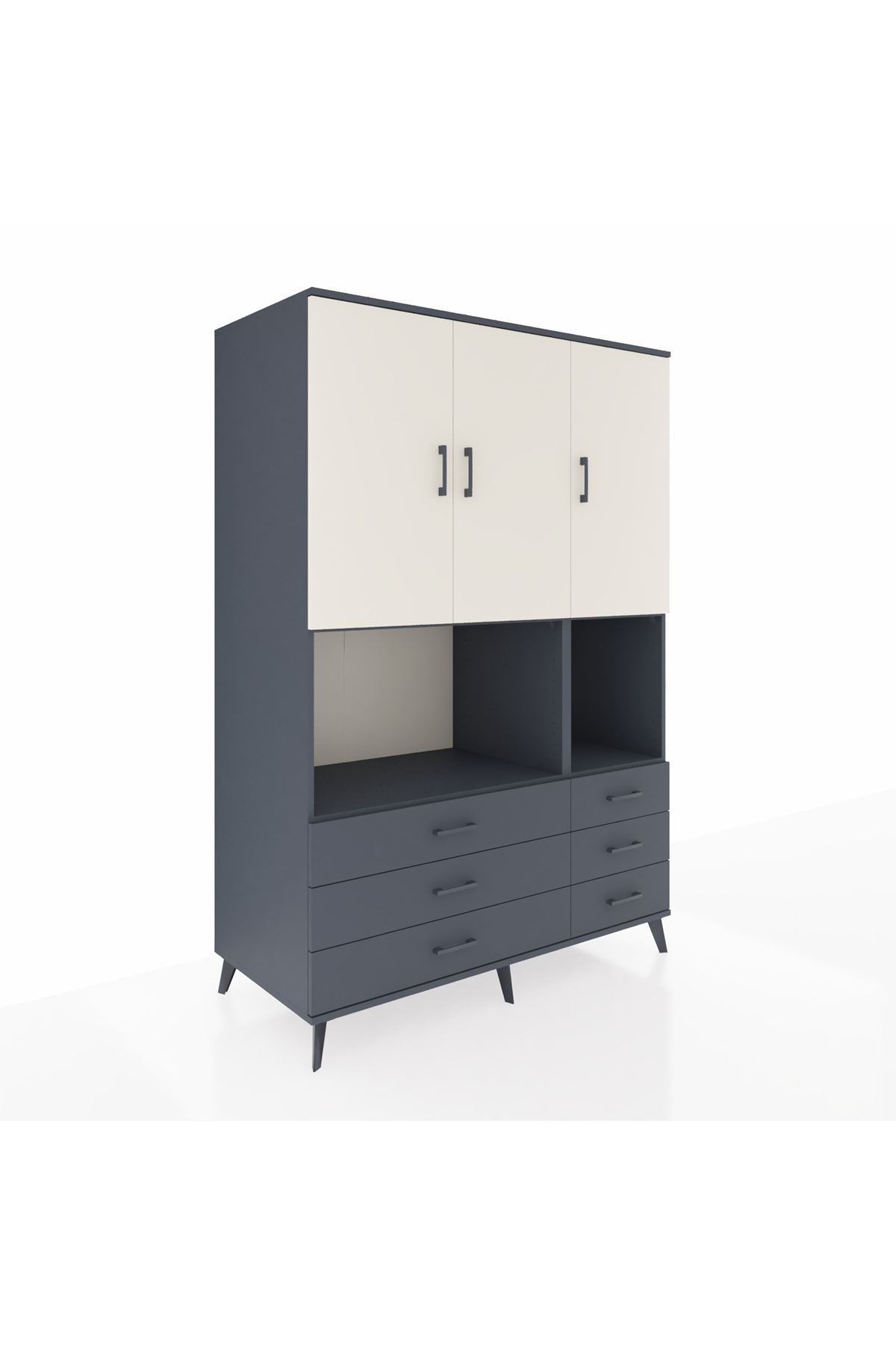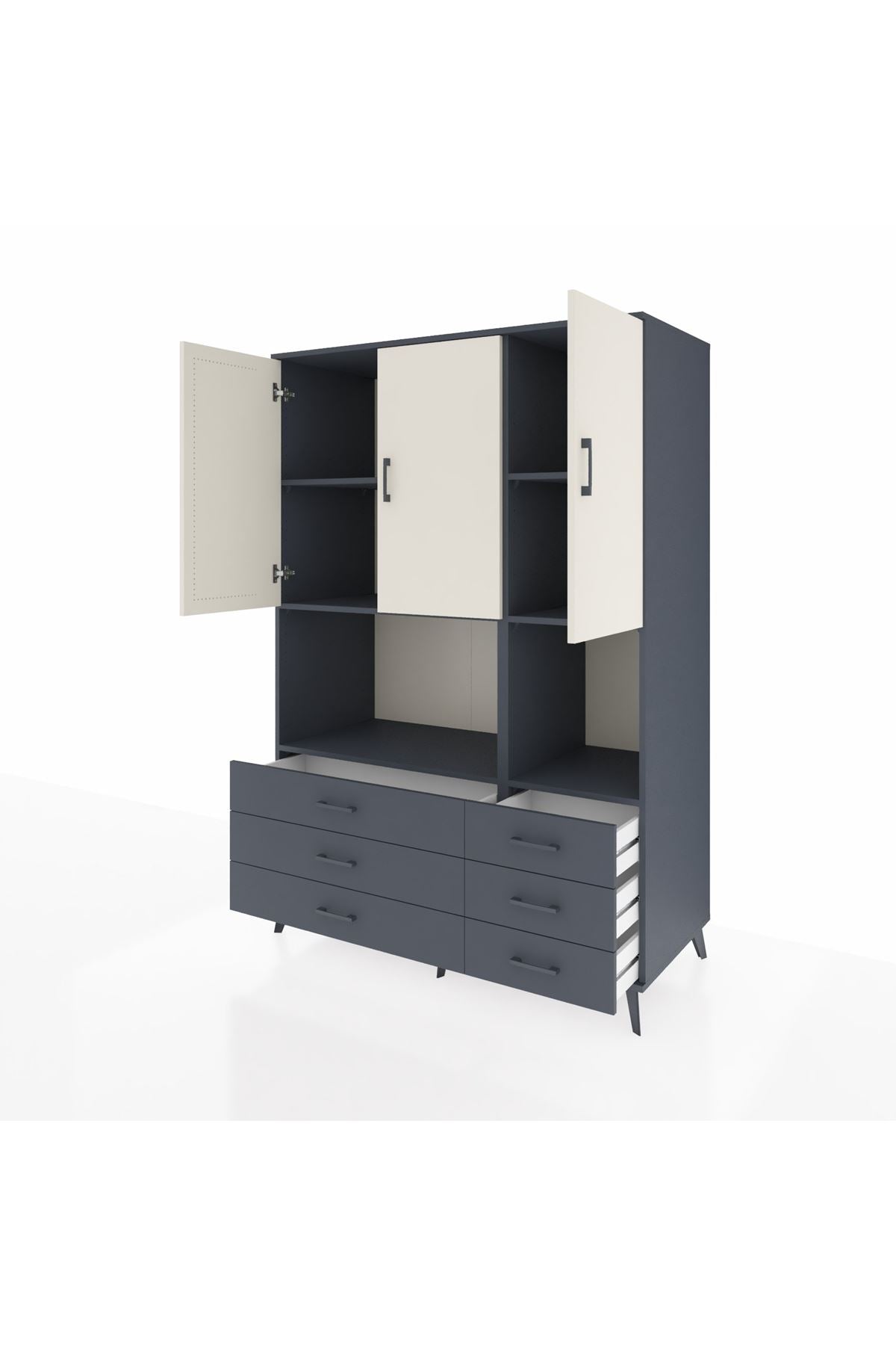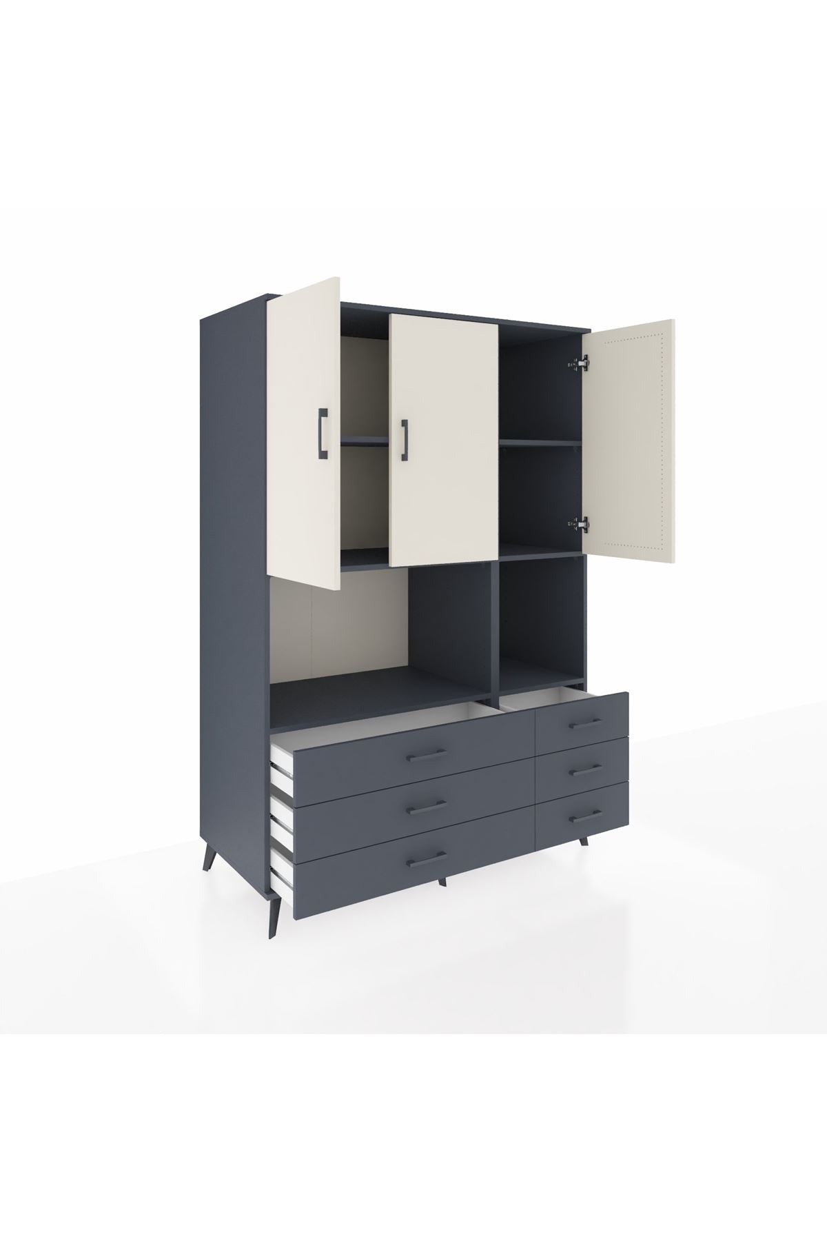 Kronos Dolap 6 Raflı 6 Çekmeceli 3 Kapaklı 132x59x195 Antrasit-Aytaşı/Antrasit