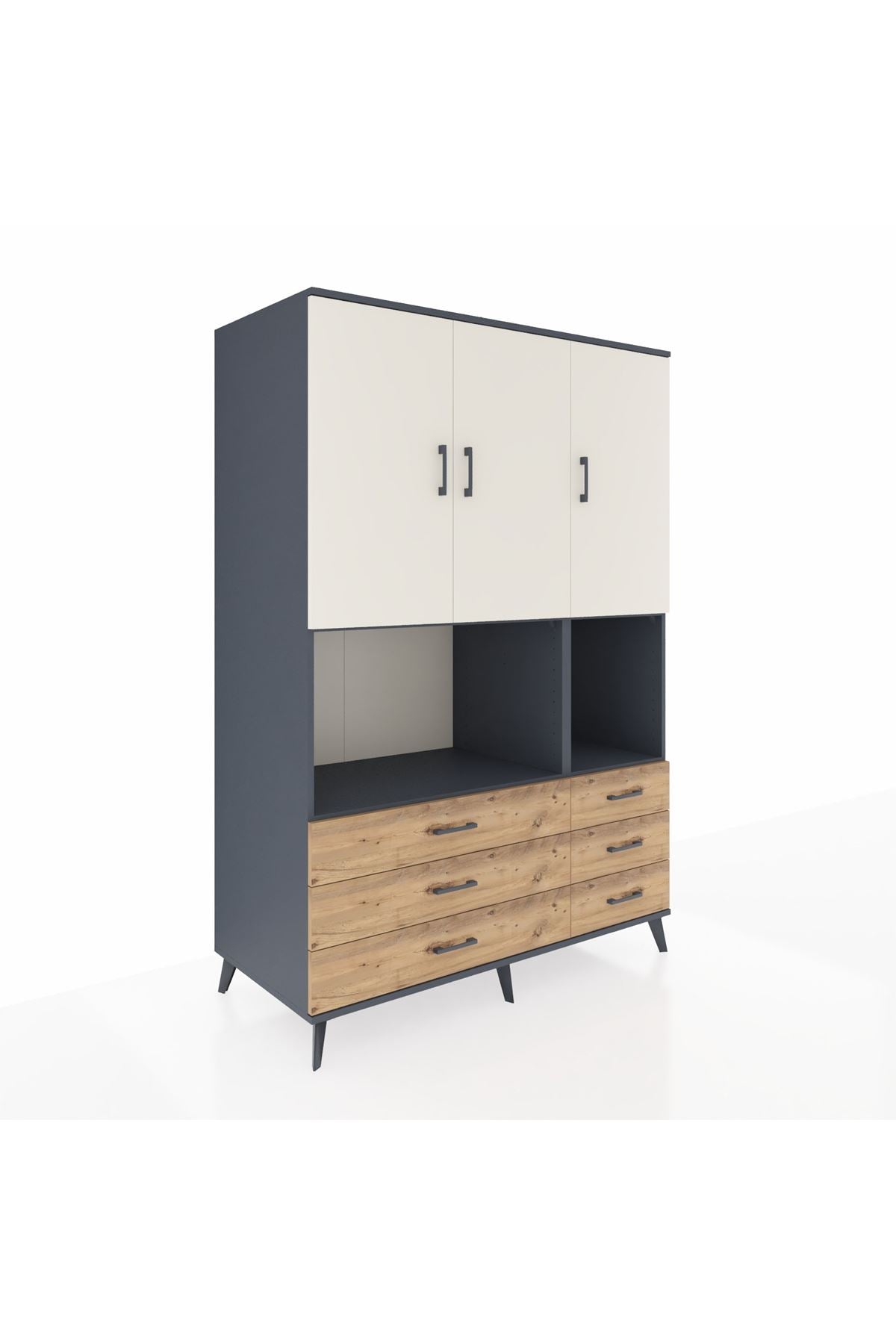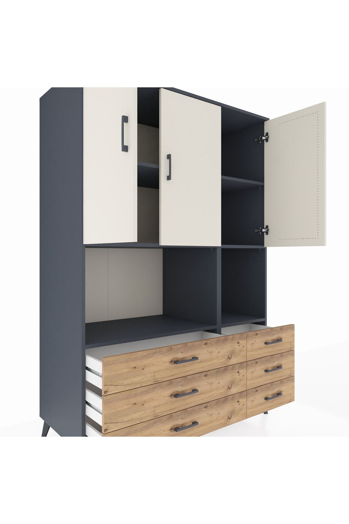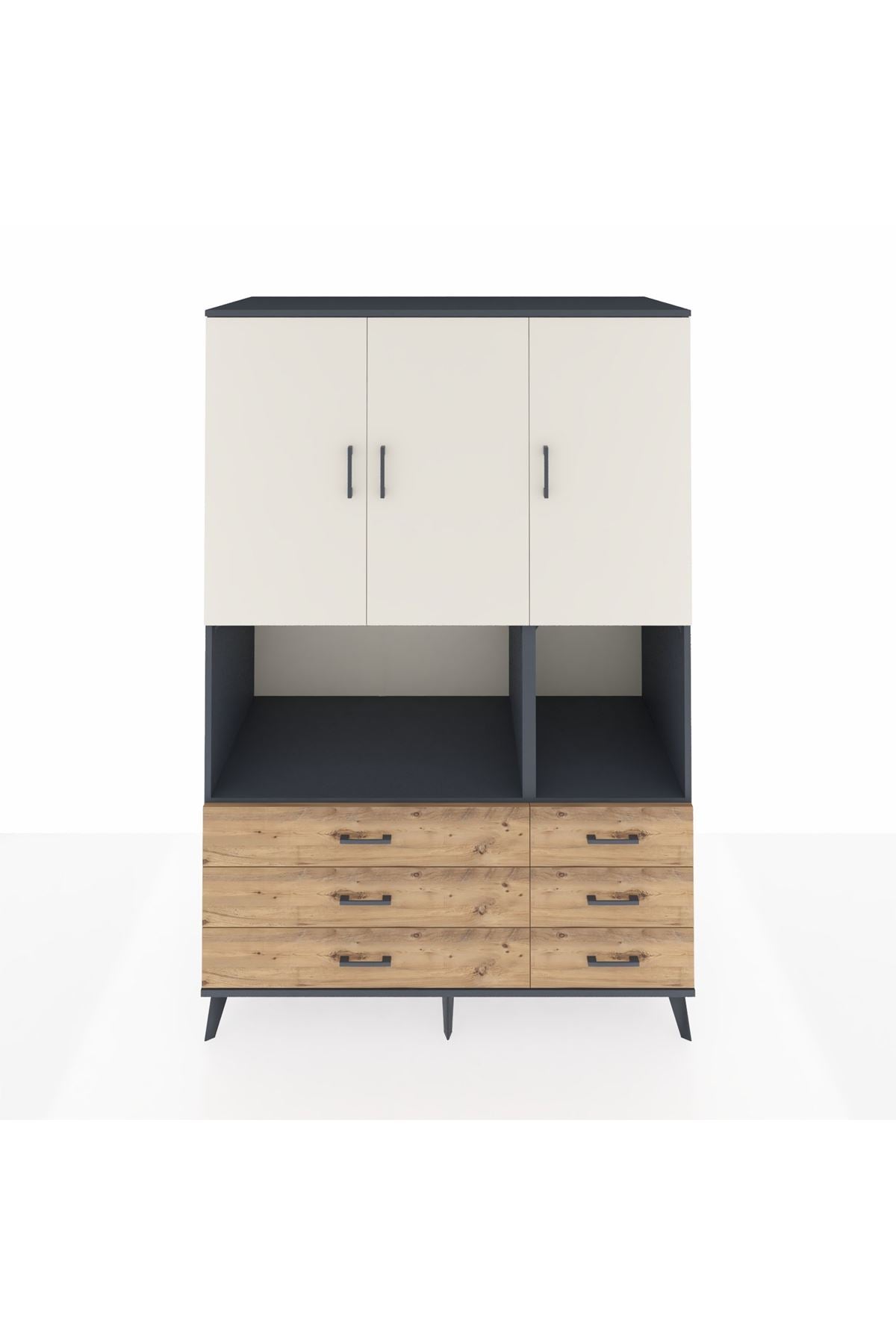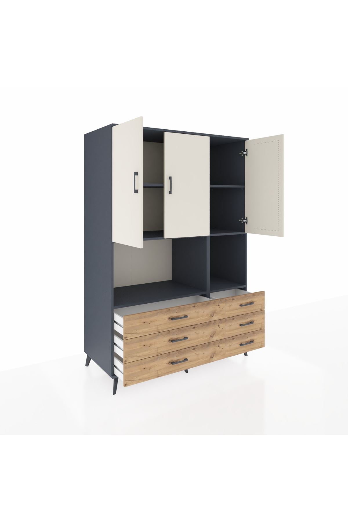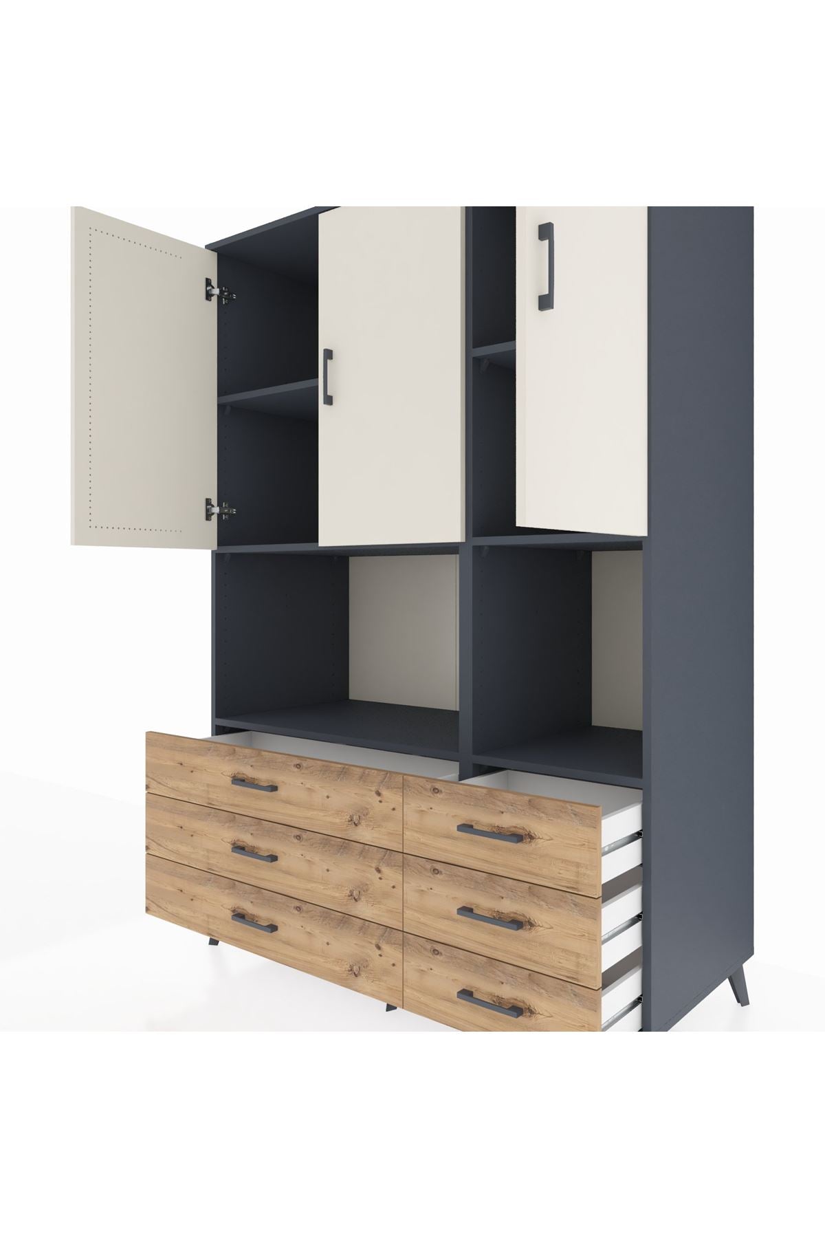 Kronos Dolap 6 Raflı 6 Çekmeceli 3 Kapaklı 132x59x195 Antrasit-Aytaşı/Çam