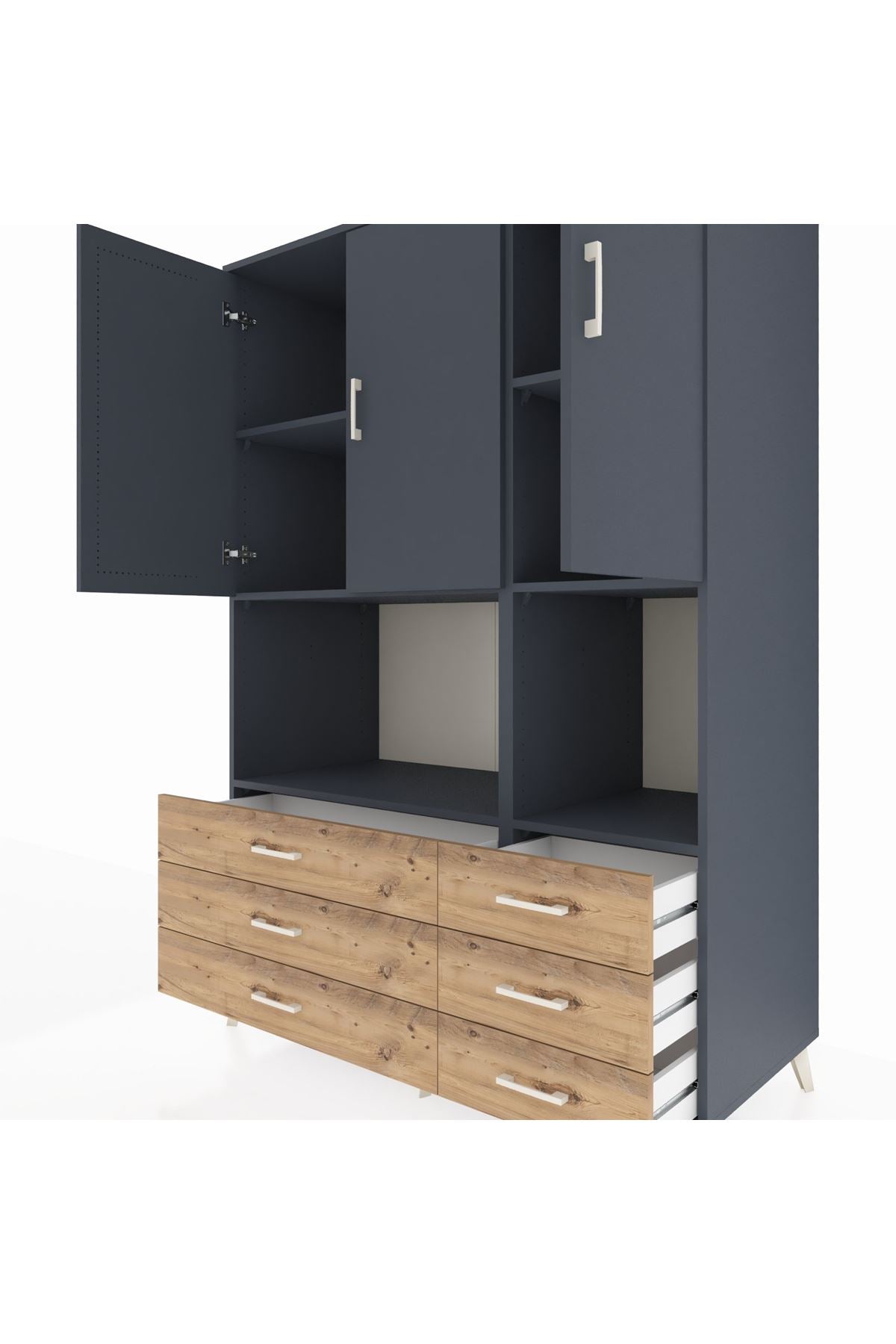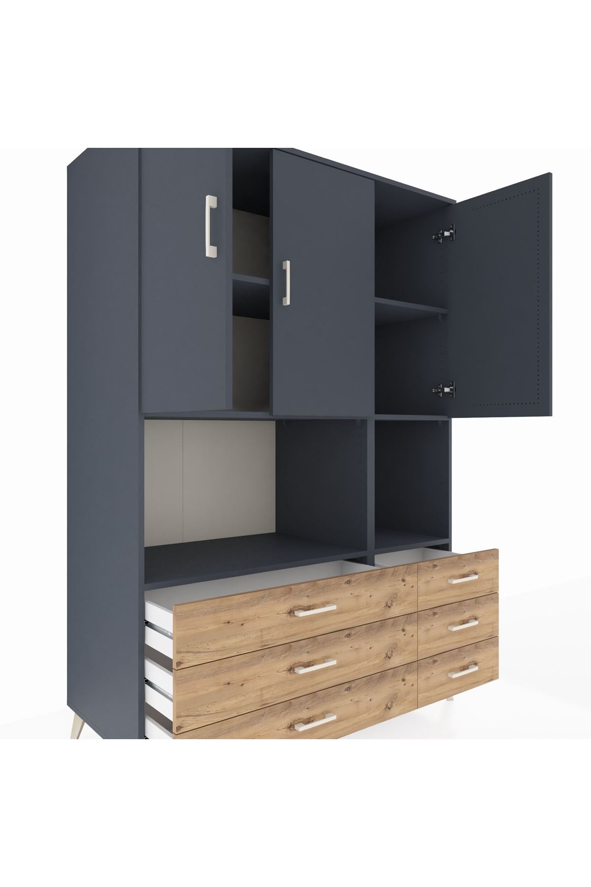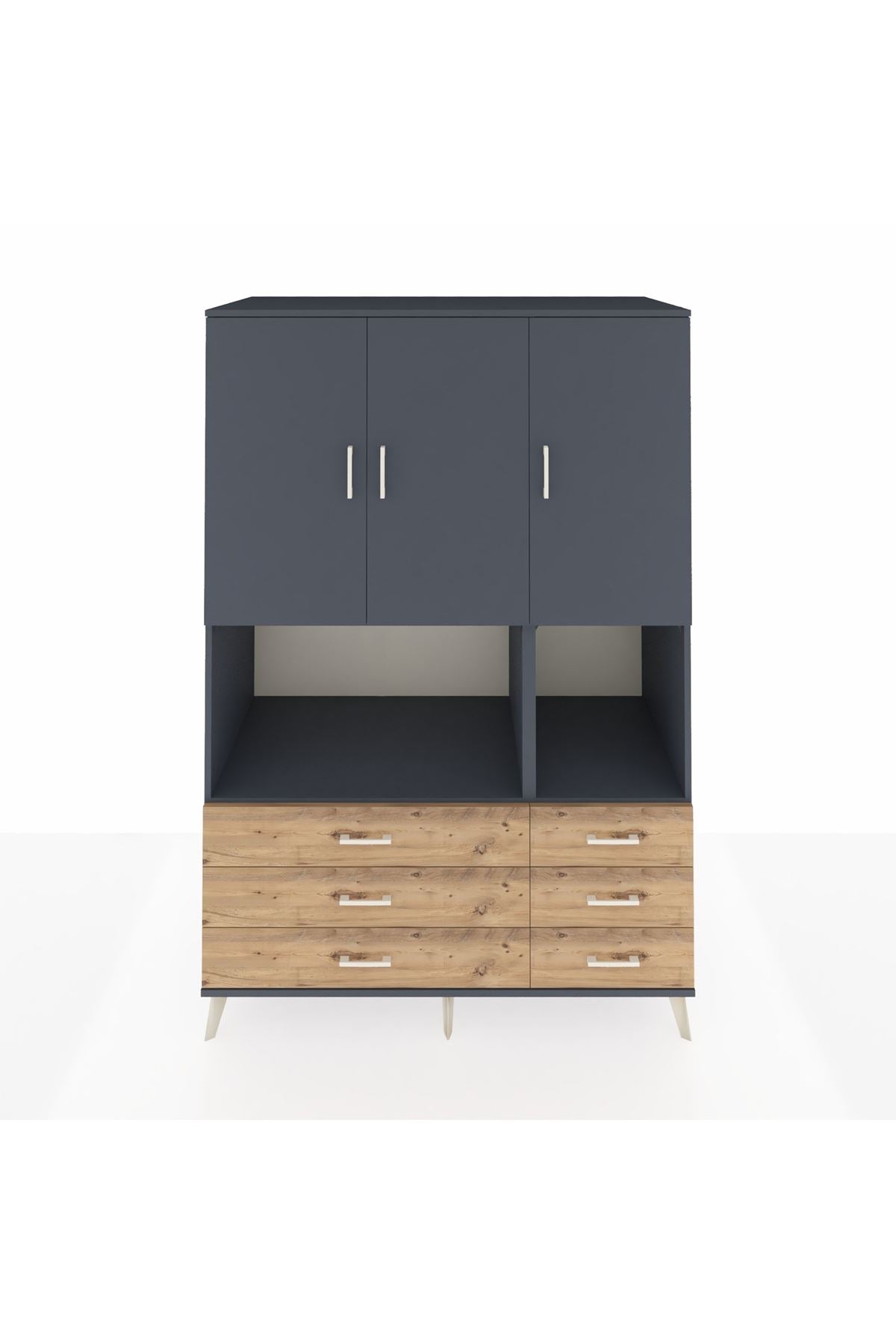 Kronos Dolap 6 Raflı 6 Çekmeceli 3 Kapaklı 132x59x195 Antrasit-Antrasit/Çam