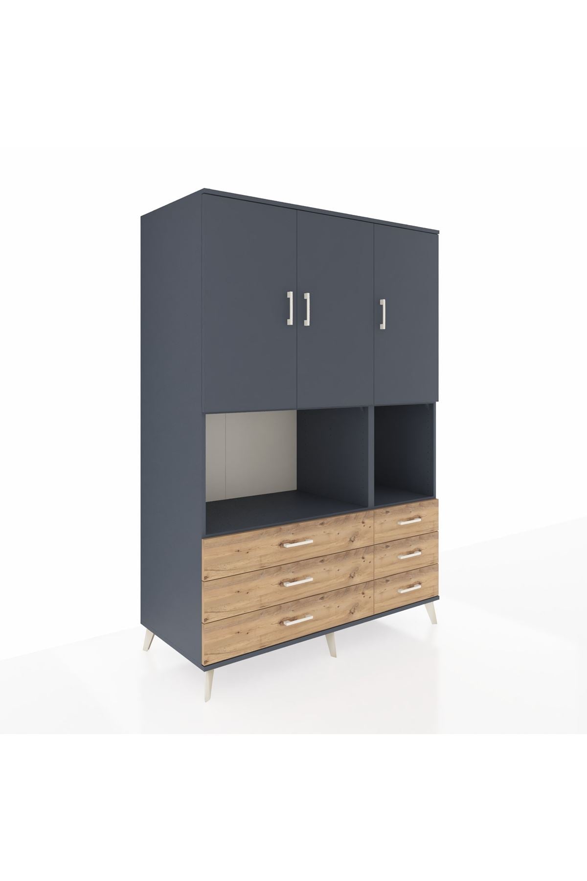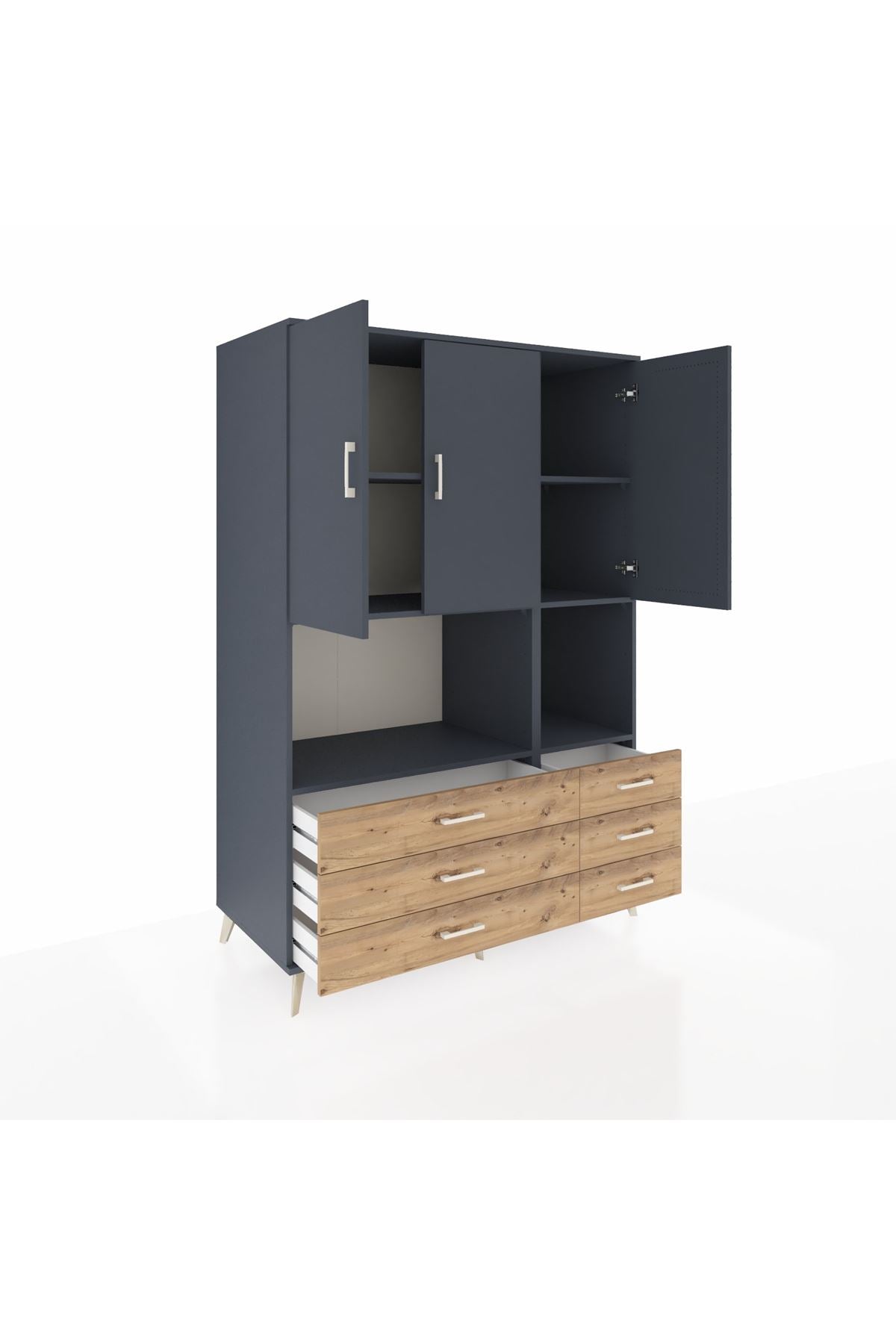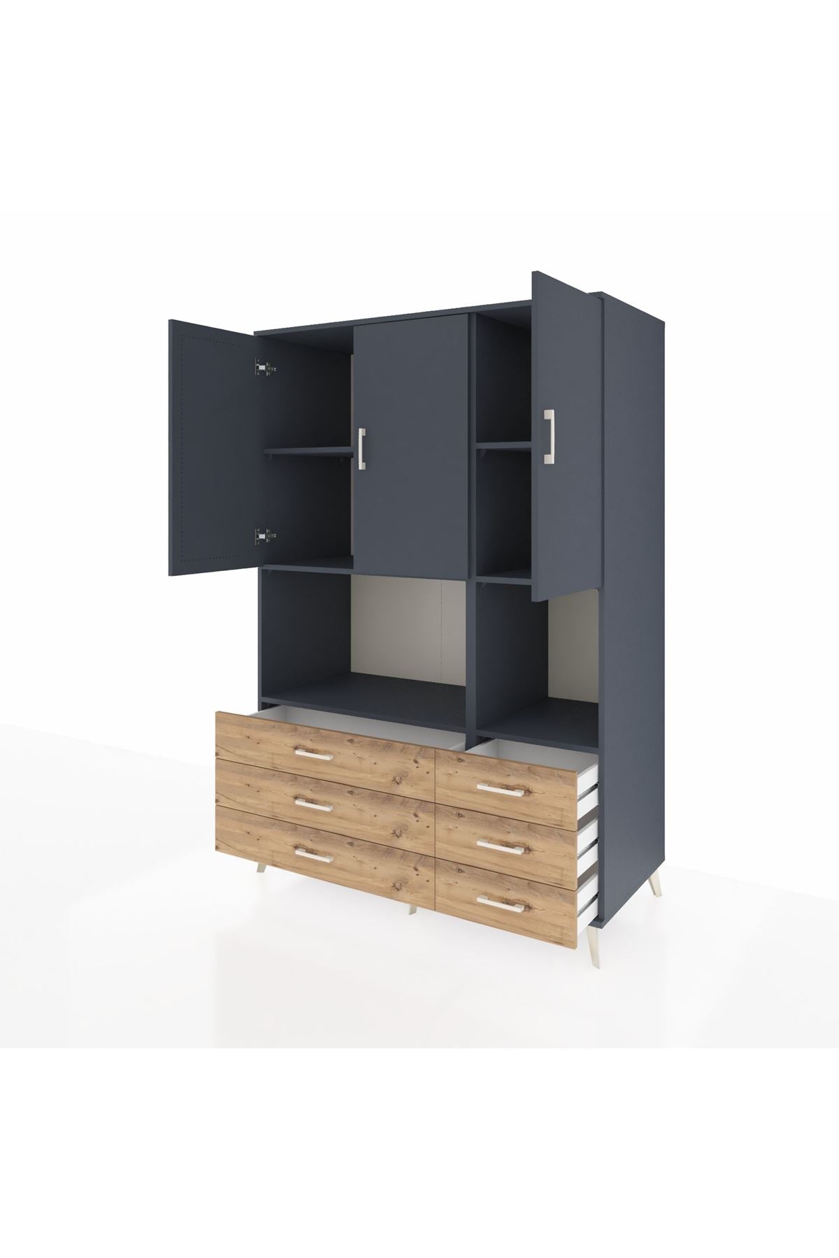 Kronos Dolap 6 Raflı 6 Çekmeceli 3 Kapaklı 132x59x195 Antrasit-Antrasit/Çam