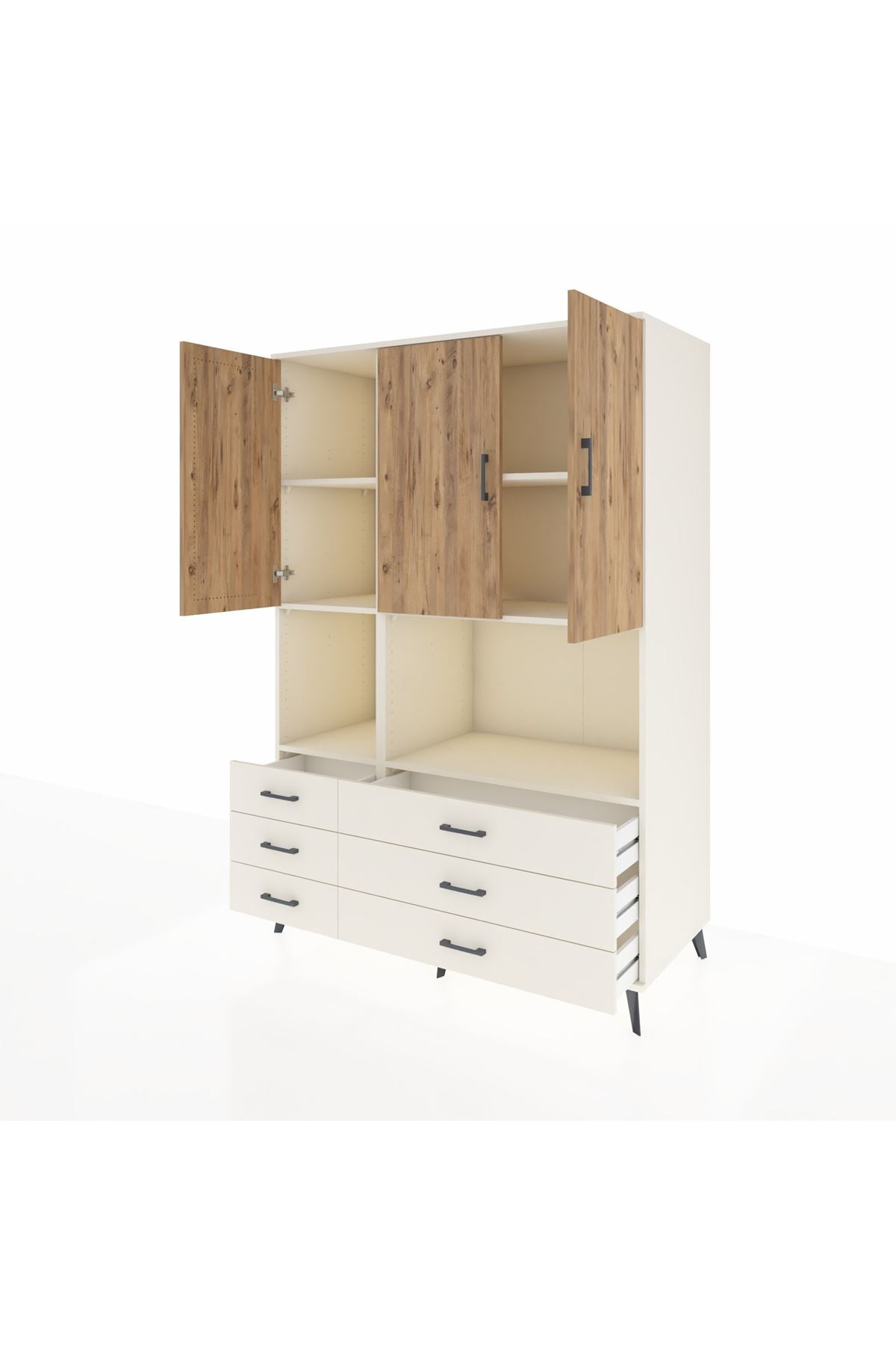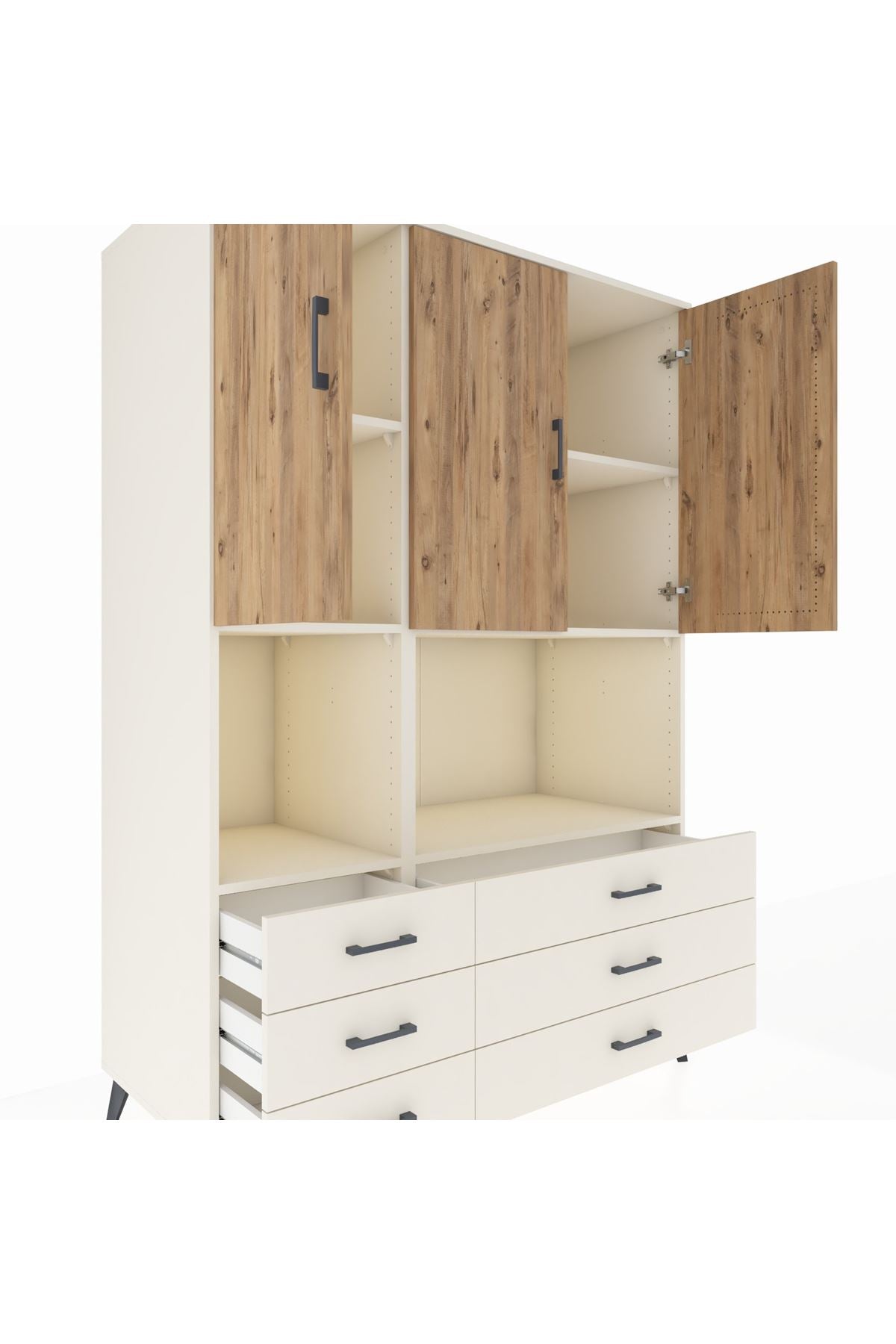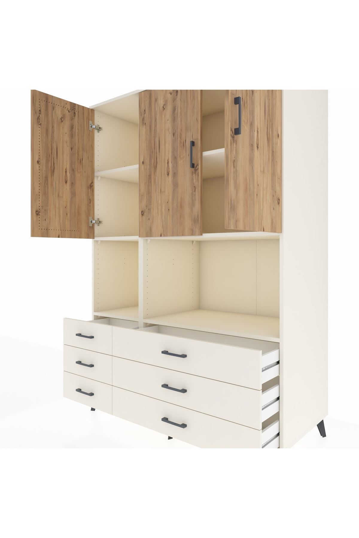 Kronos Dolap 6 Raflı 6 Çekmeceli 3 Kapaklı 132x59x195 Aytaşı-Çam/Aytaşı