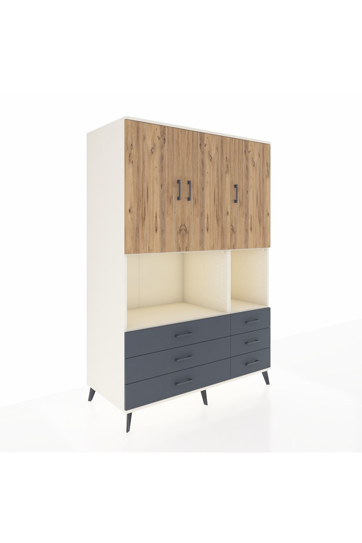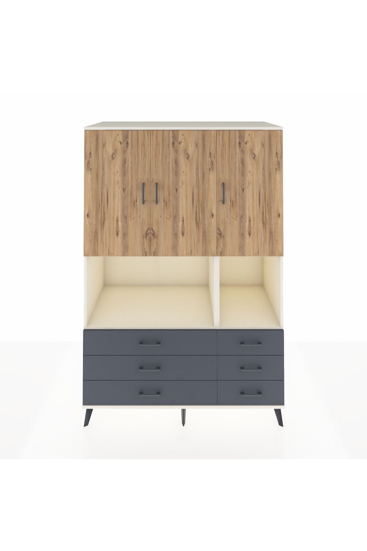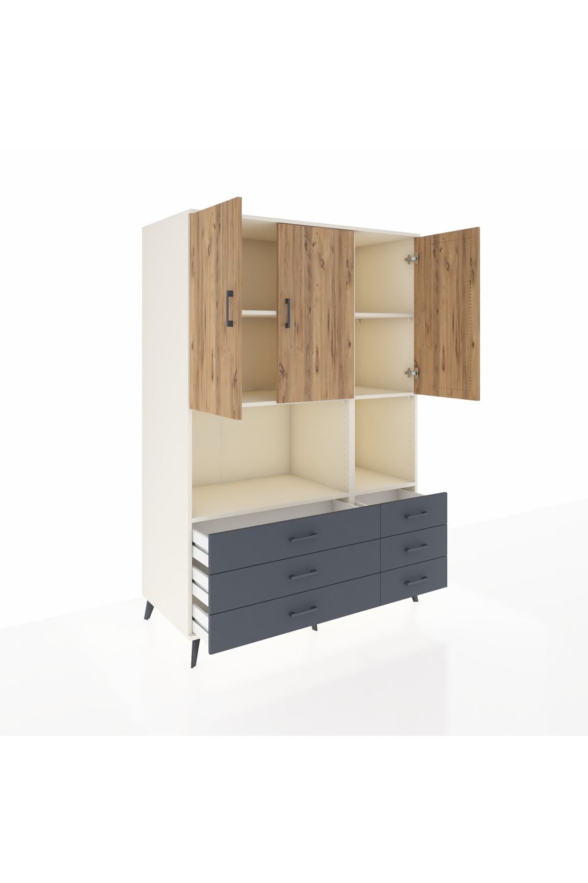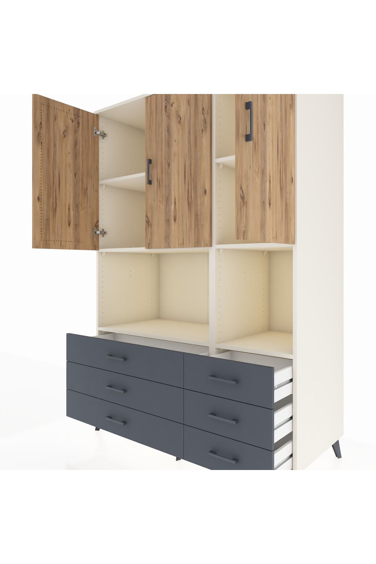 Kronos Dolap 6 Raflı 6 Çekmeceli 3 Kapaklı 132x59x195 Aytaşı-Çam/Antrasit