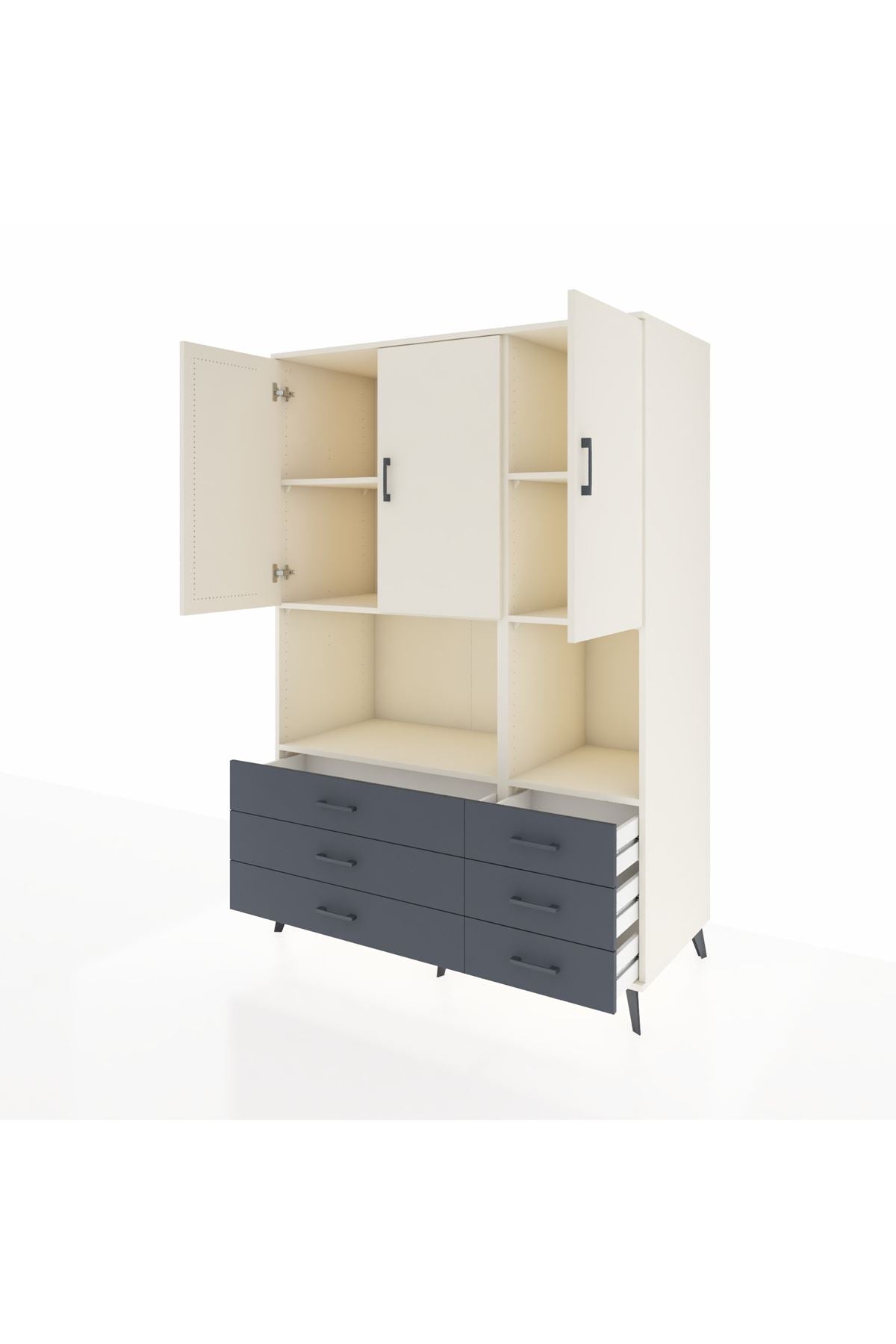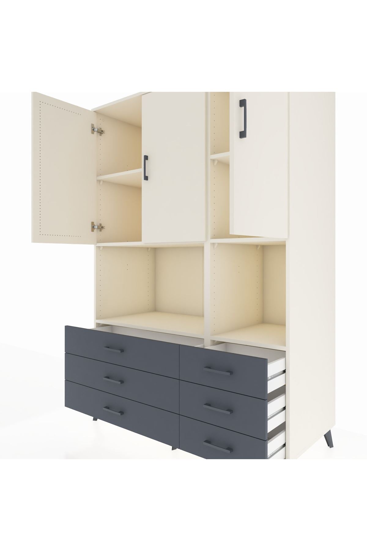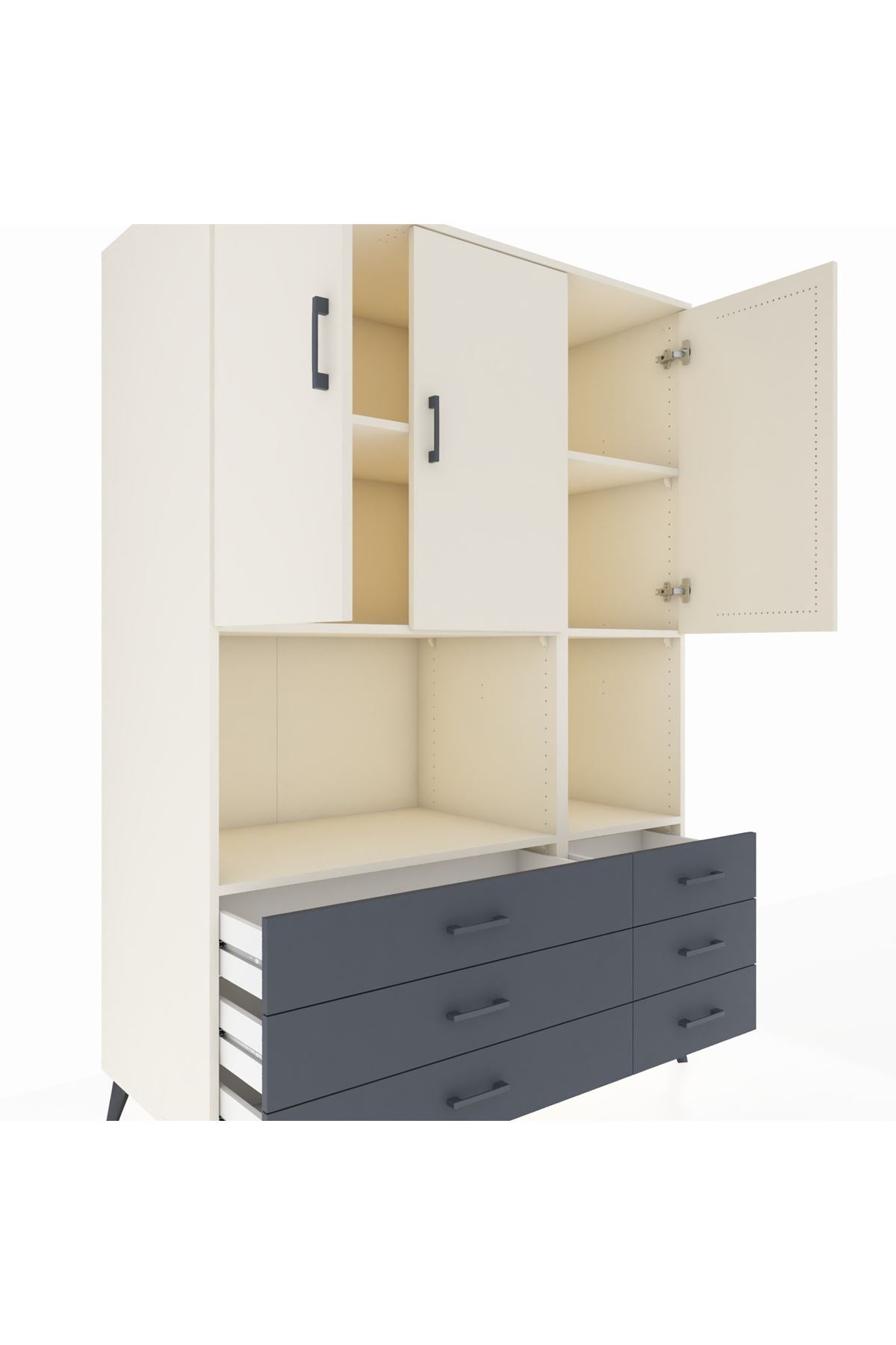 Kronos Dolap 6 Raflı 6 Çekmeceli 3 Kapaklı 132x59x195 Aytaşı-Aytaşı/Antrasit