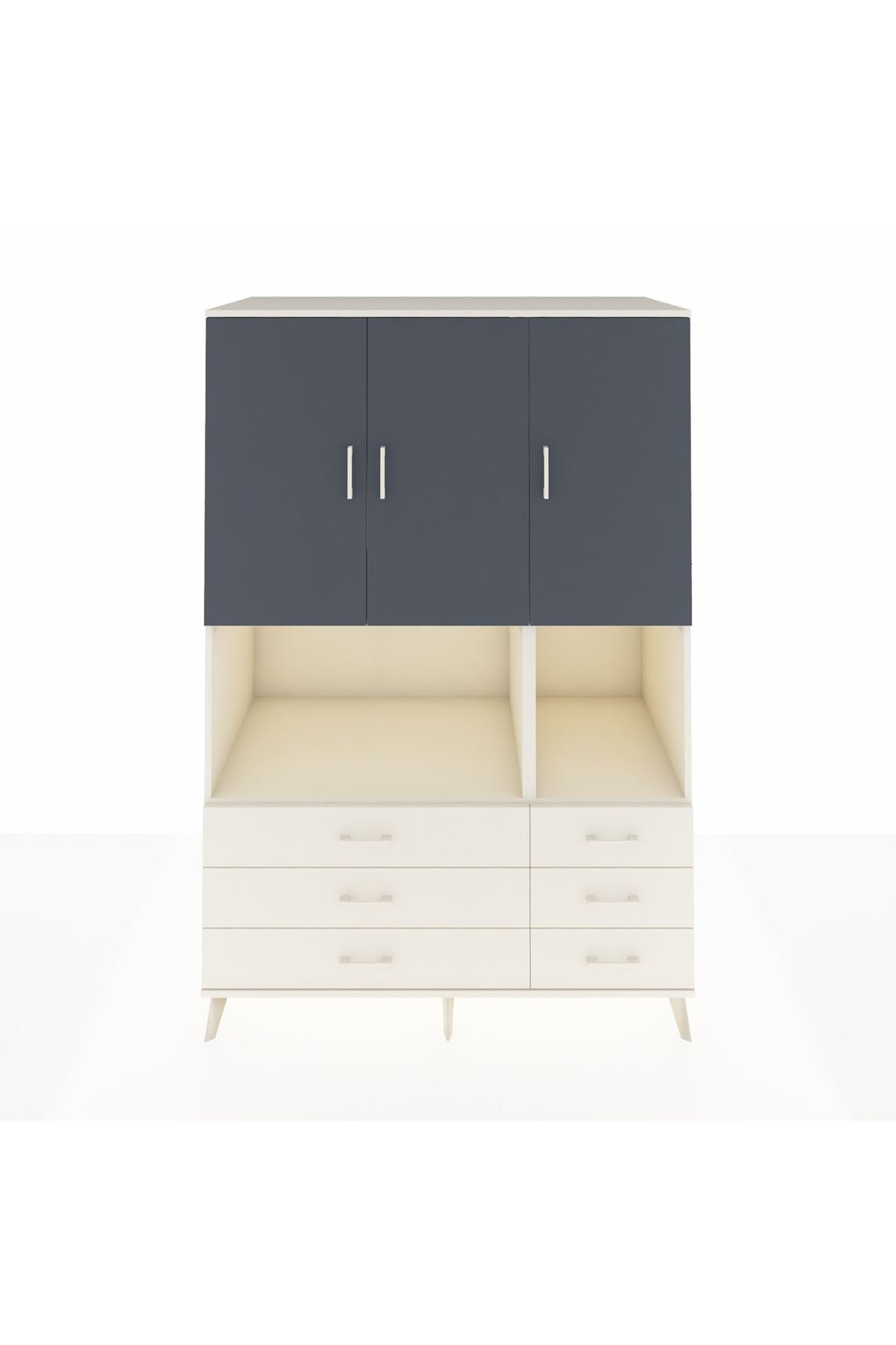 Kronos Dolap 6 Raflı 6 Çekmeceli 3 Kapaklı 132x59x195 Aytaşı-Antrasit/Aytaşı