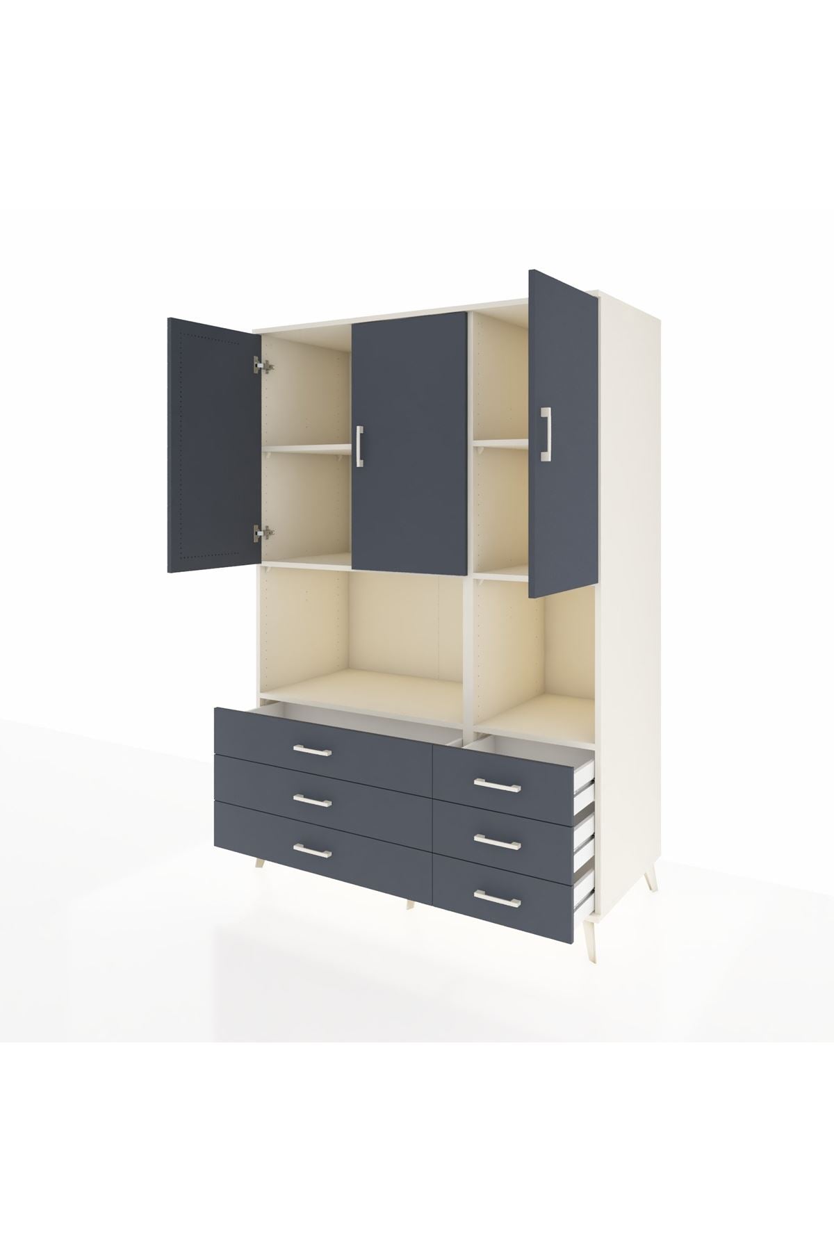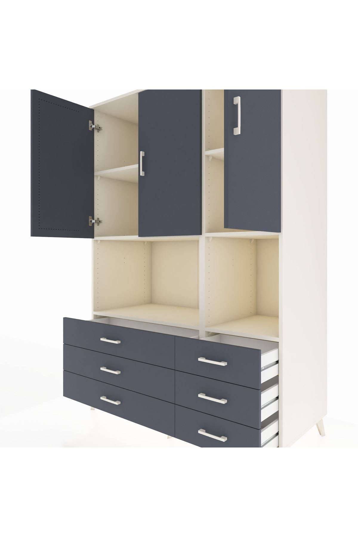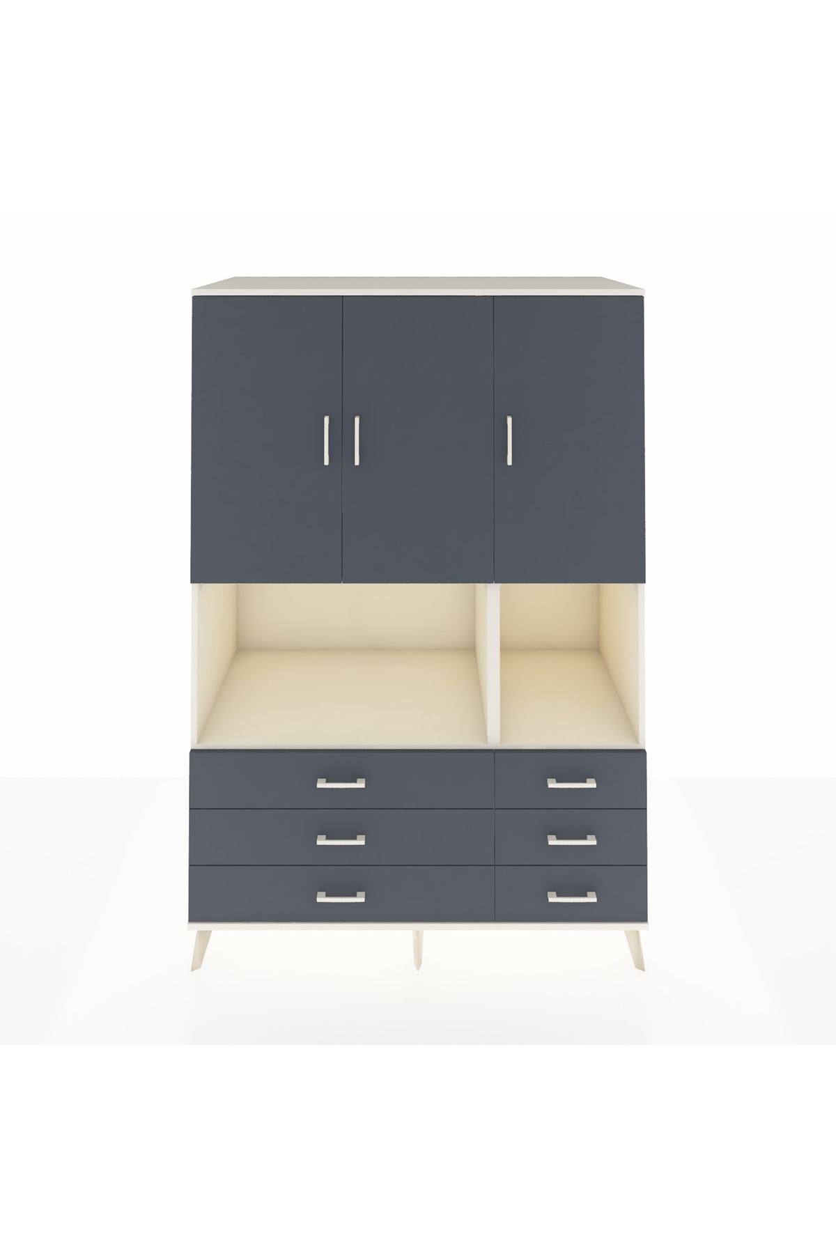 Kronos Dolap 6 Raflı 6 Çekmeceli 3 Kapaklı 132x59x195 Aytaşı-Antrasit/Antrasit