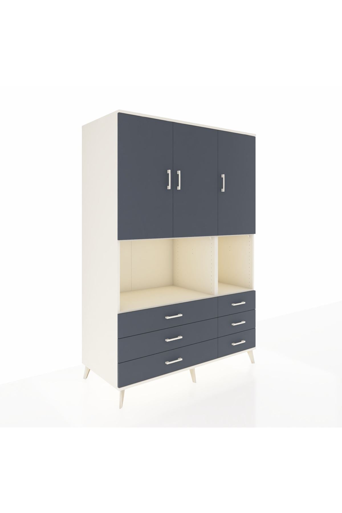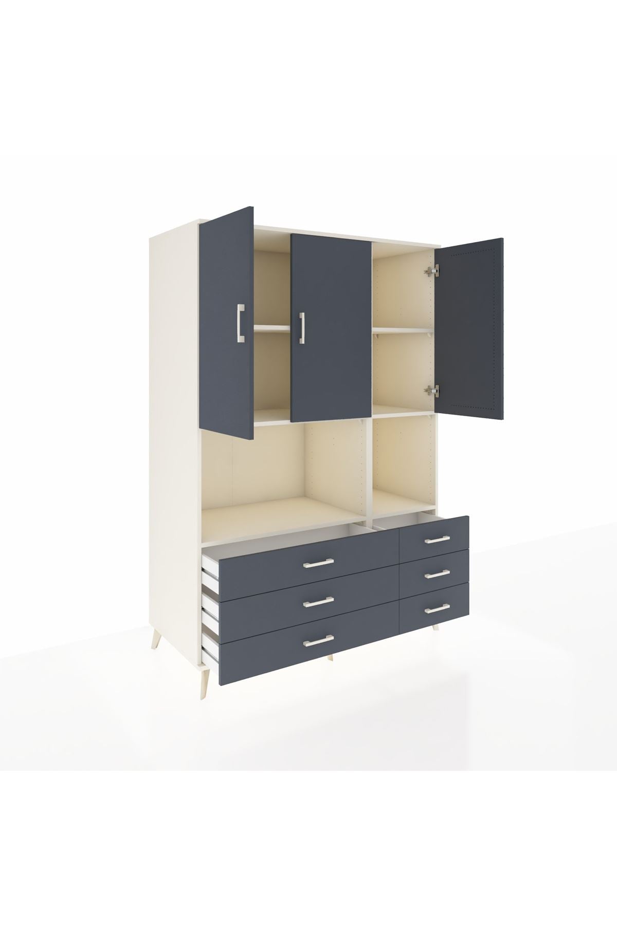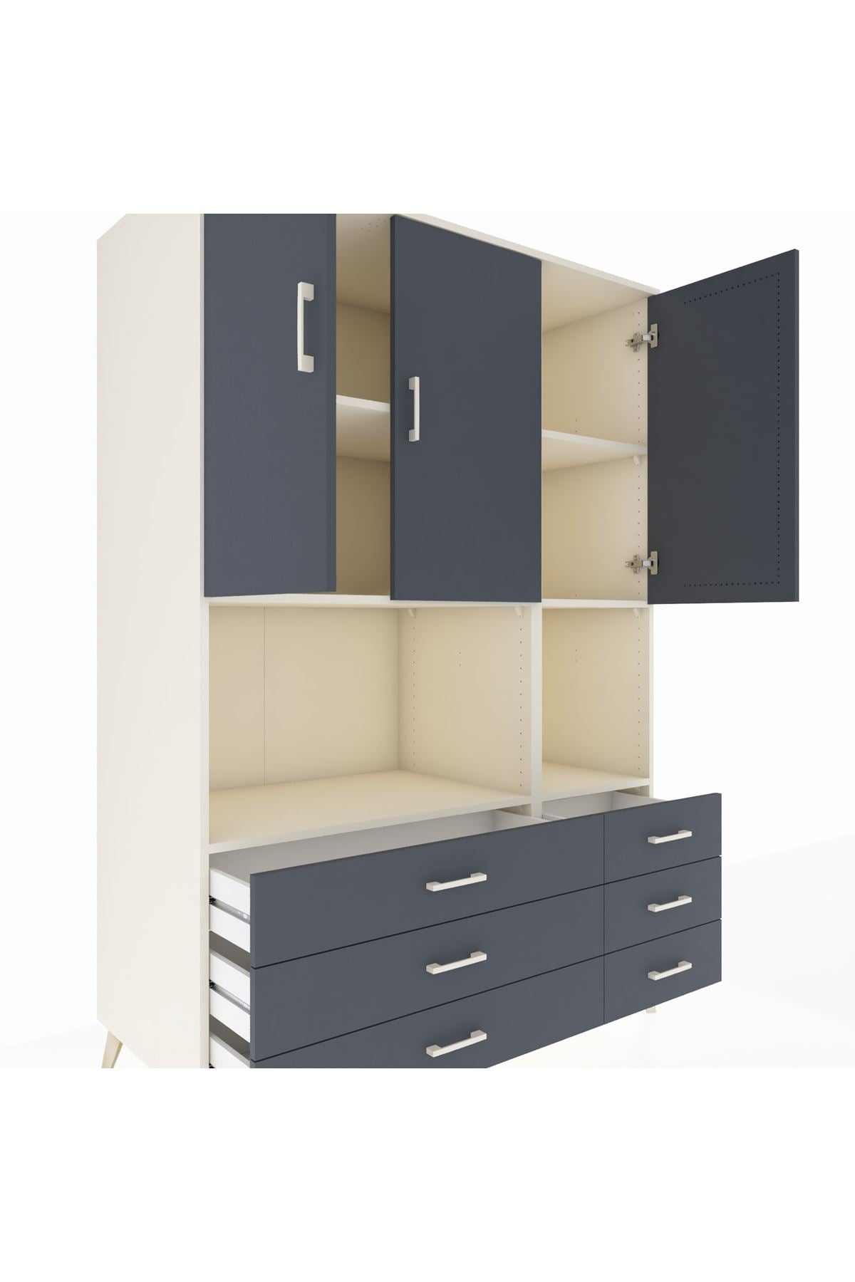 Kronos Dolap 6 Raflı 6 Çekmeceli 3 Kapaklı 132x59x195 Aytaşı-Antrasit/Antrasit