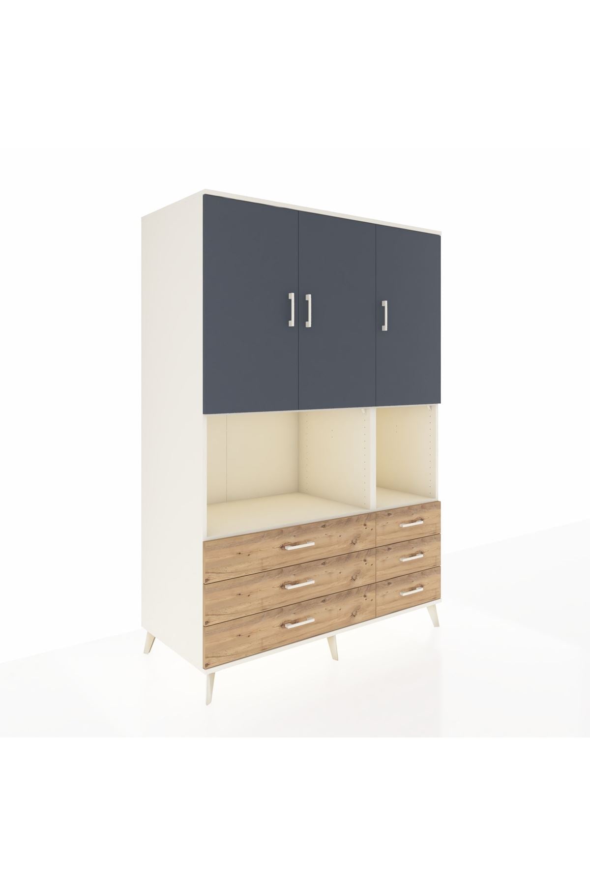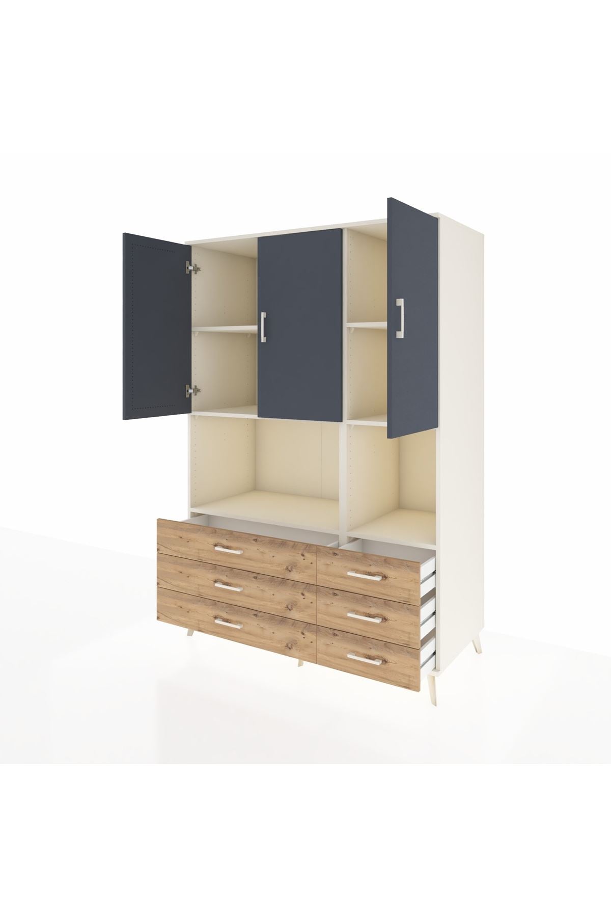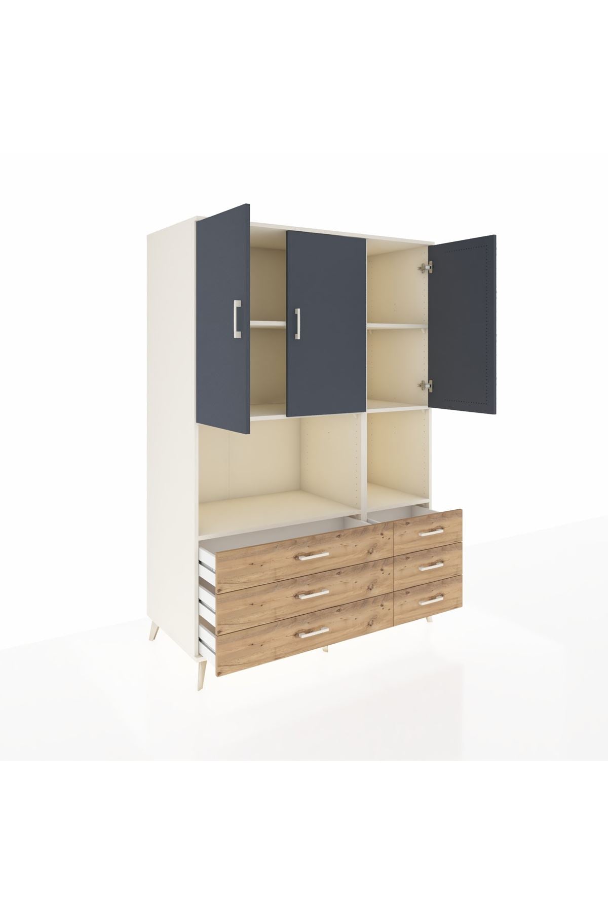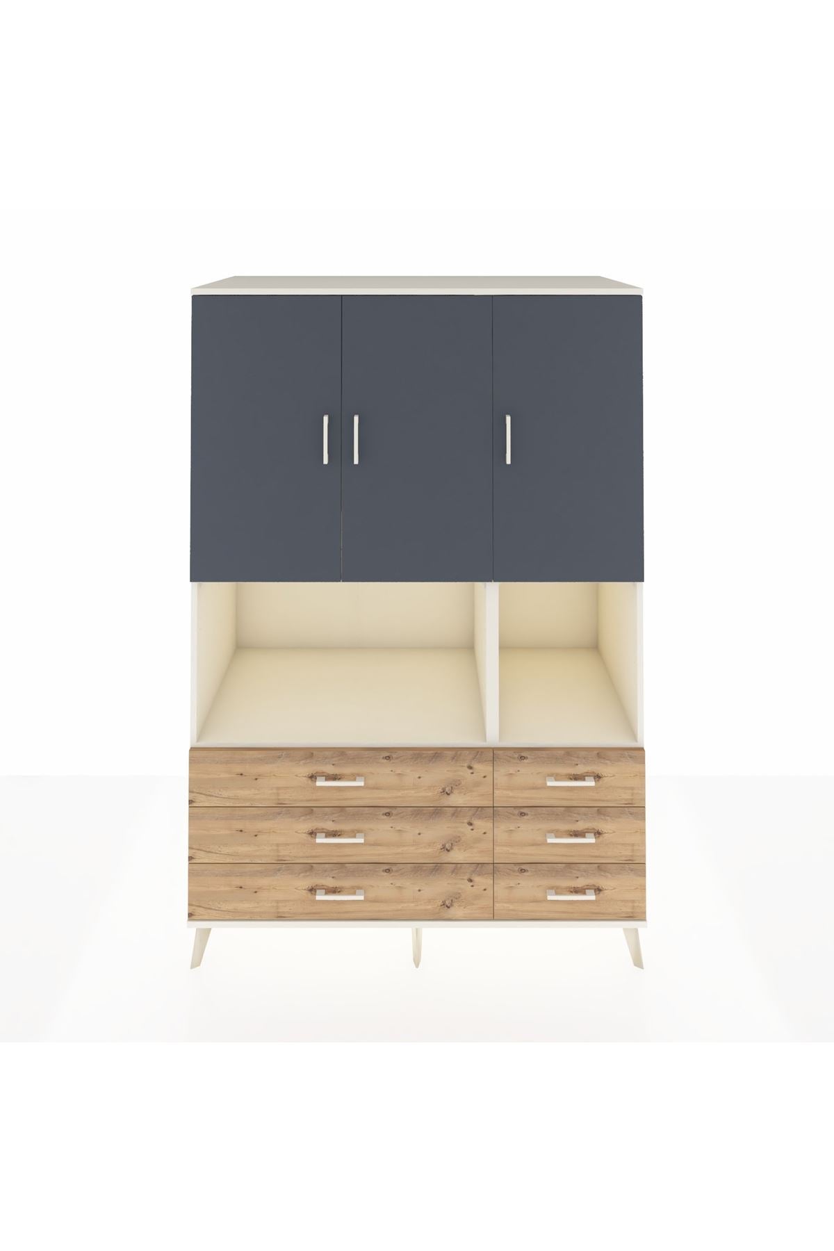 Kronos Dolap 6 Raflı 6 Çekmeceli 3 Kapaklı 132x59x195 Aytaşı-Antrasit/Çam