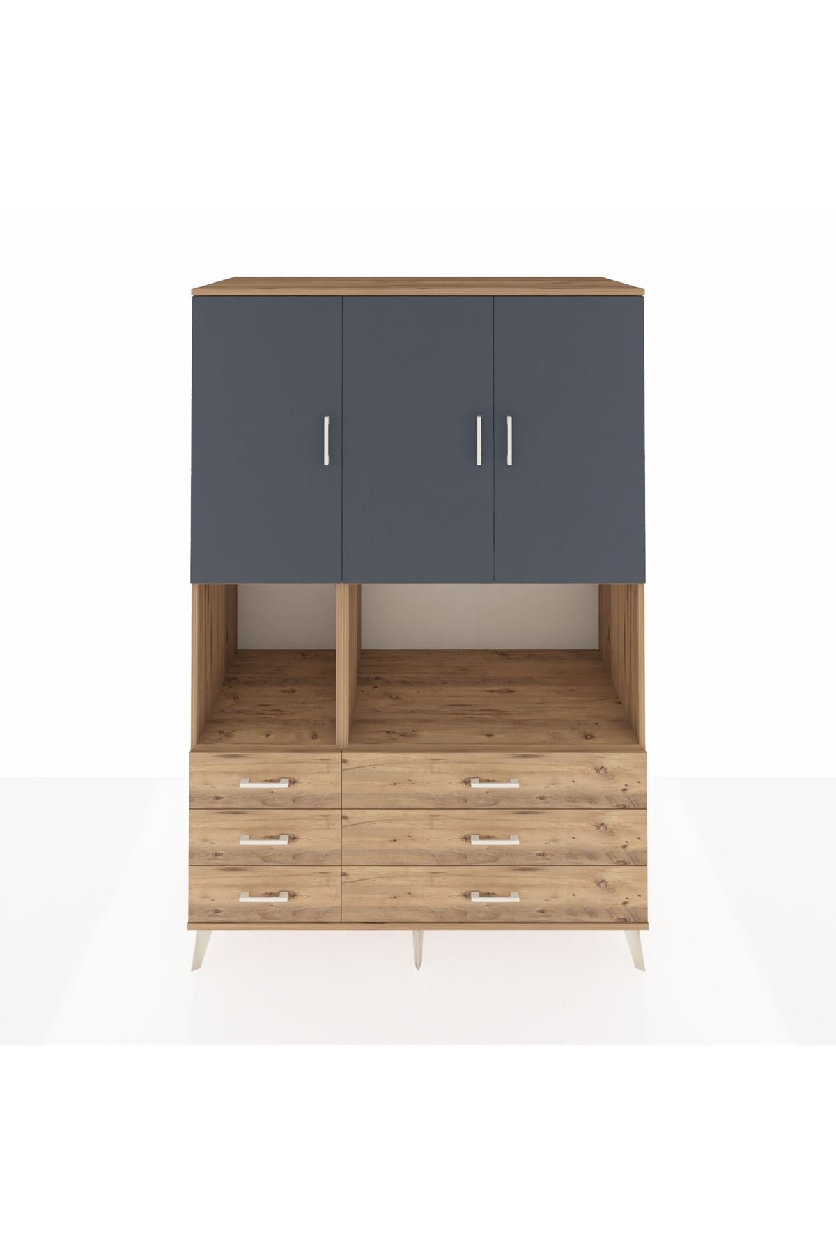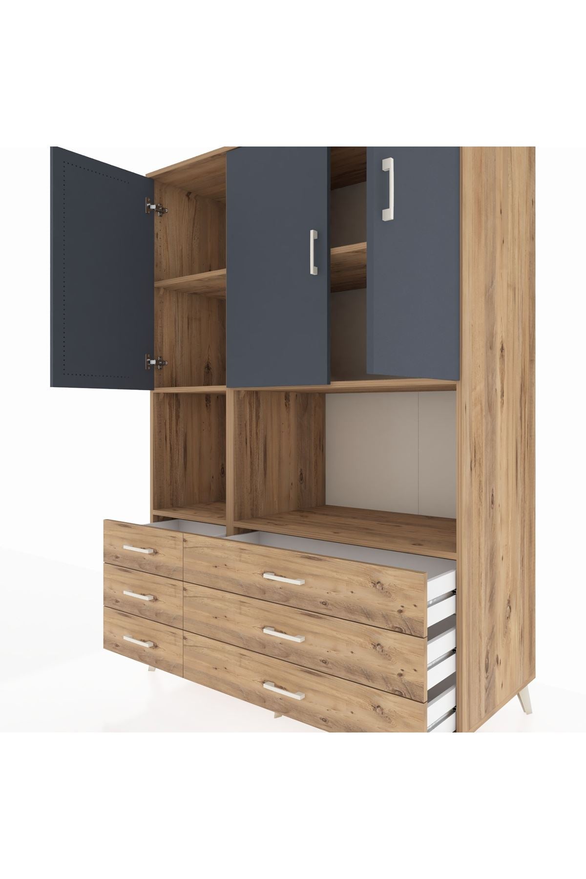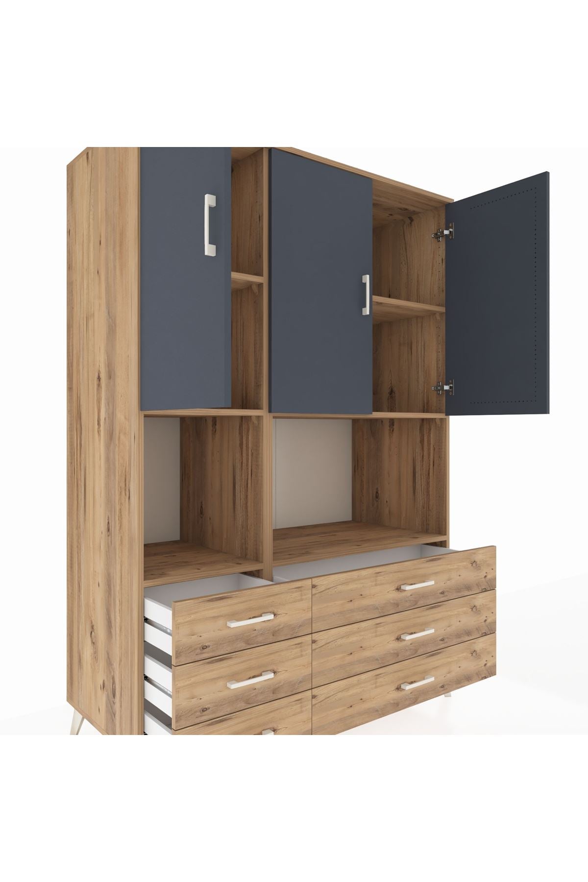 Kronos Dolap 6 Raflı 6 Çekmeceli 3 Kapaklı 132x59x195 Çam-Antrasit/Çam