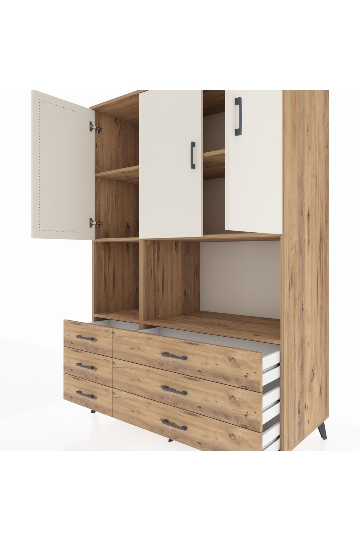 Kronos Dolap 6 Raflı 6 Çekmeceli 3 Kapaklı 132x59x195 Çam-Aytaşı/Çam