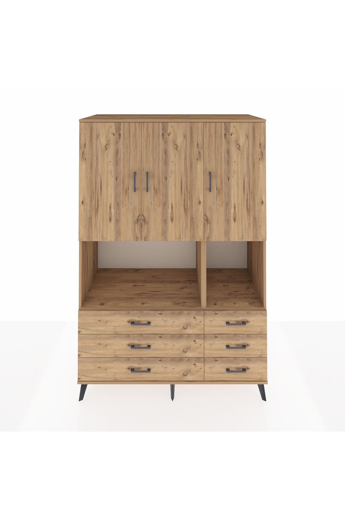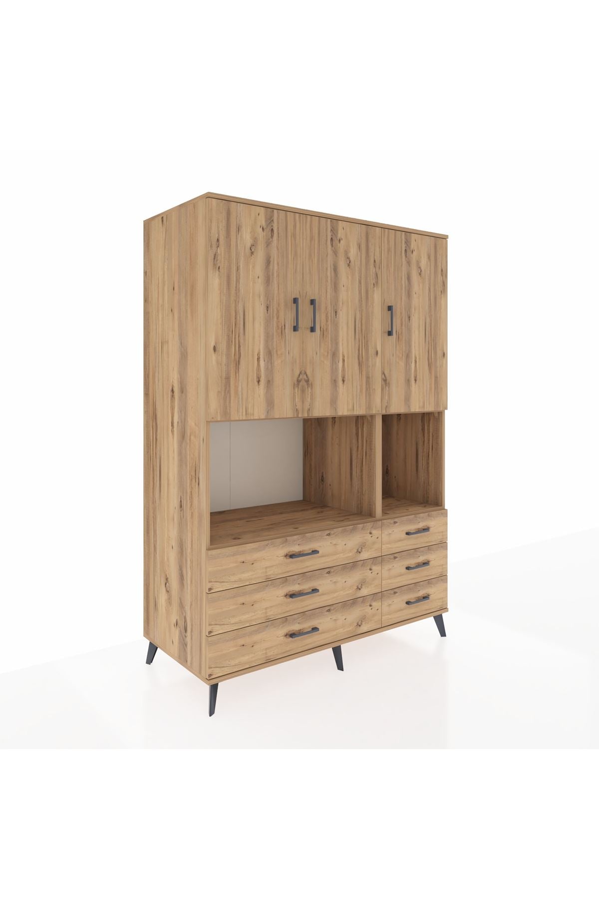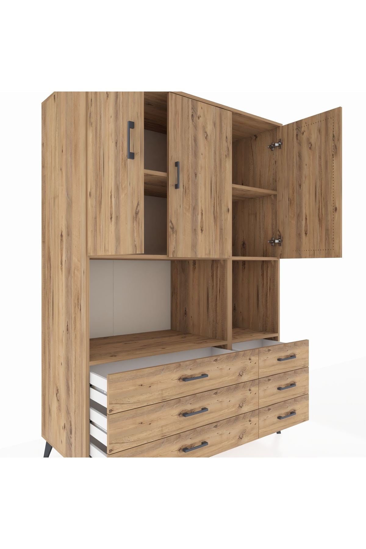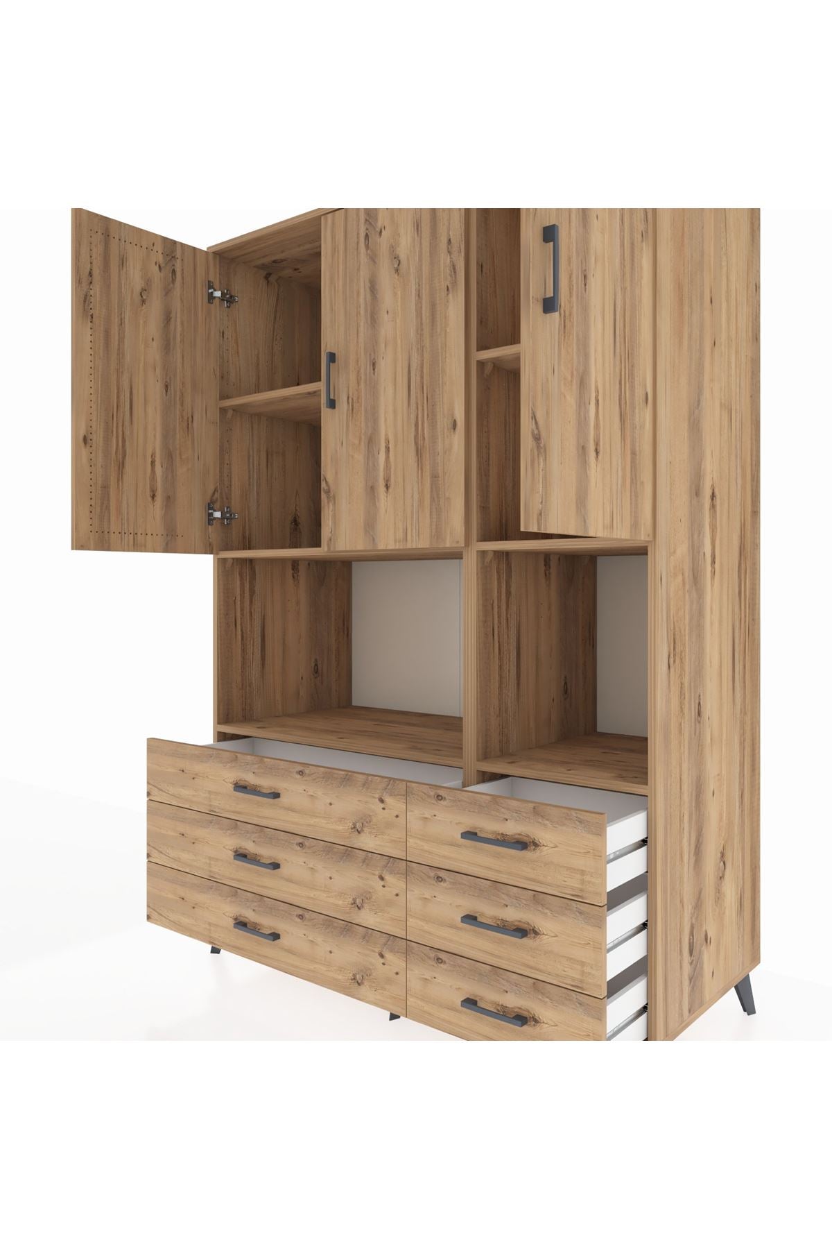 Kronos Dolap 6 Raflı 6 Çekmeceli 3 Kapaklı 132x59x195 Çam-Çam/Çam