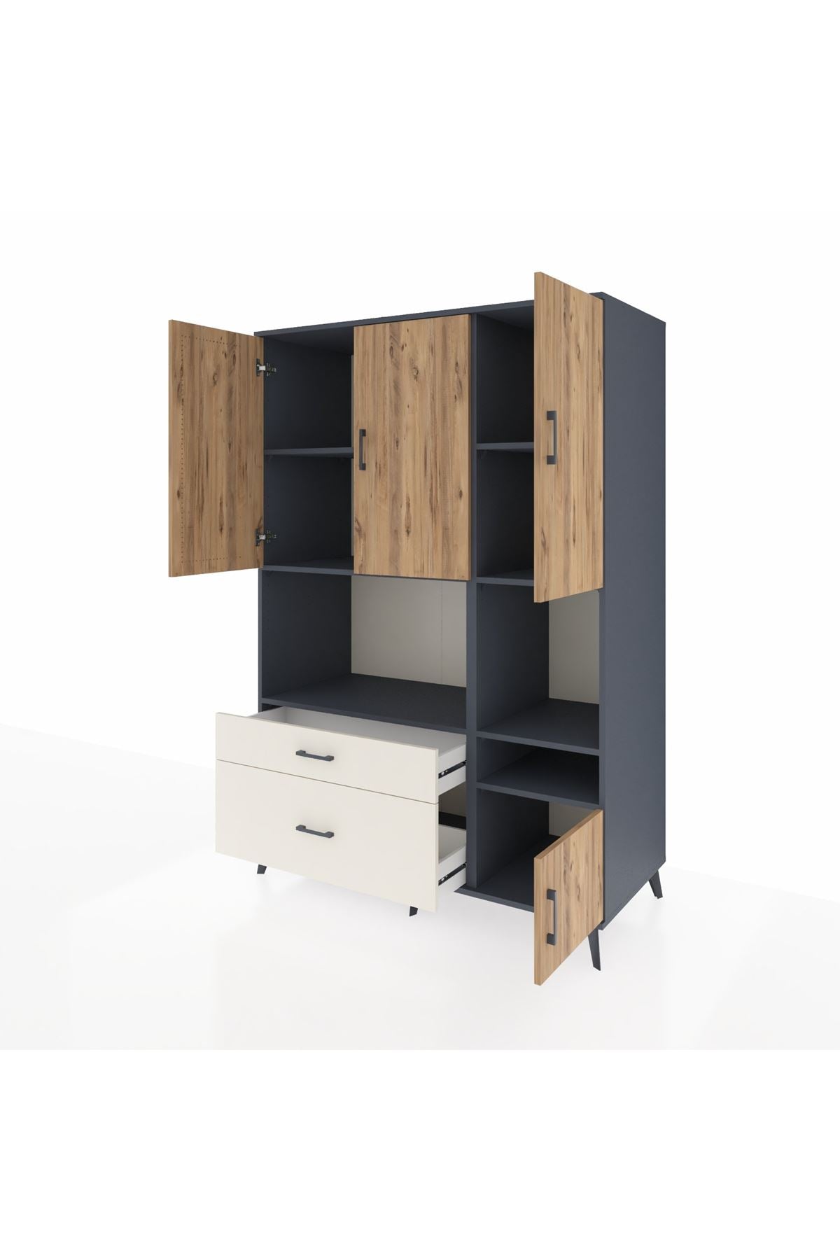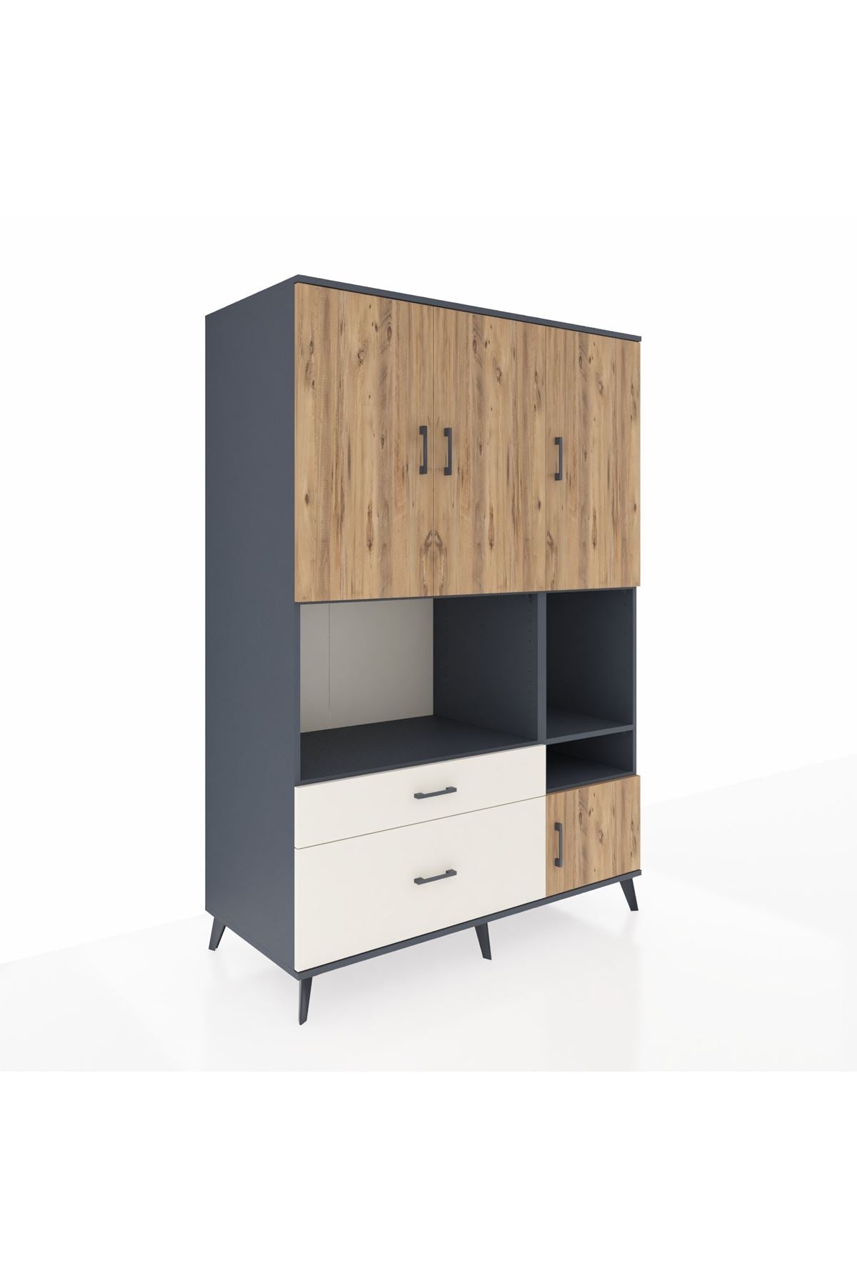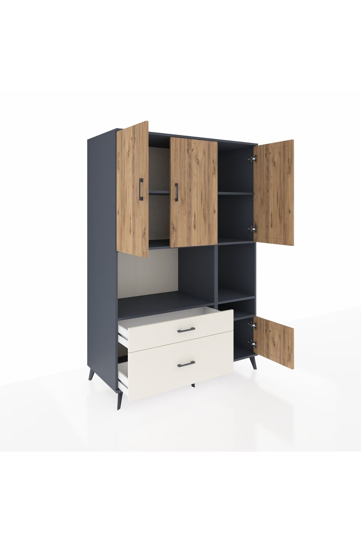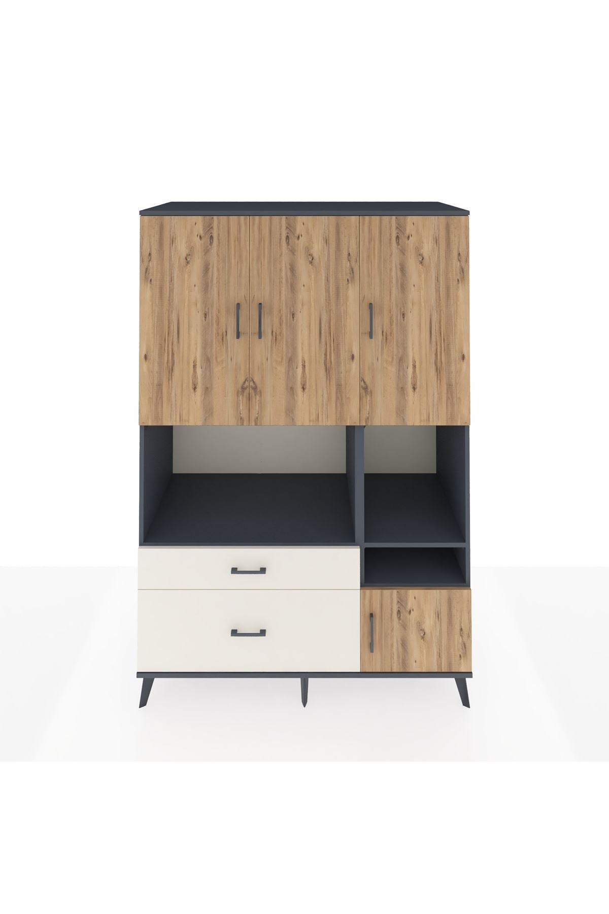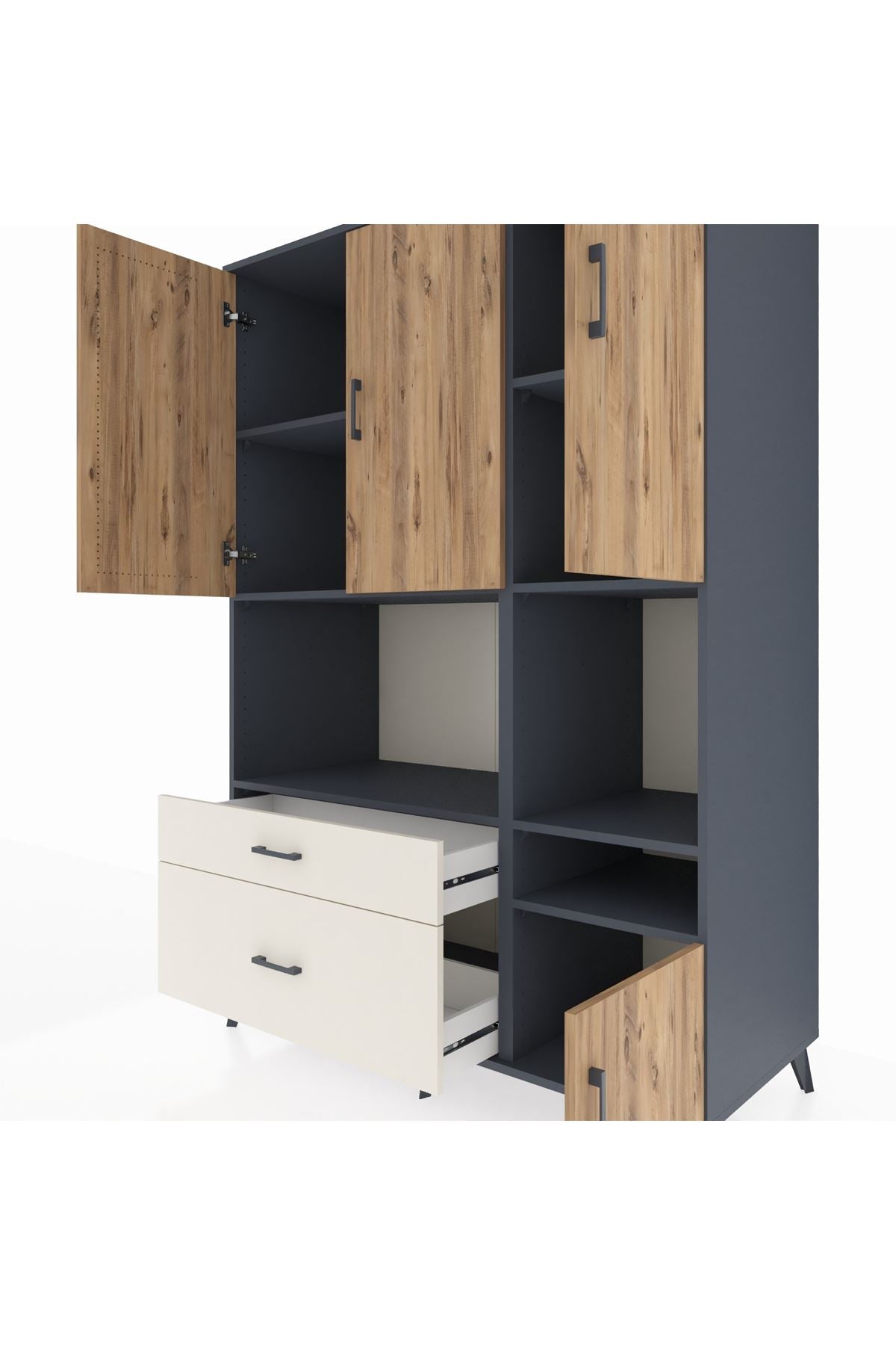 Kronos Dolap 7 Raflı 2 Çekmeceli 4 Kapaklı 132x59x195 Antrasit-Çam/Aytaşı