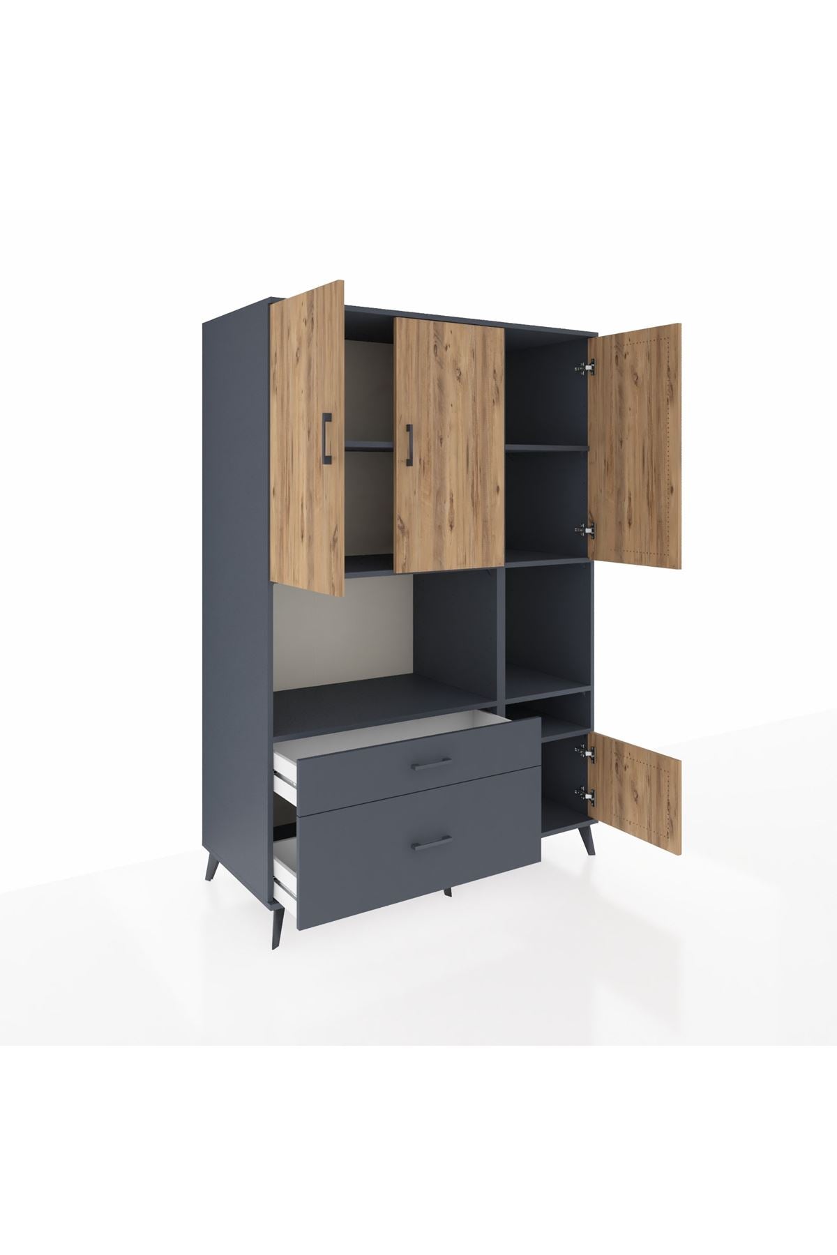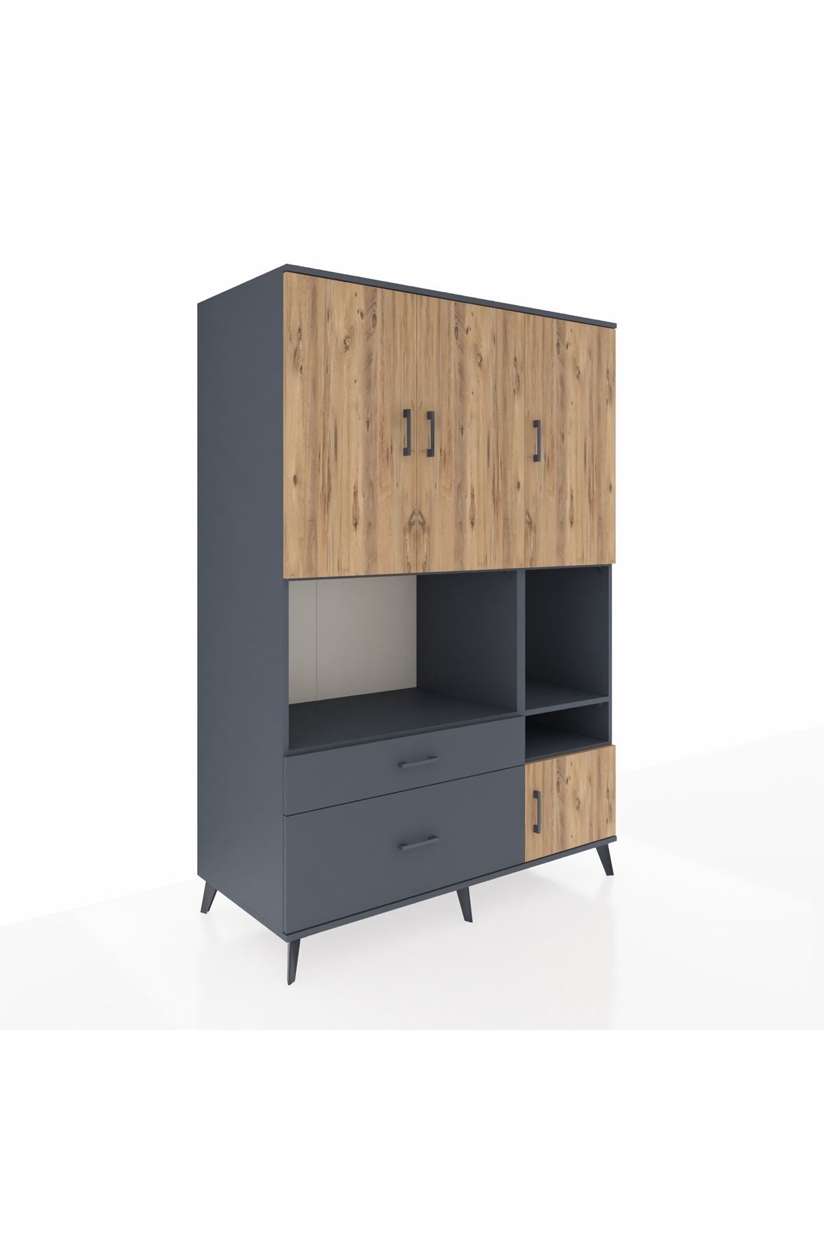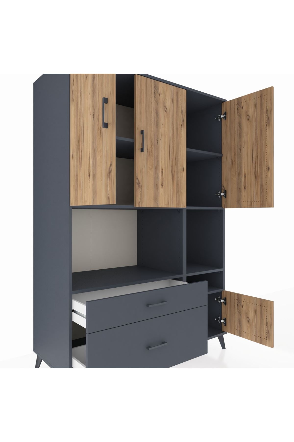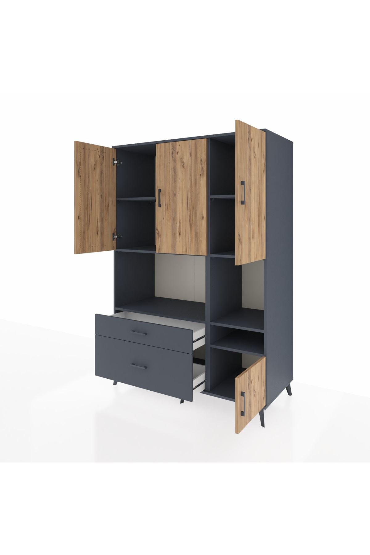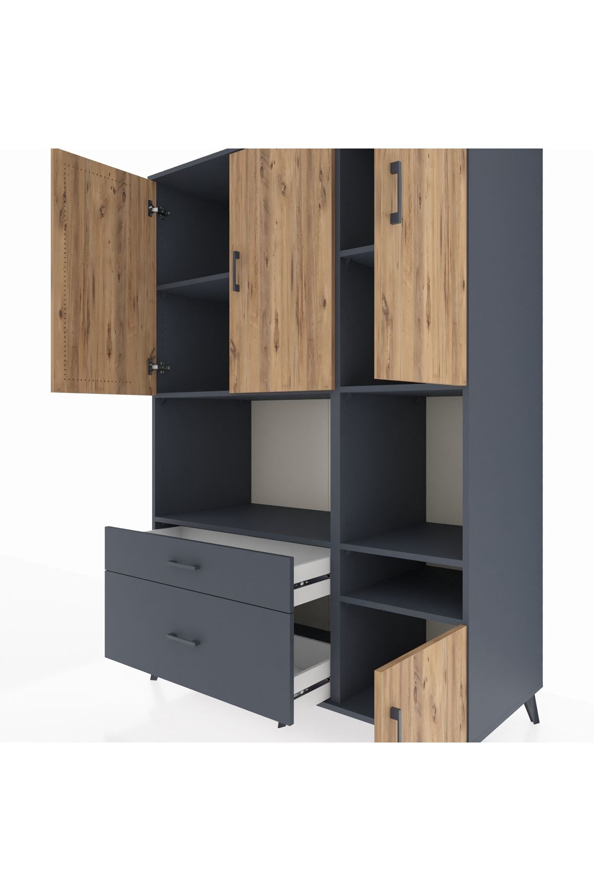 Kronos Dolap 7 Raflı 2 Çekmeceli 4 Kapaklı 132x59x195 Antrasit-Çam/Antrasit