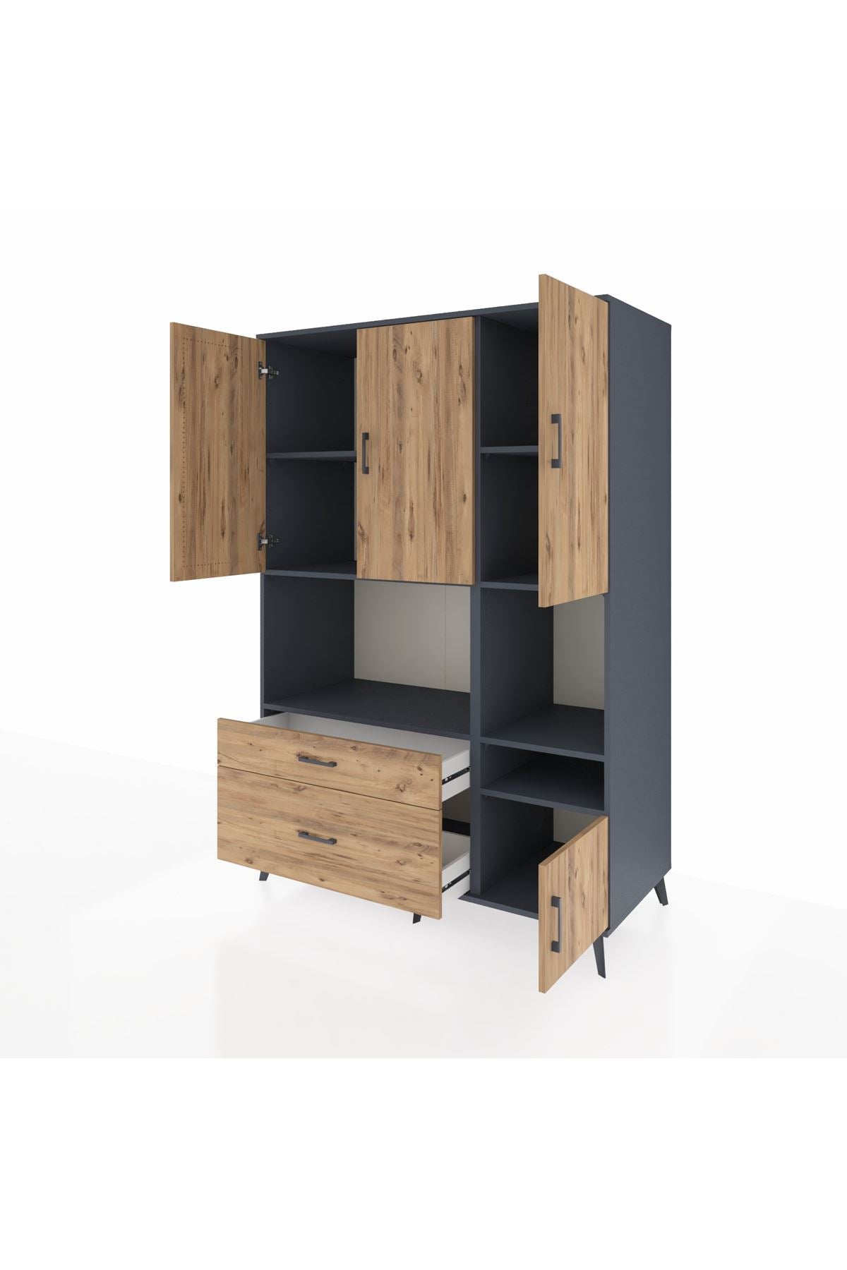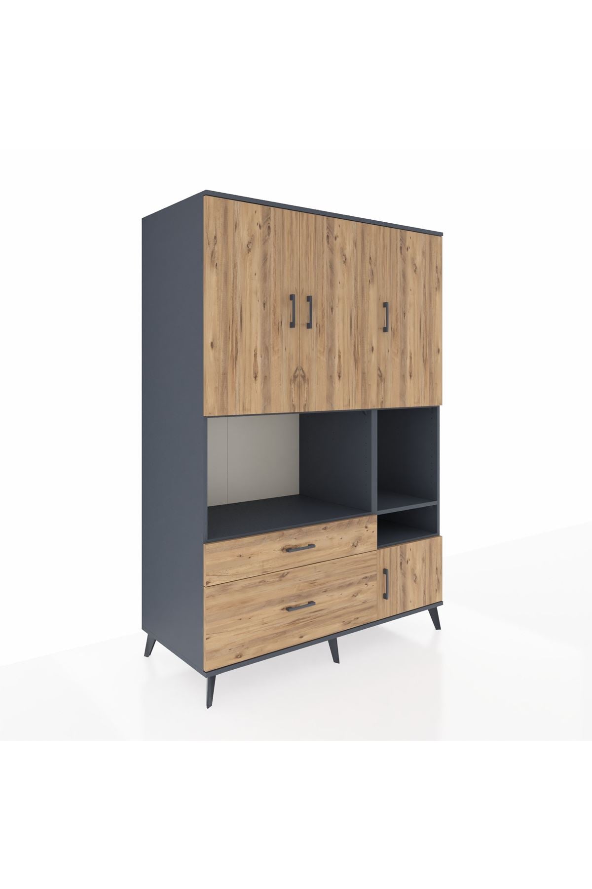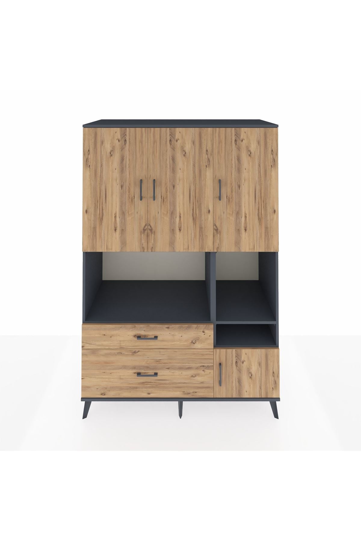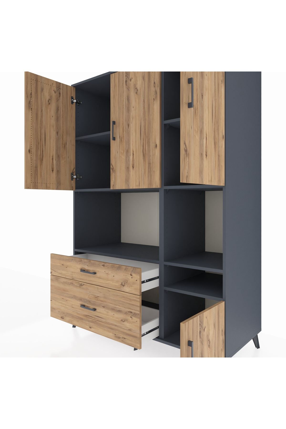 Kronos Dolap 7 Raflı 2 Çekmeceli 4 Kapaklı 132x59x195 Antrasit-Çam/Çam
