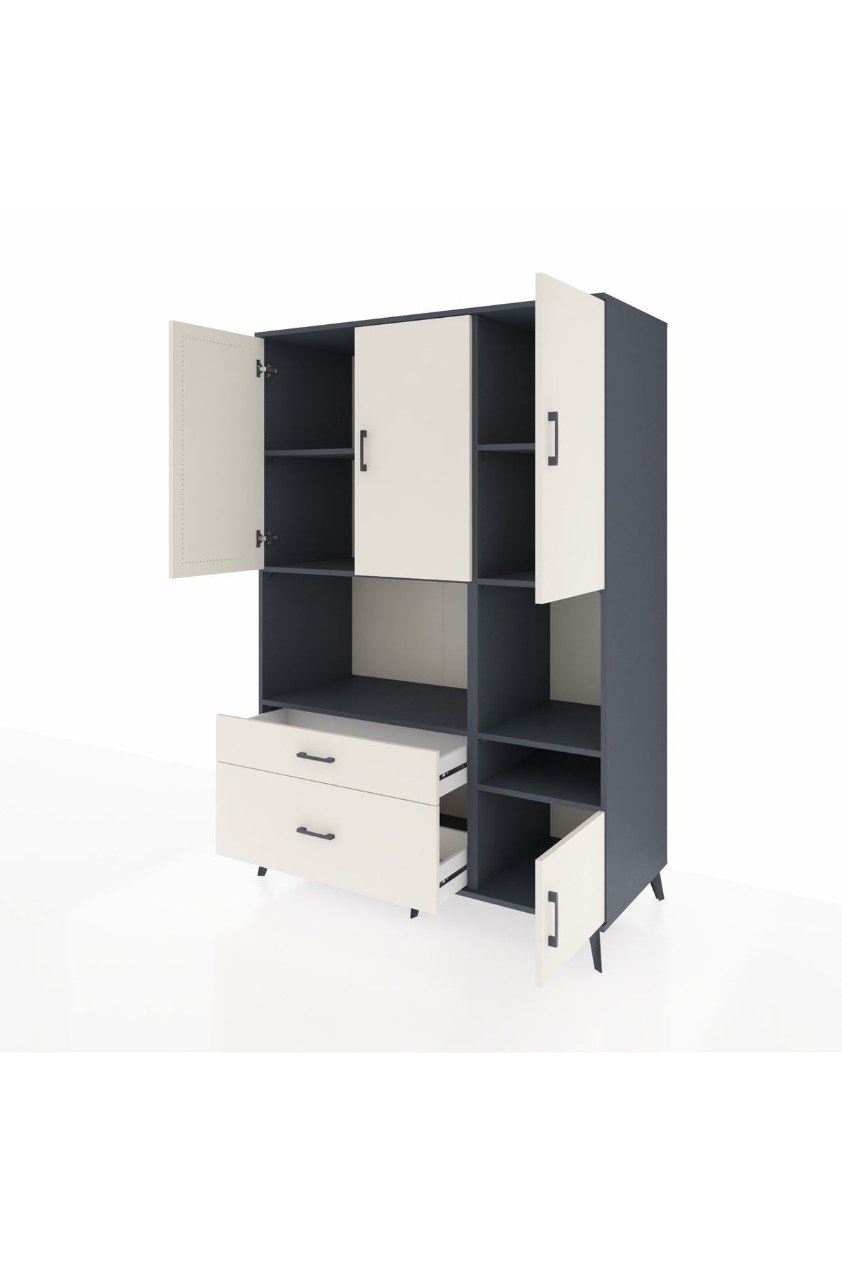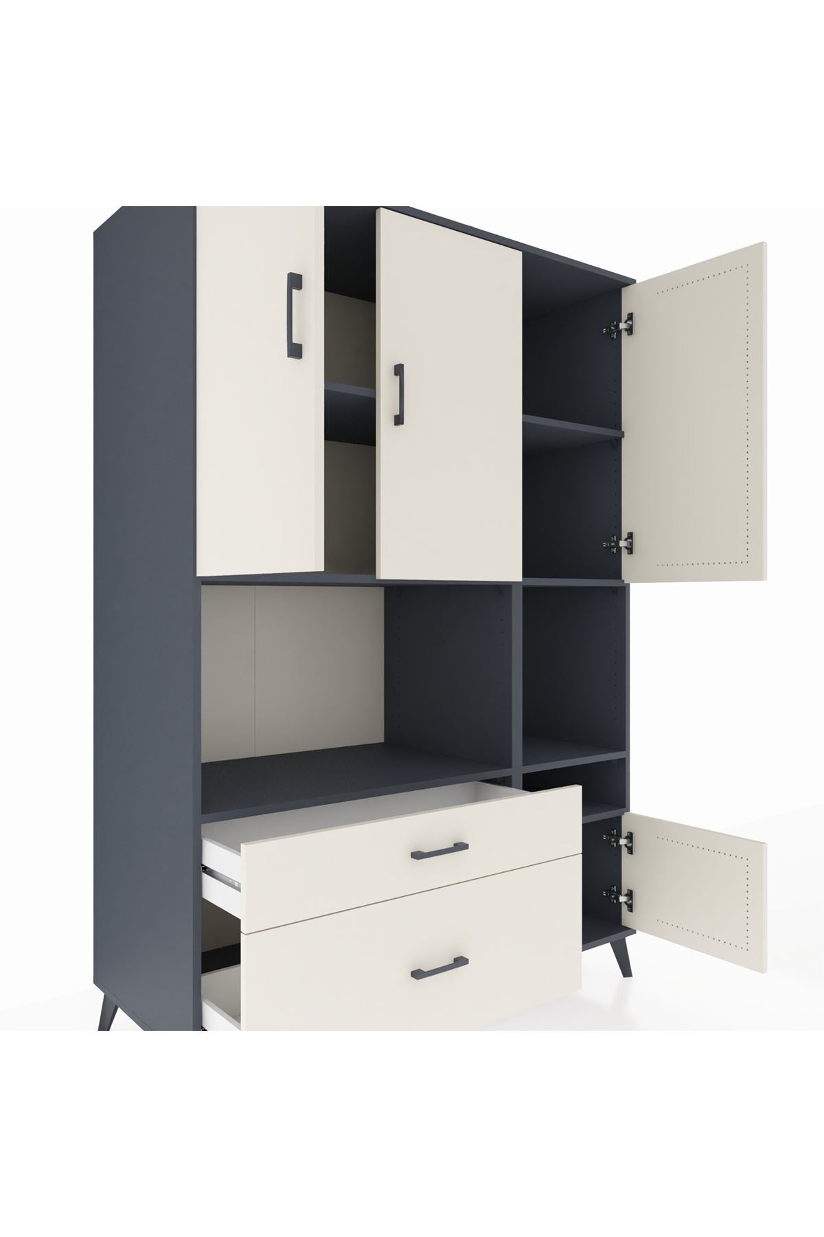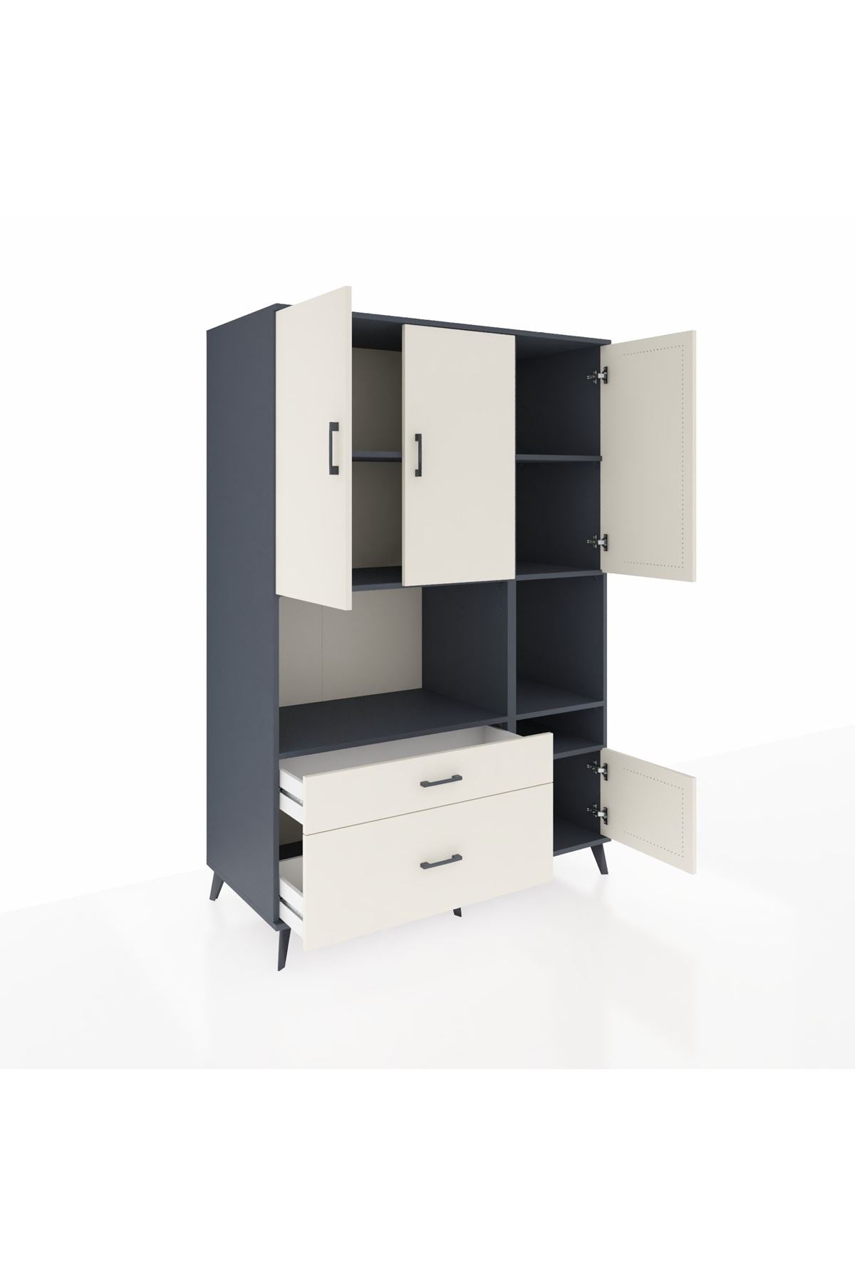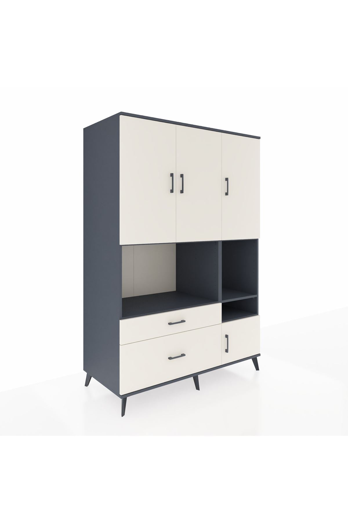 Modern çizgileri ve geniş iç hacmiyle, 132x59x195 cm ölçülerindeki bu çok amaçlı dolap, evinizin her alanında ferah ve fonksiyonel bir depolama deneyimi sunuyor. Antrasit ve aytaşı renk kombinasyonu, zamansız şıklığı ve güncel dekorasyon trendlerini bir araya getiriyor.