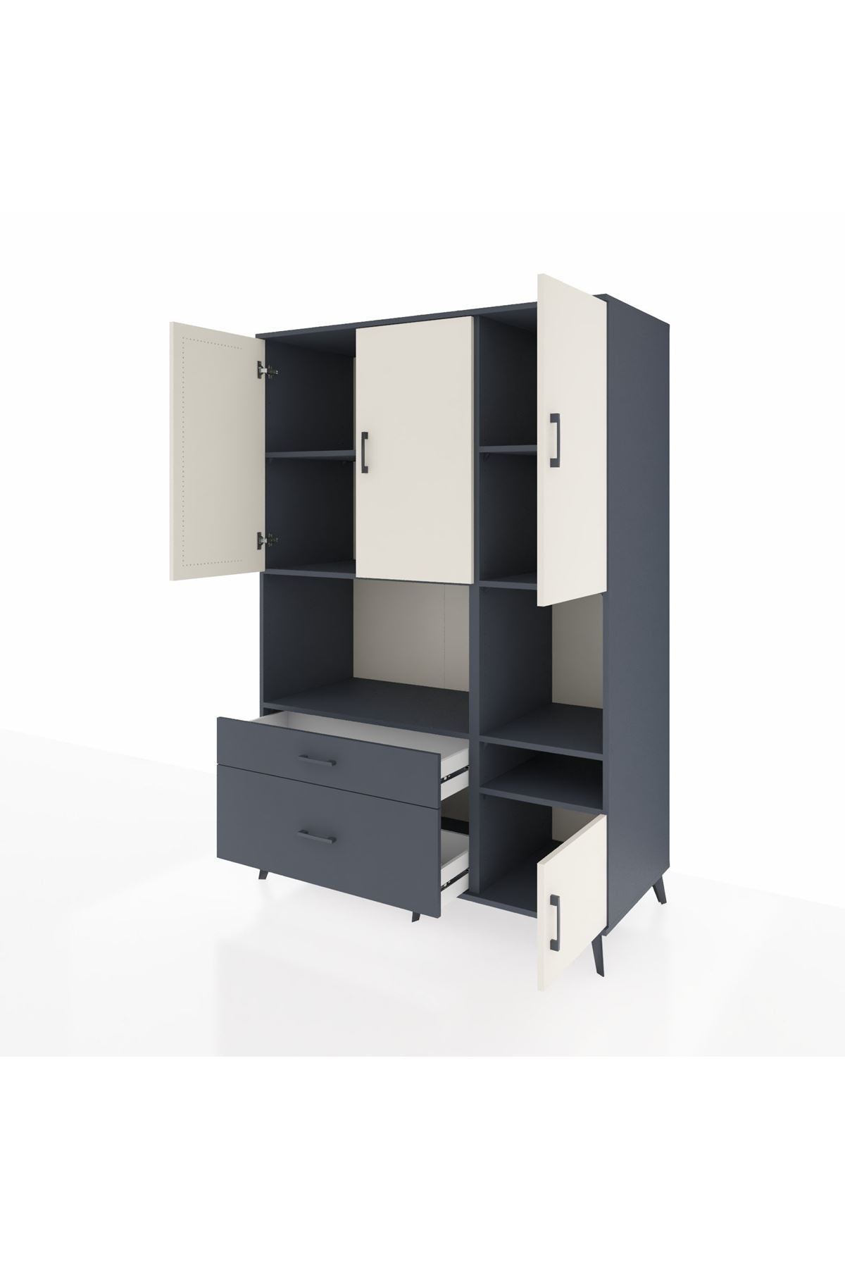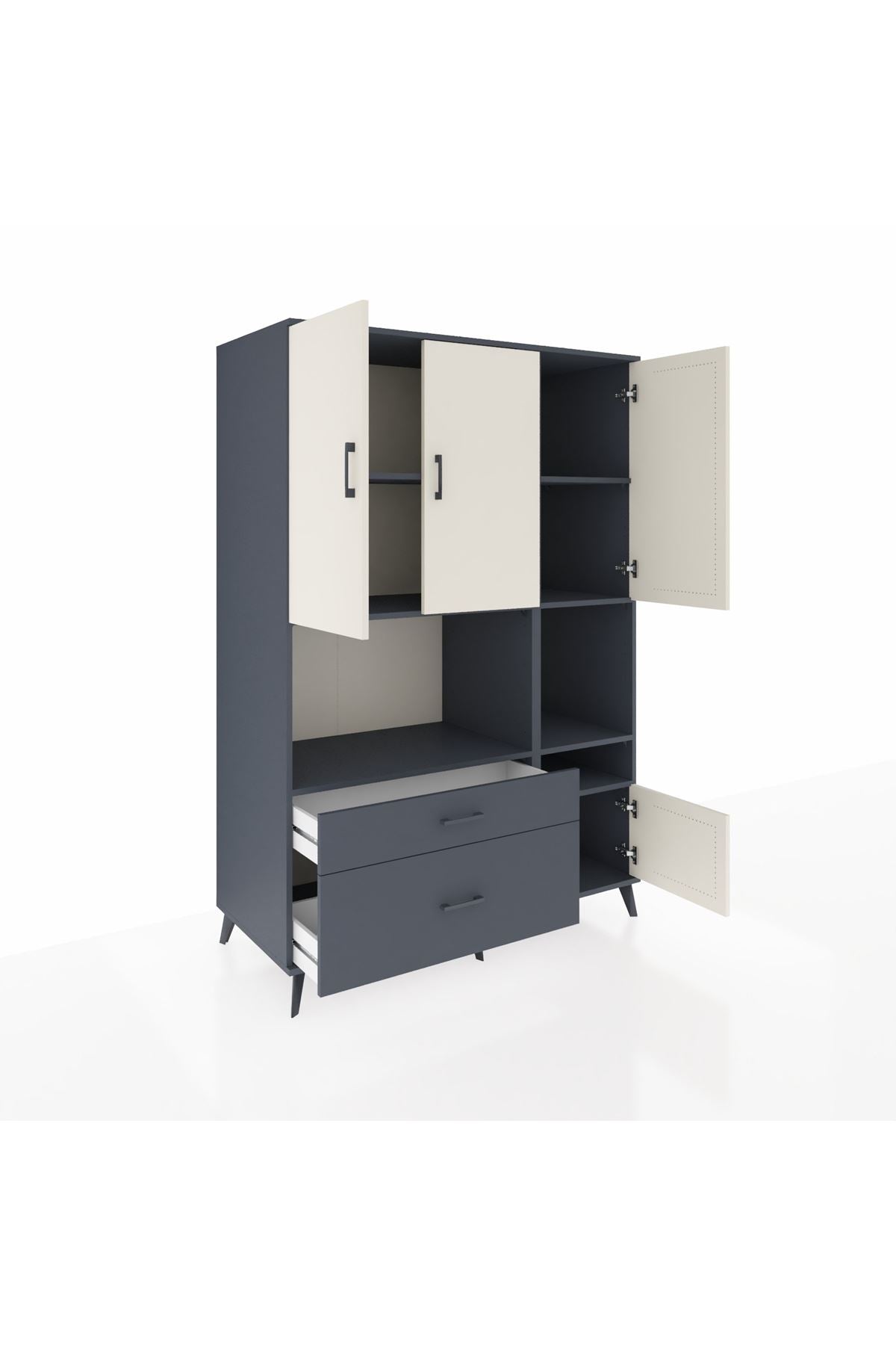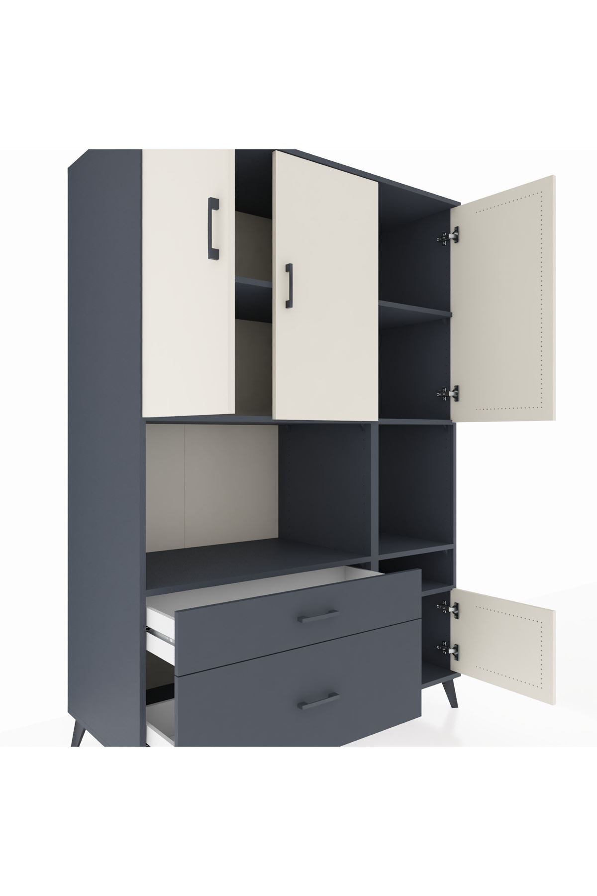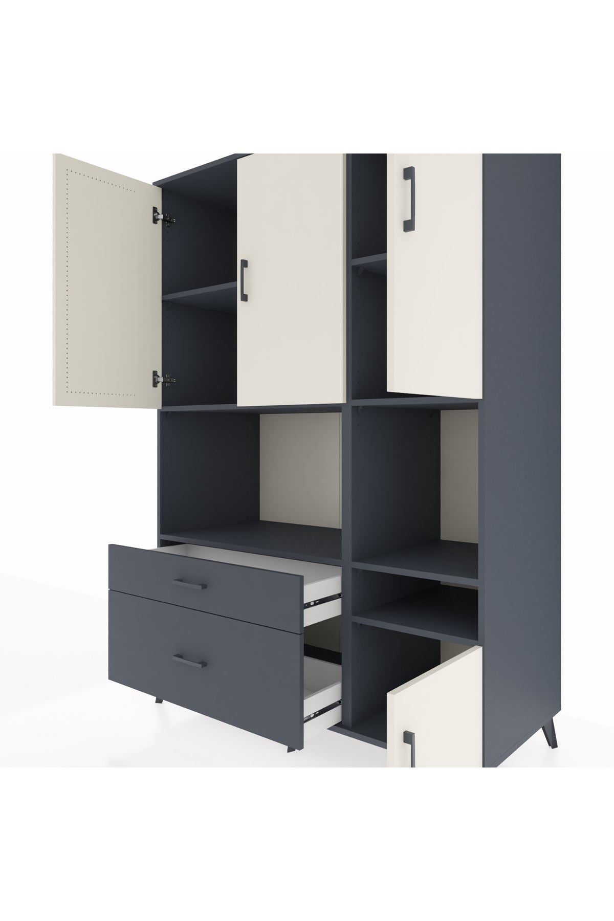 Kronos Dolap 7 Raflı 2 Çekmeceli 4 Kapaklı 132x59x195 Antrasit-Aytaşı/Antrasit
