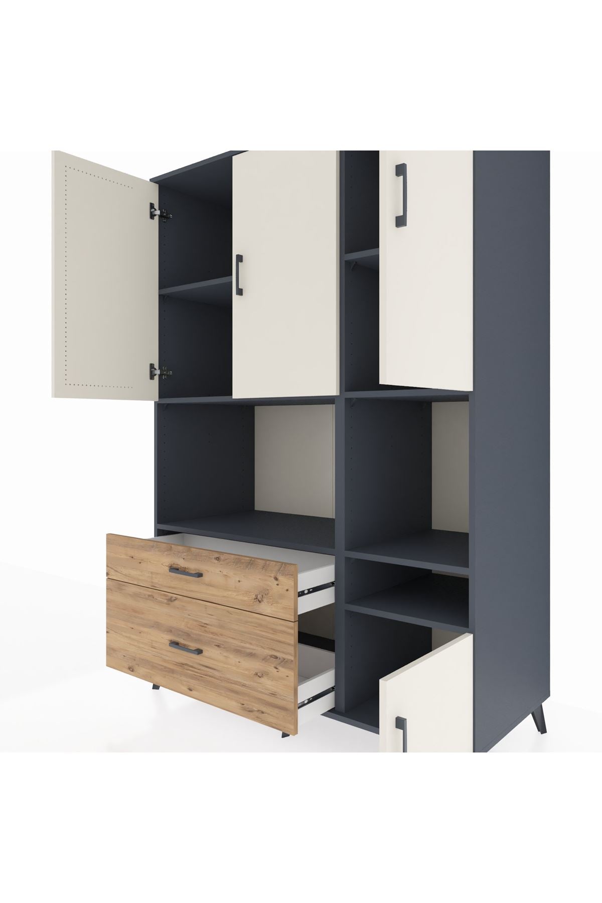 Kronos Dolap 7 Raflı 2 Çekmeceli 4 Kapaklı 132x59x195 Antrasit-Aytaşı/Çam