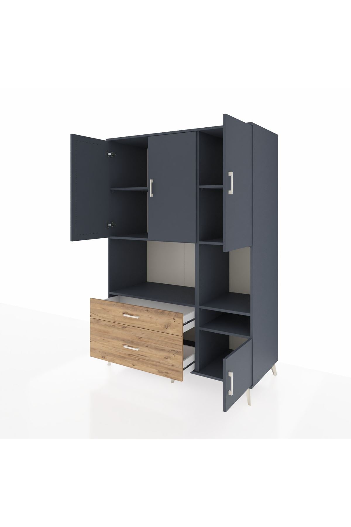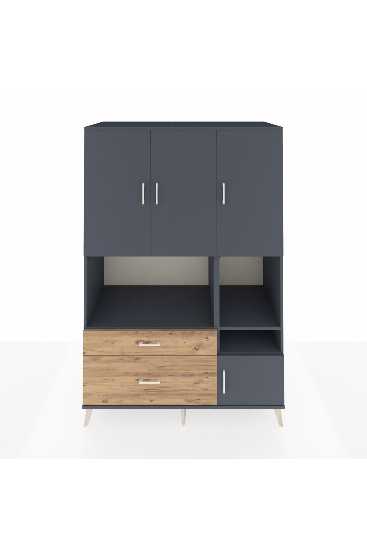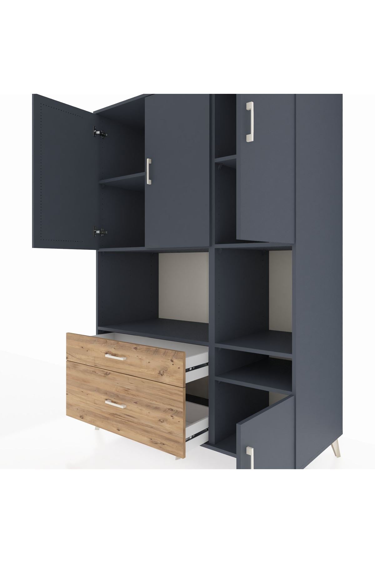 Kronos Dolap 7 Raflı 2 Çekmeceli 4 Kapaklı 132x59x195 Antrasit-Antrasit/Çam