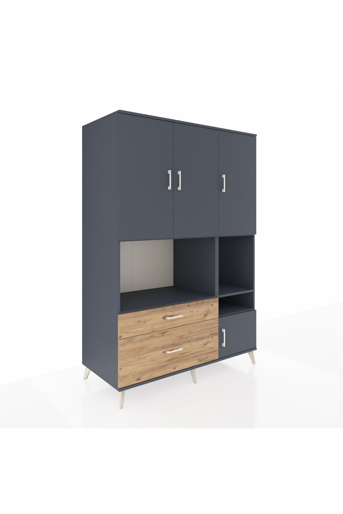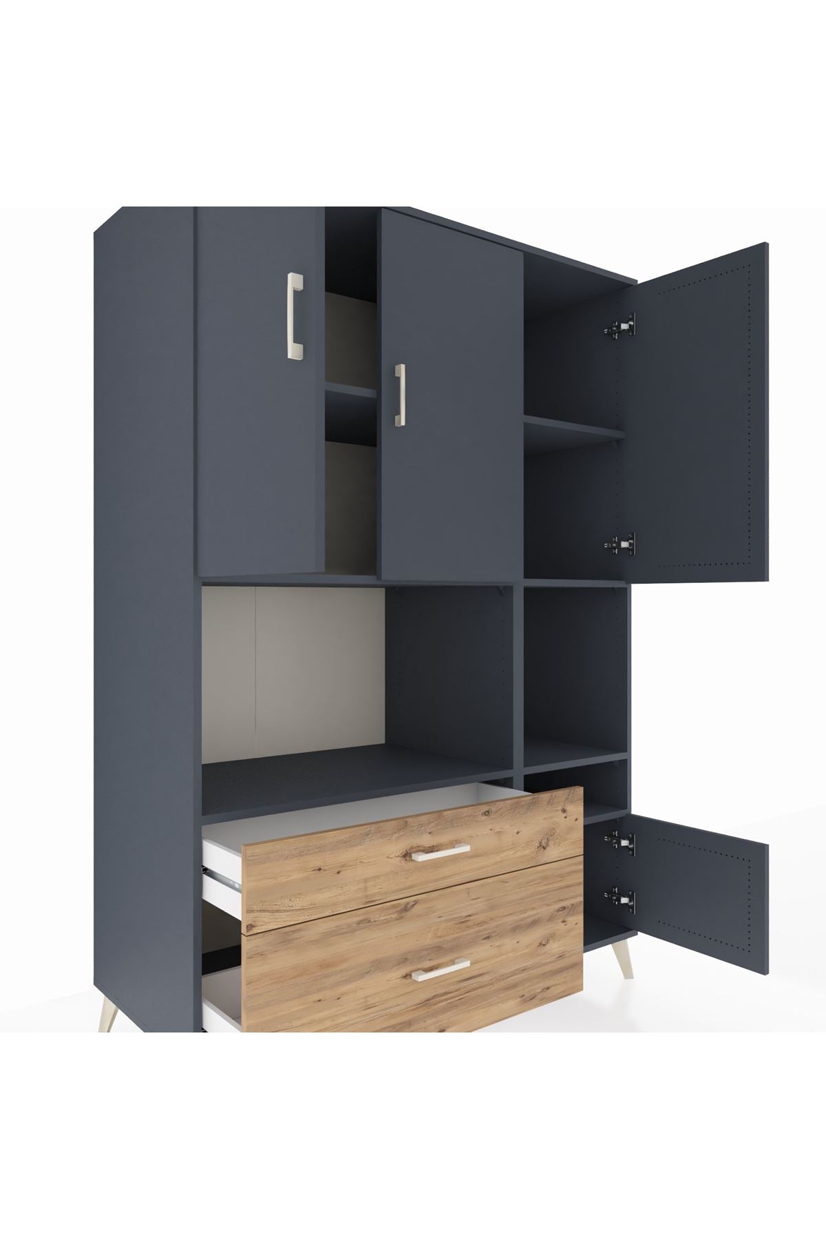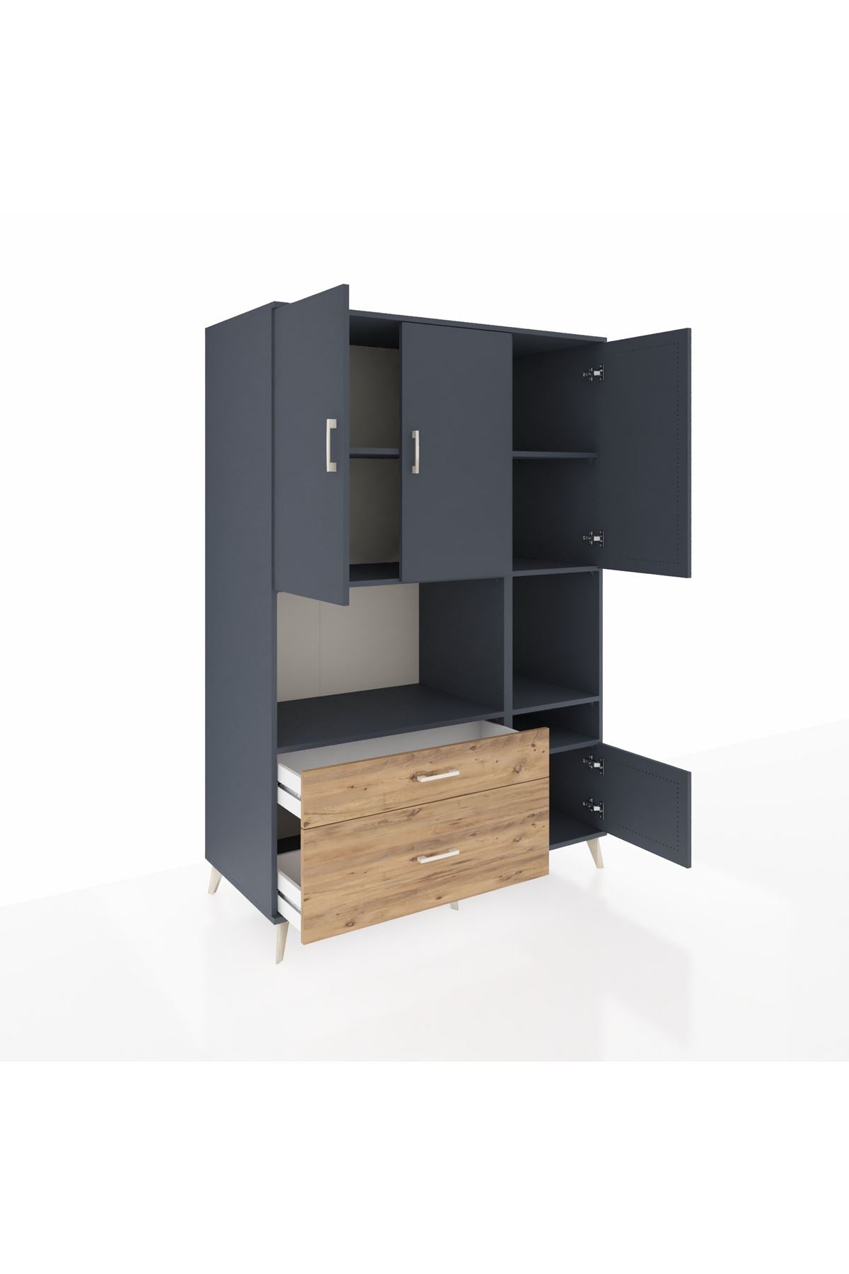Kronos Dolap 7 Raflı 2 Çekmeceli 4 Kapaklı 132x59x195 Antrasit-Antrasit/Çam