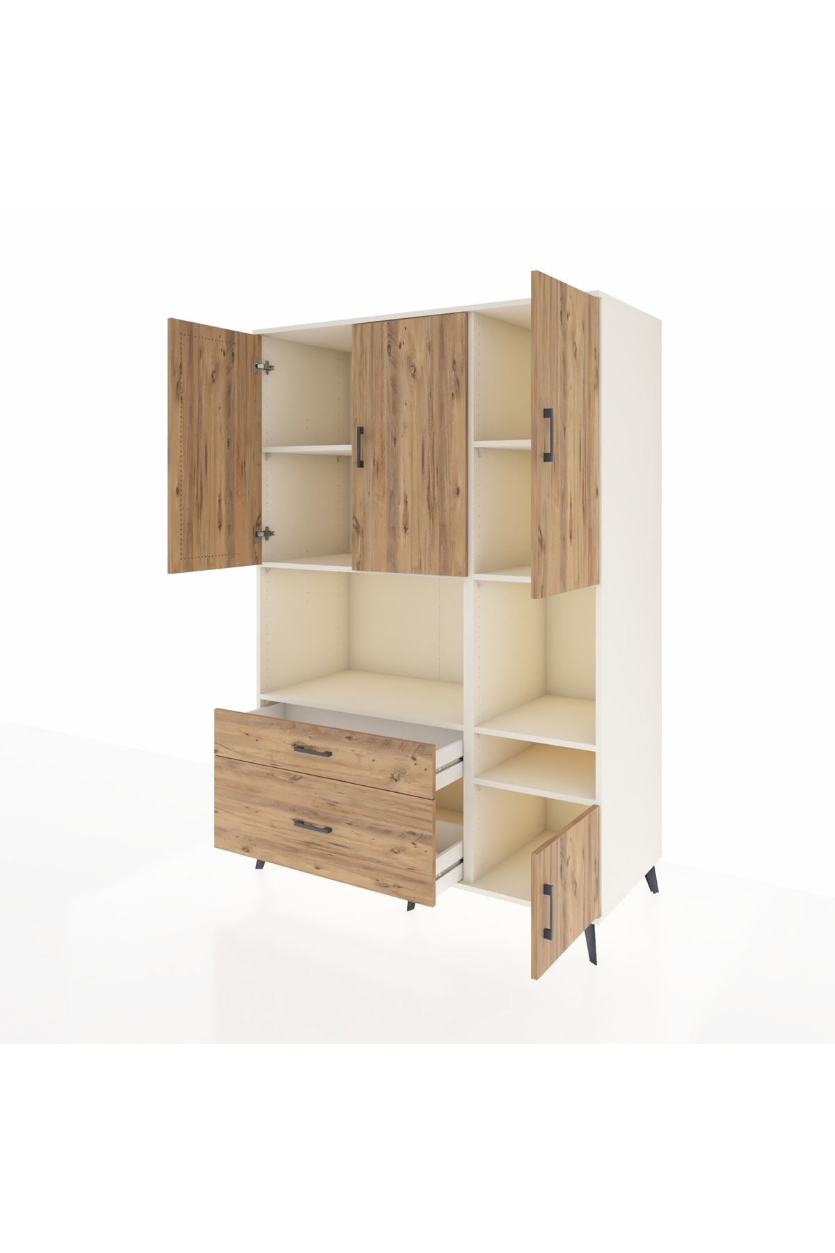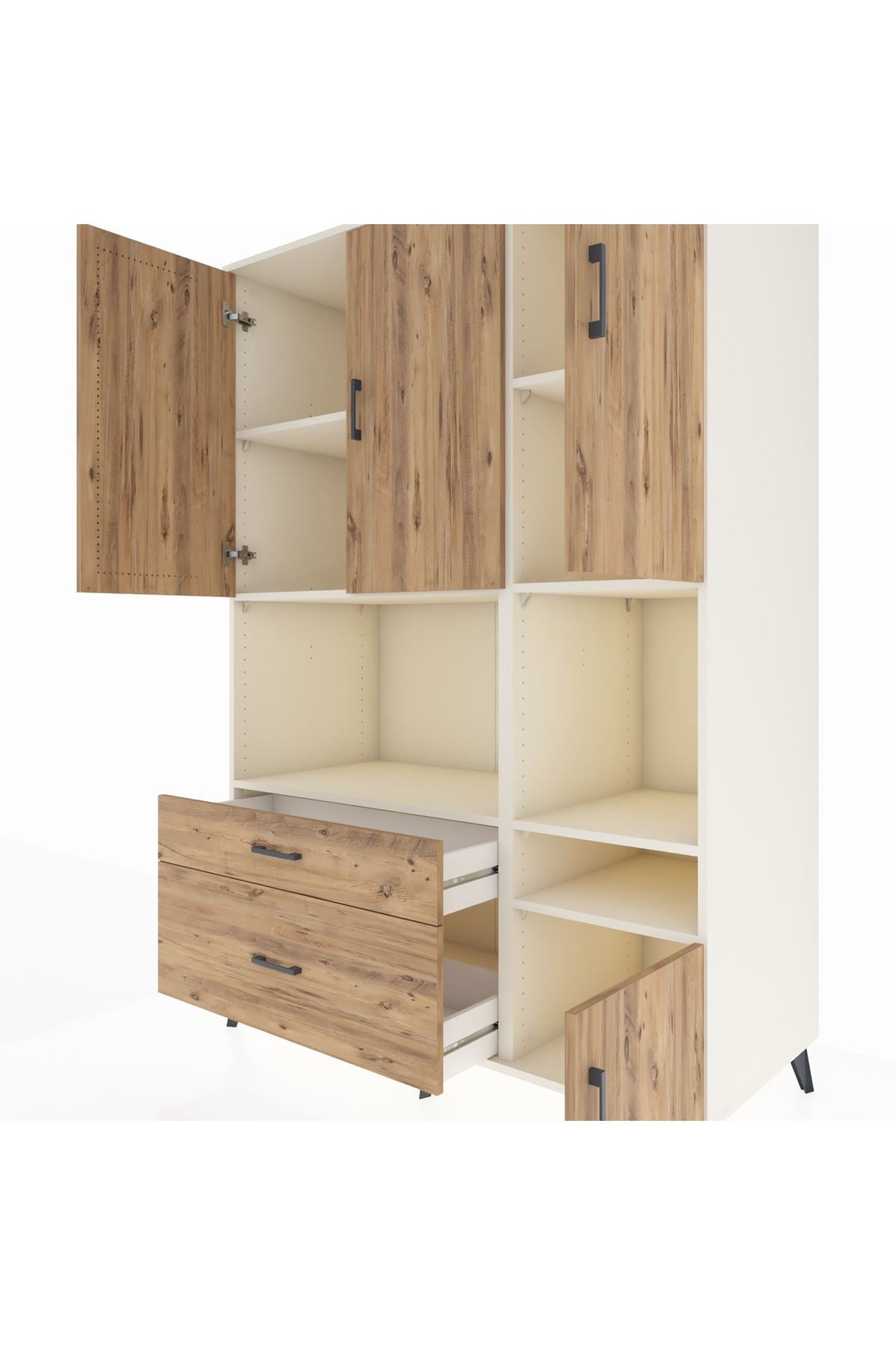Kronos Dolap 7 Raflı 2 Çekmeceli 4 Kapaklı 132x59x195 Aytaşı-Çam/Çam