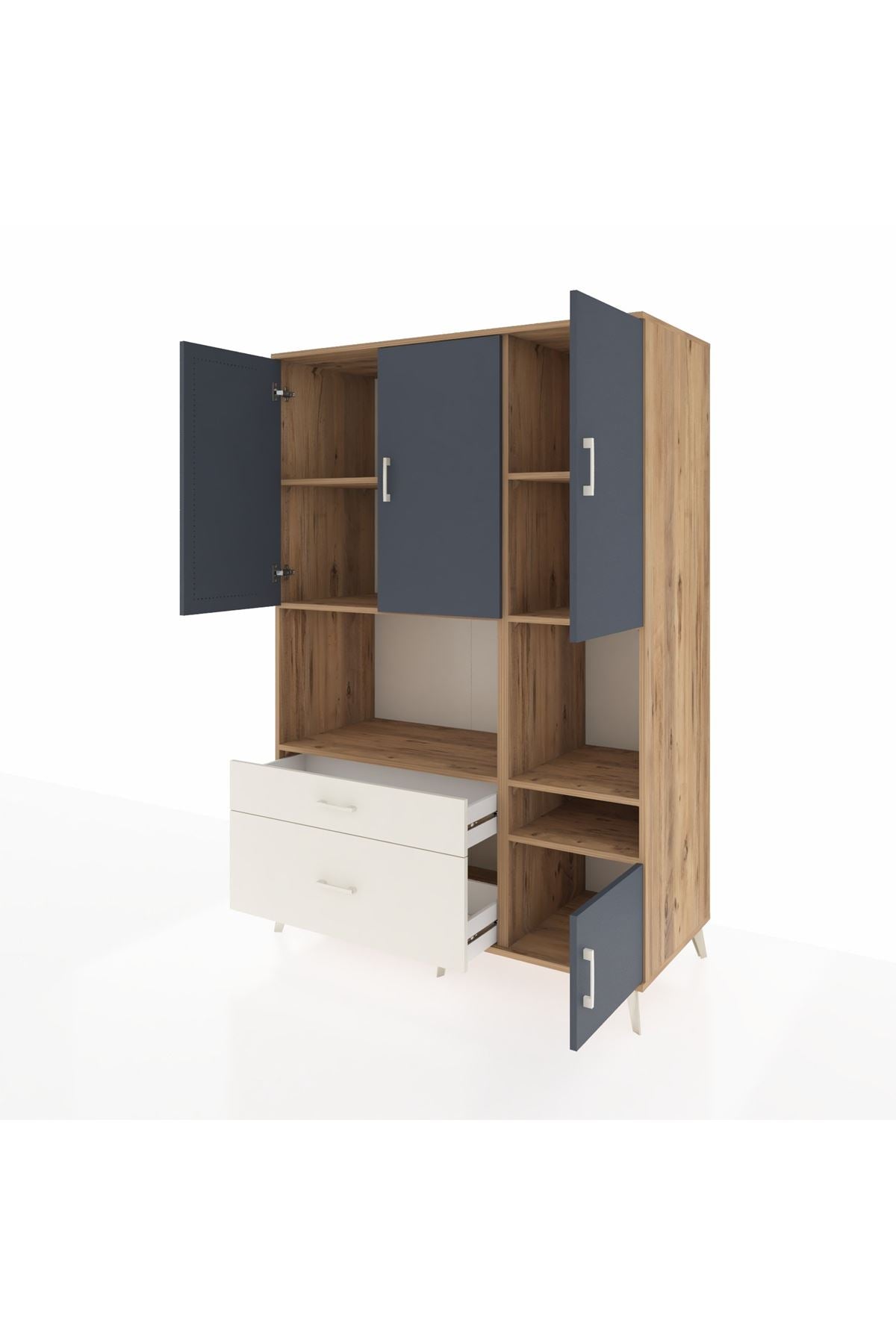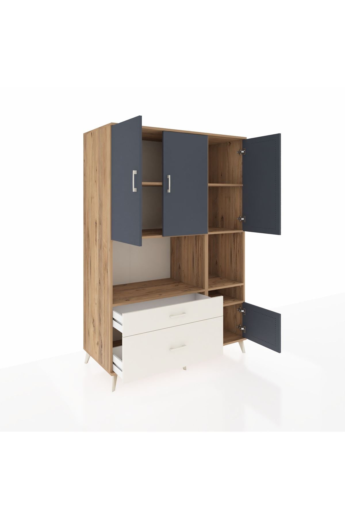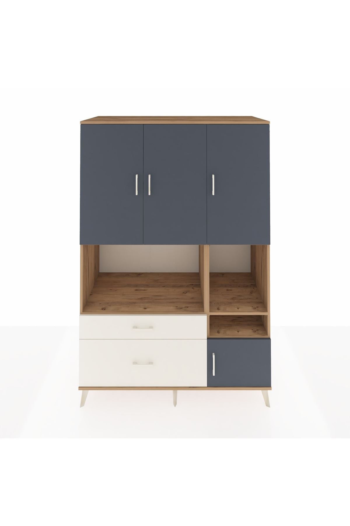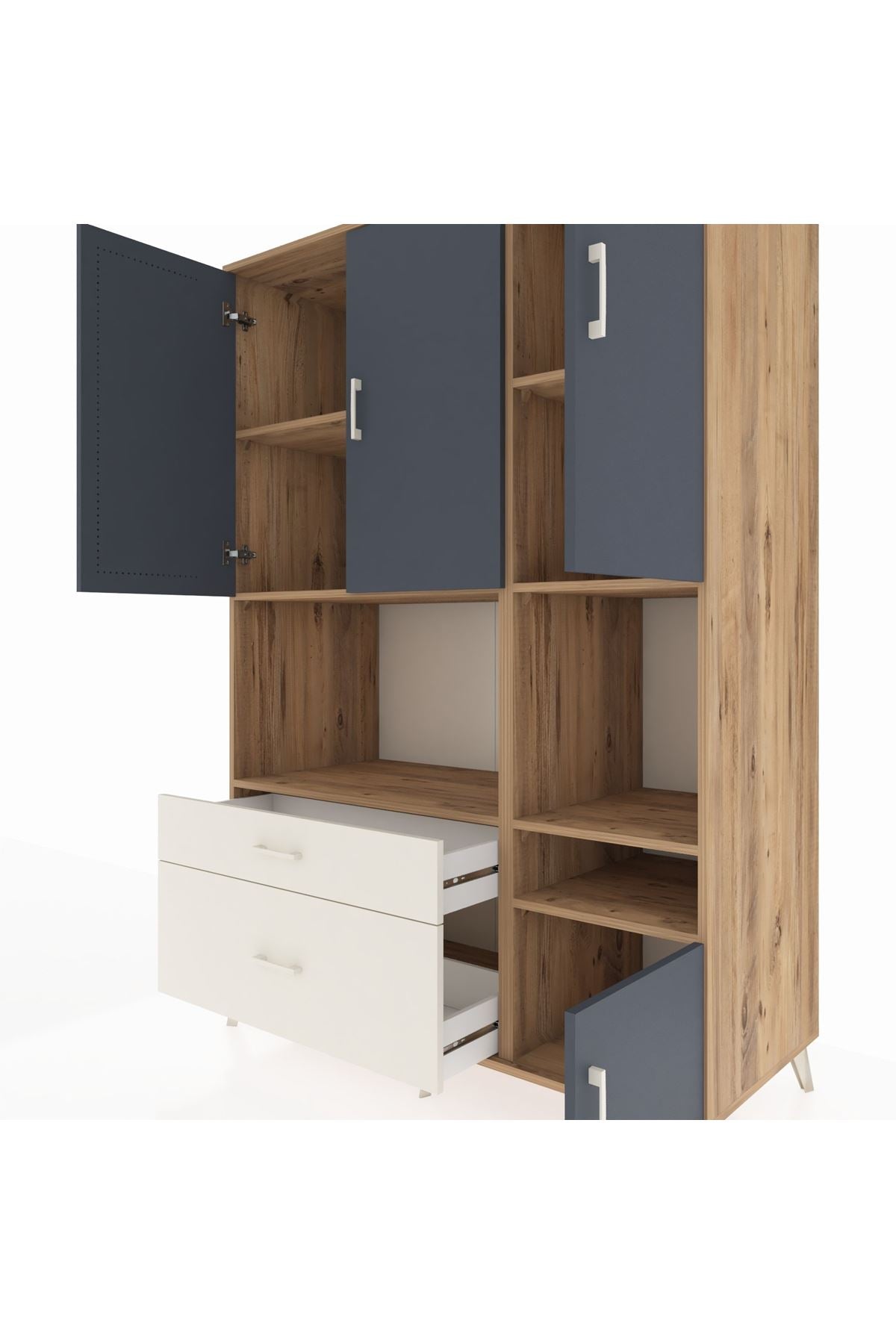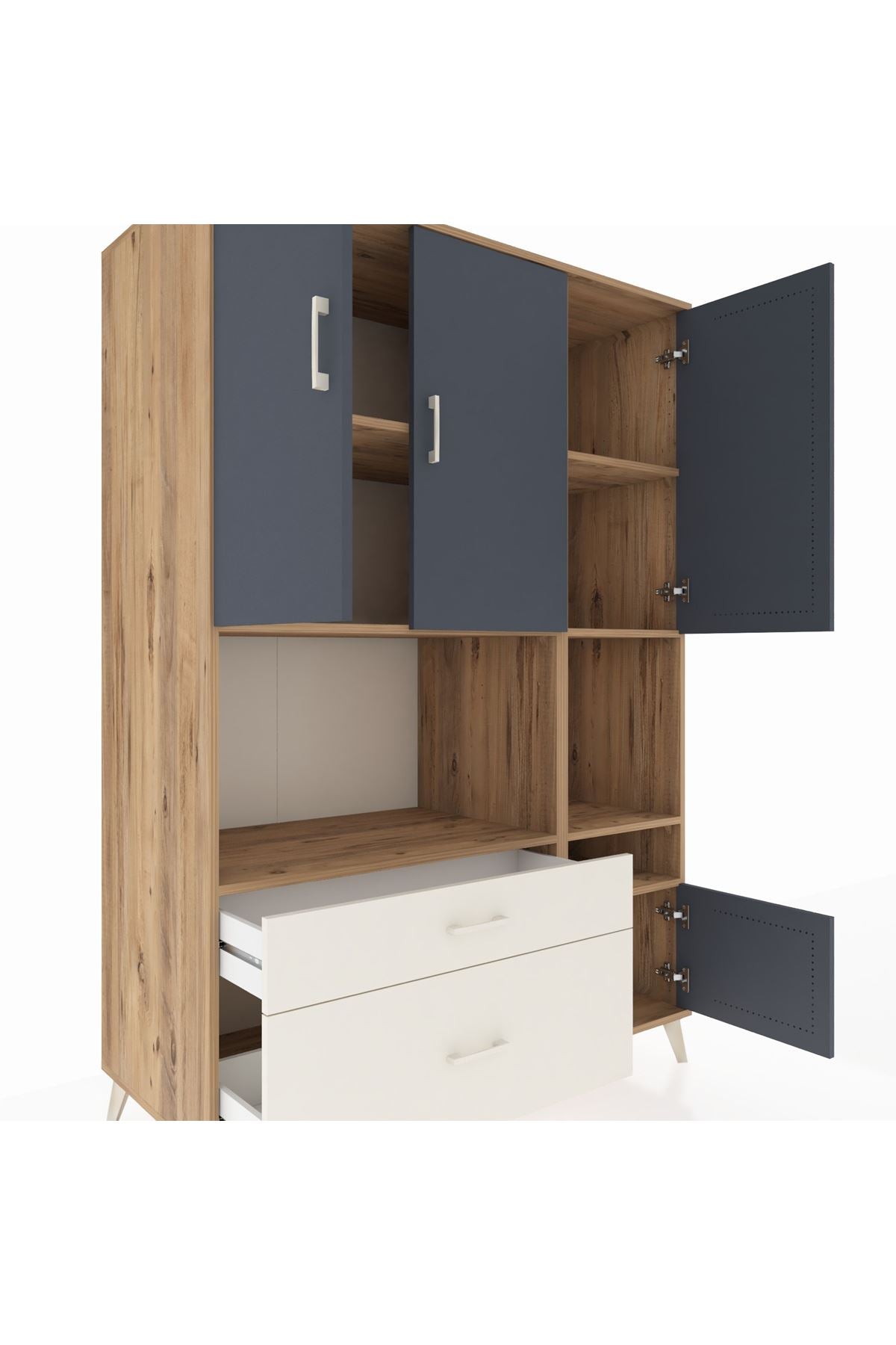 Kronos Dolap 7 Raflı 2 Çekmeceli 4 Kapaklı 132x59x195 Çam-Antrasit/Aytaşı