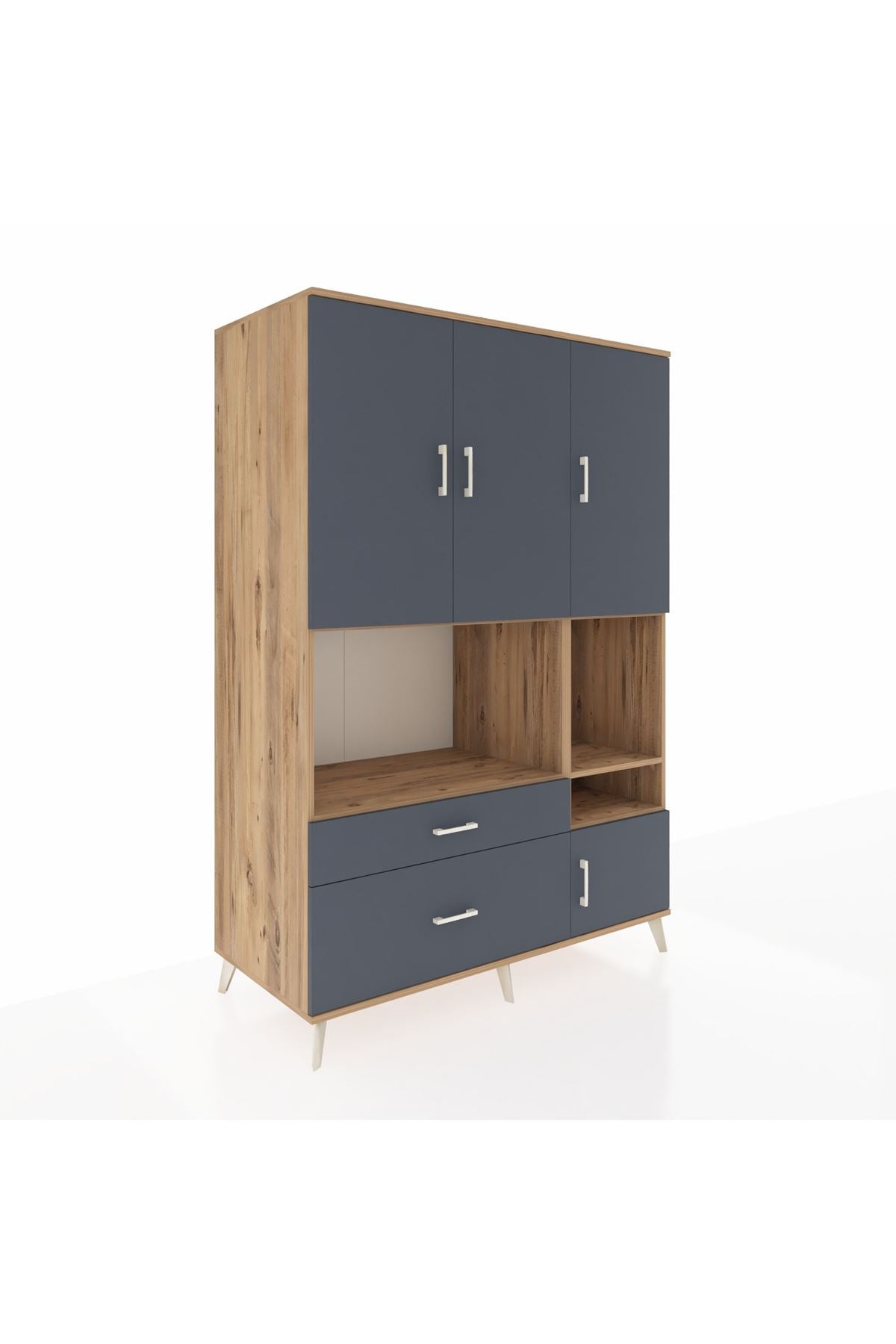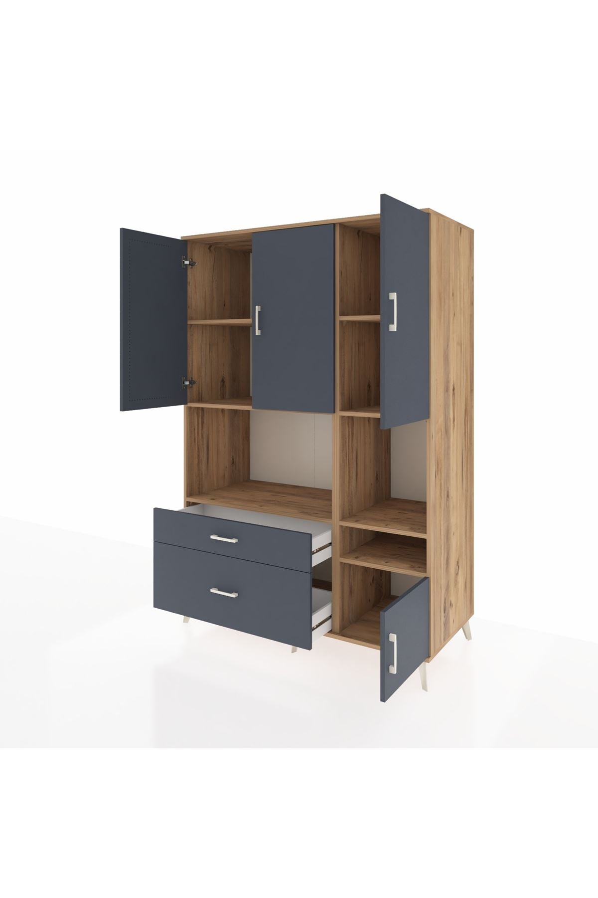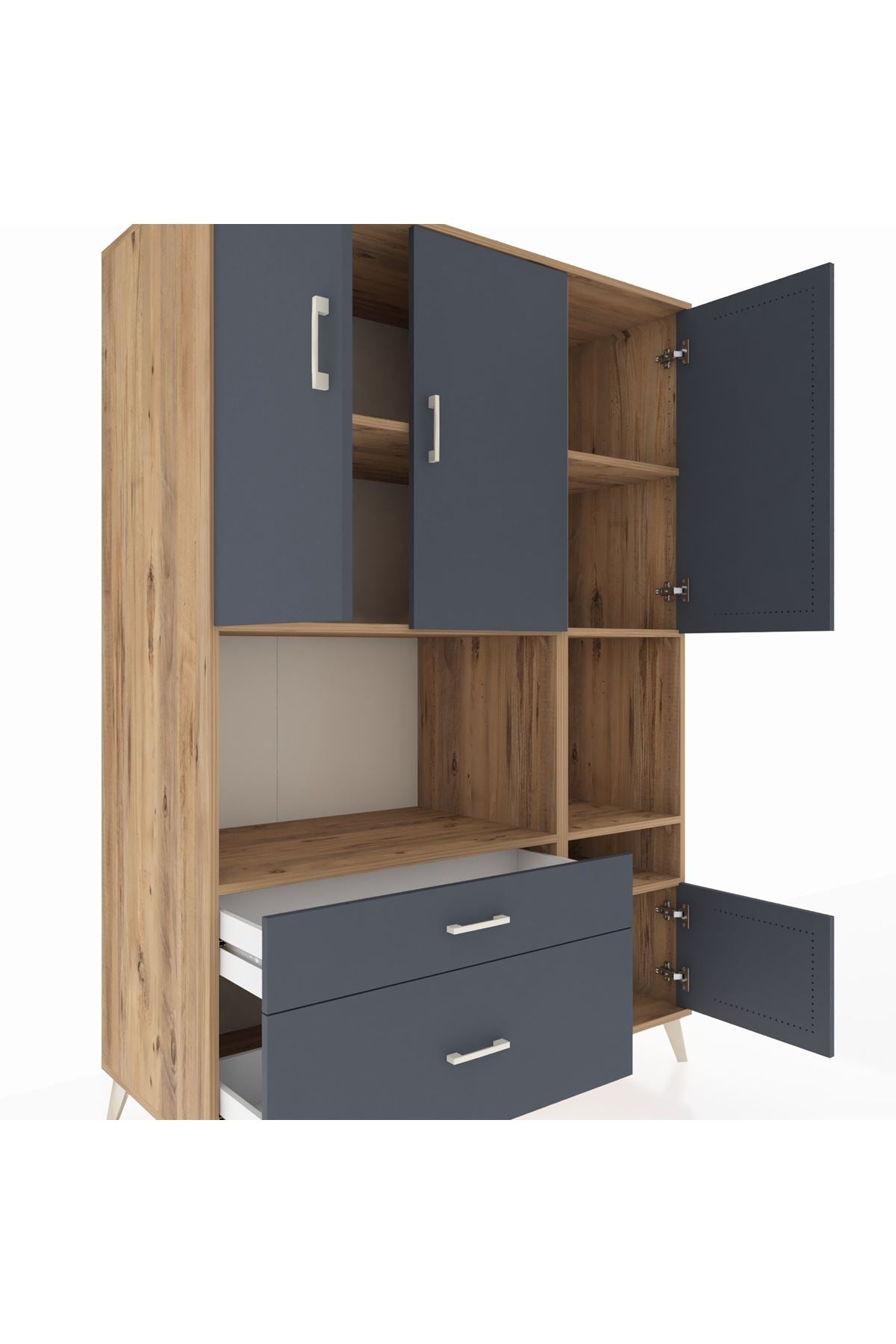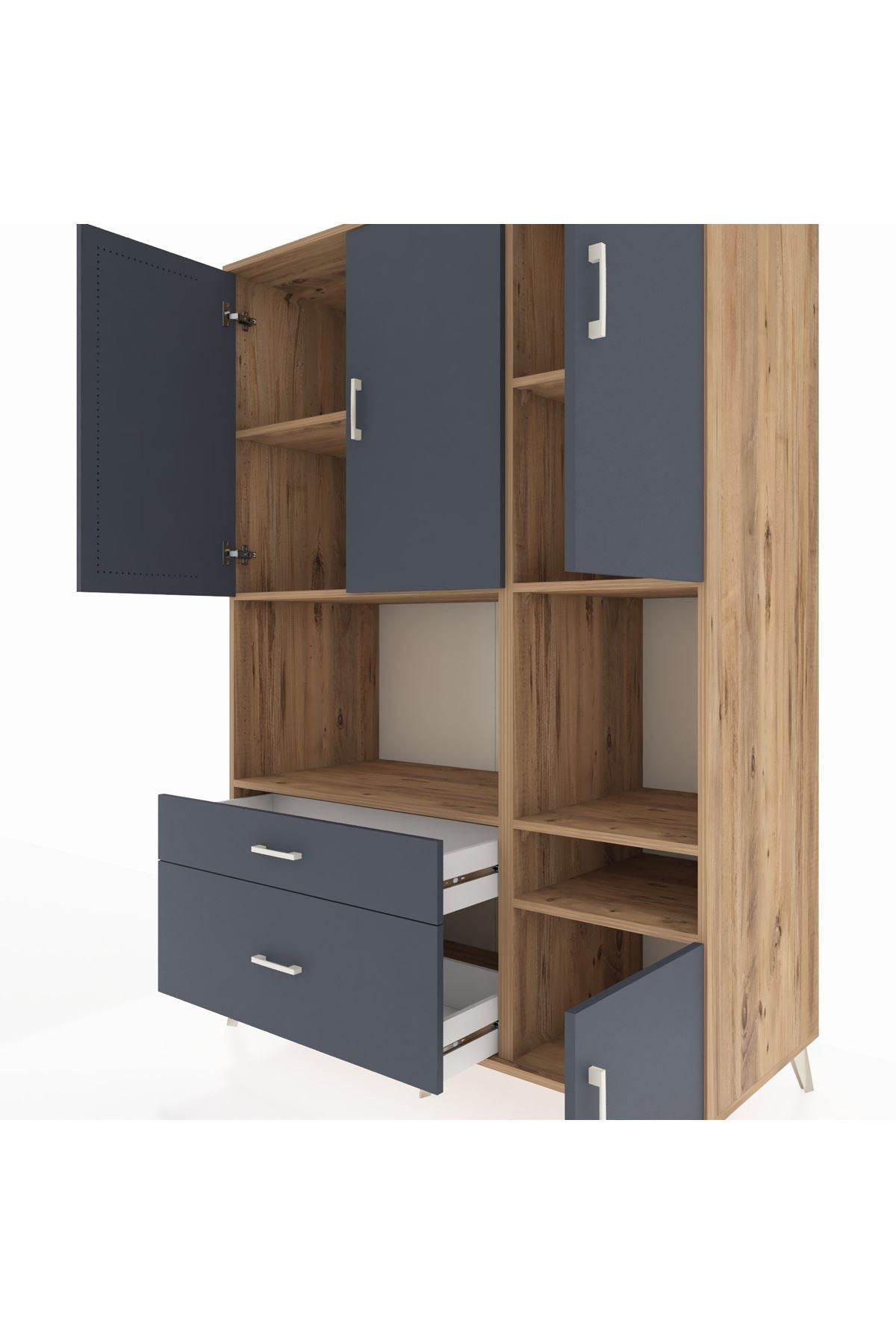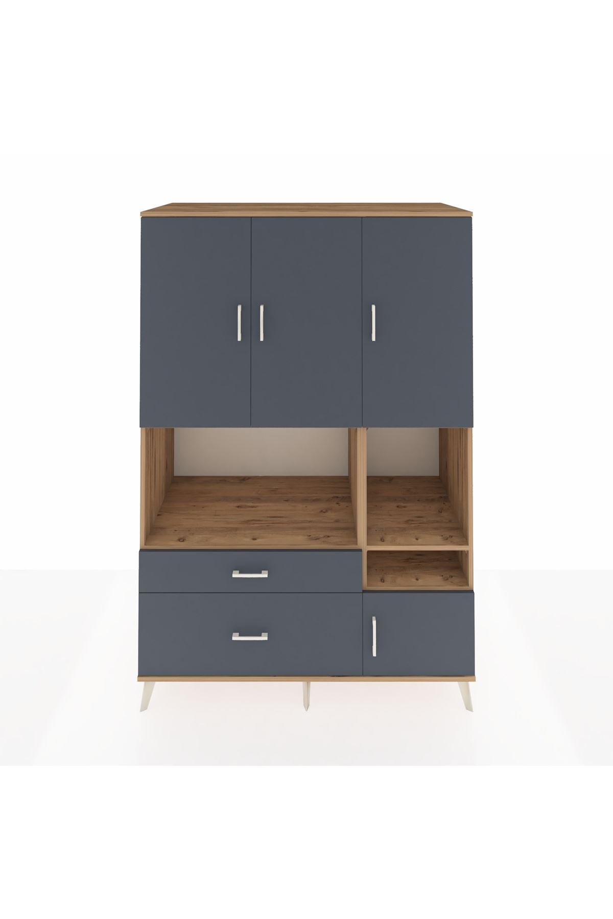 Kronos Dolap 7 Raflı 2 Çekmeceli 4 Kapaklı 132x59x195 Çam-Antrasit/Antrasit