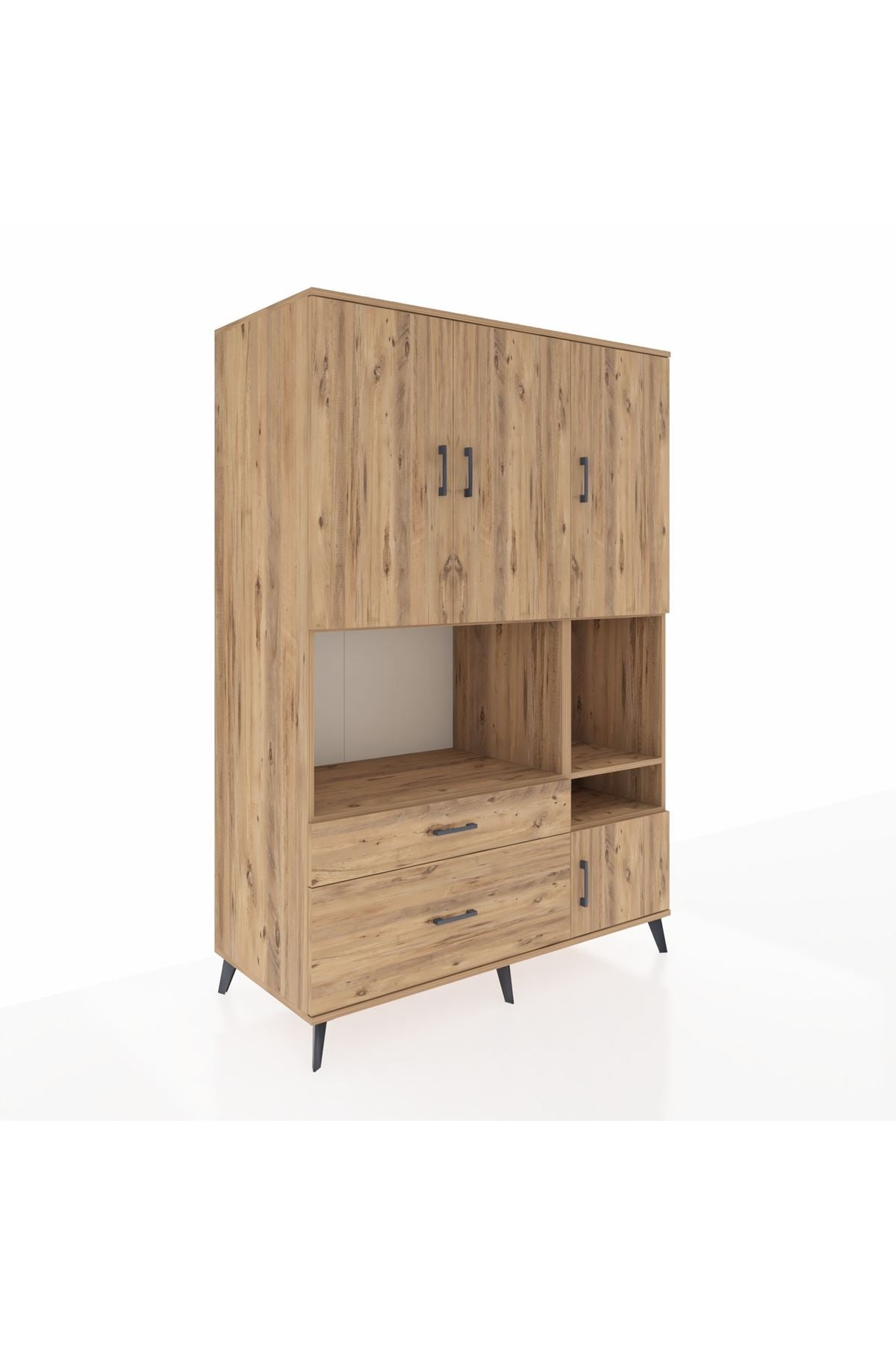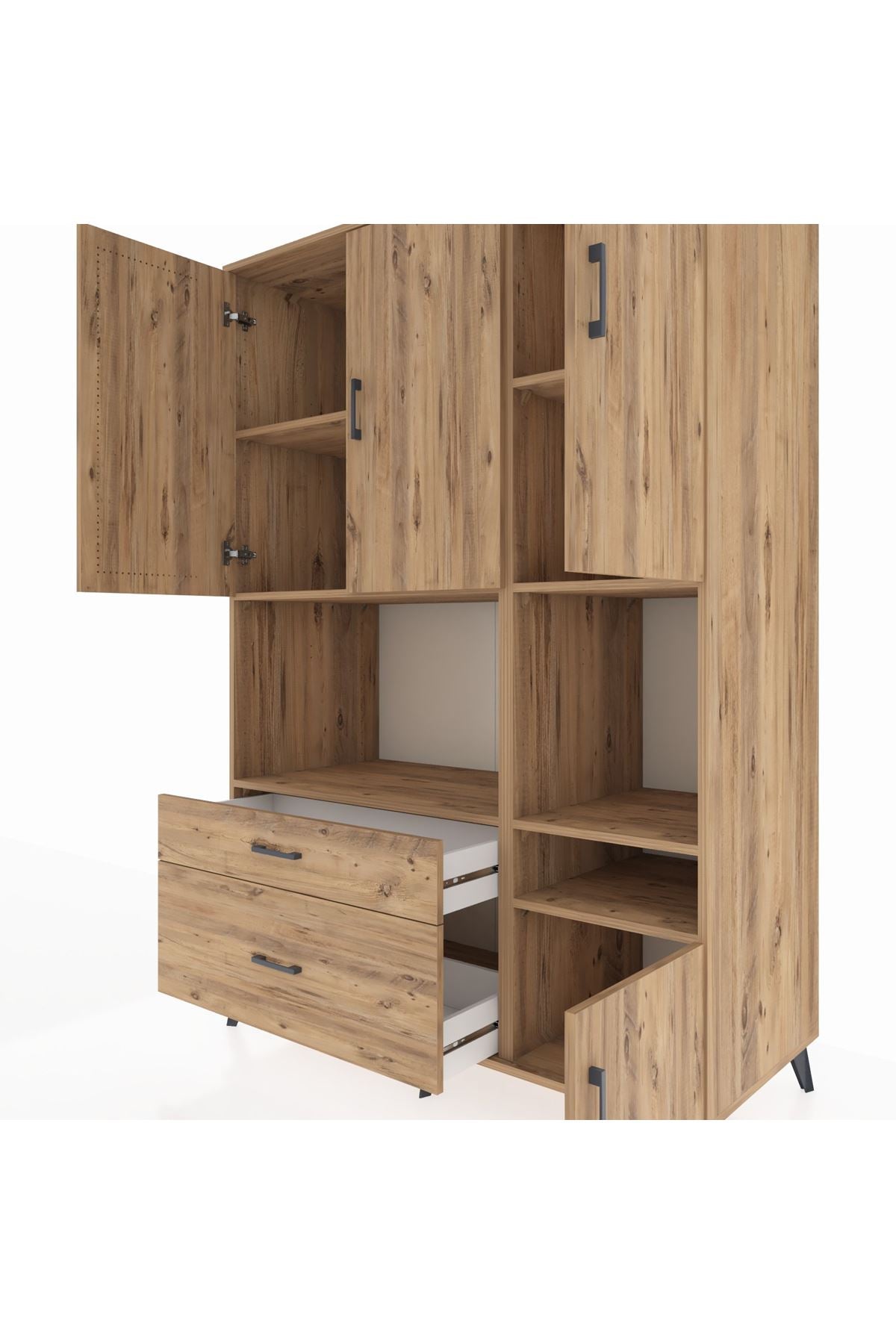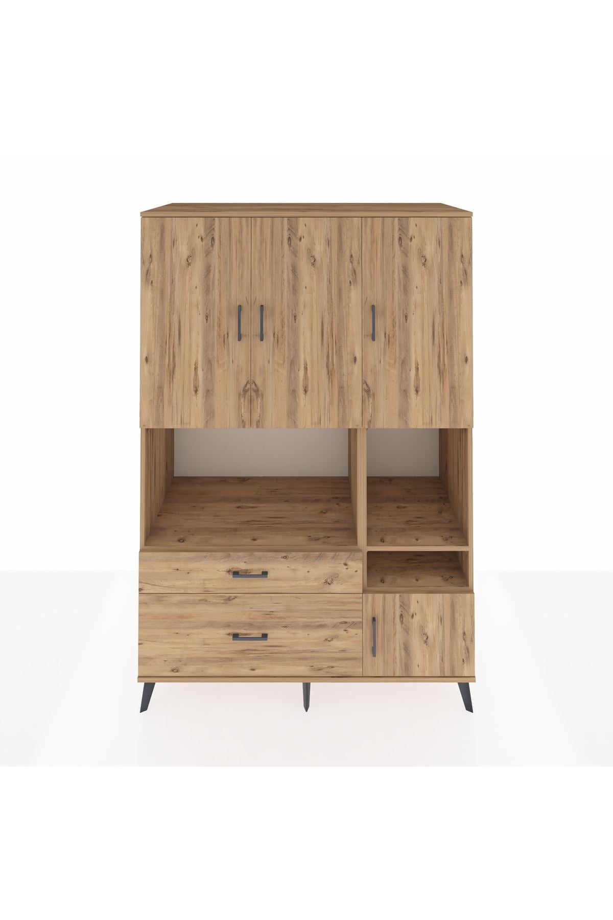 Kronos Dolap 7 Raflı 2 Çekmeceli 4 Kapaklı 132x59x195 Çam-Çam/Çam