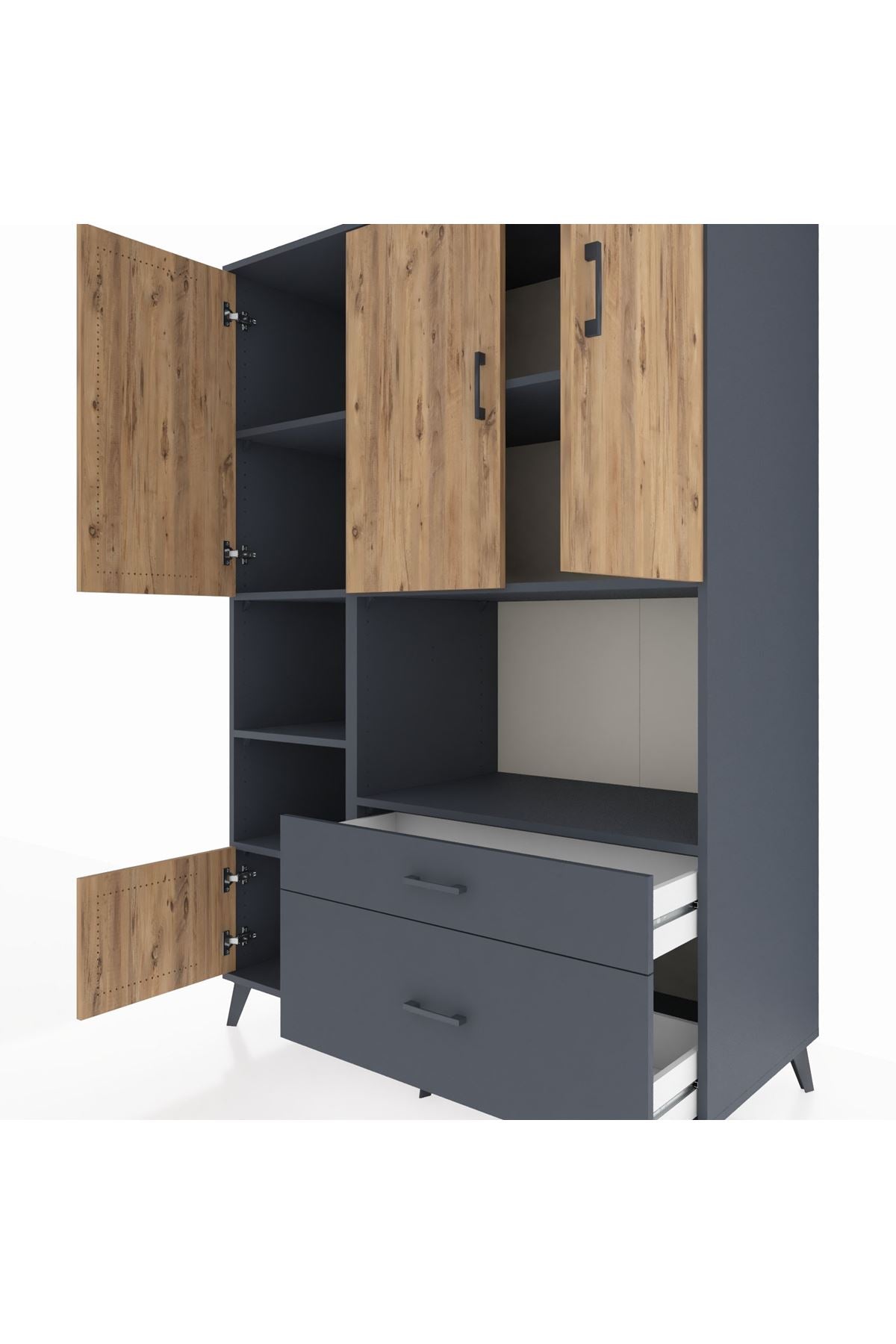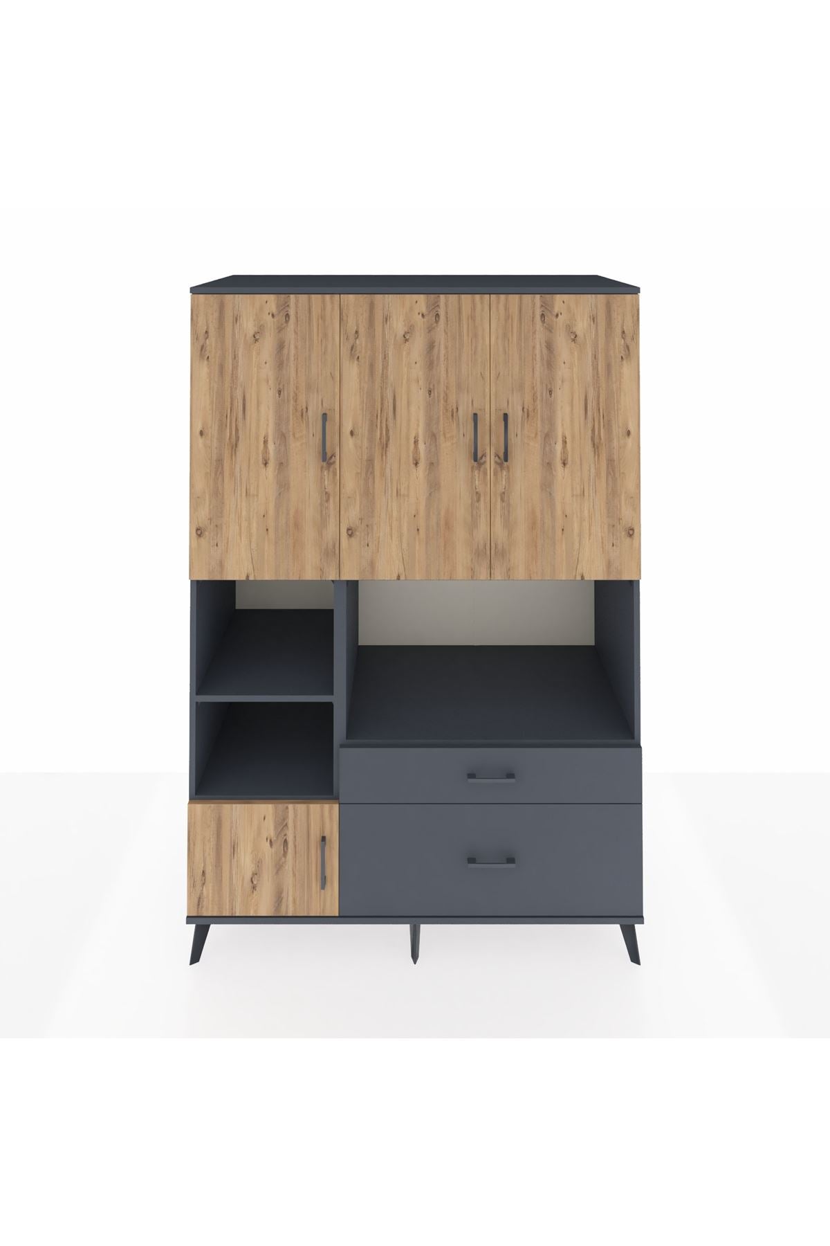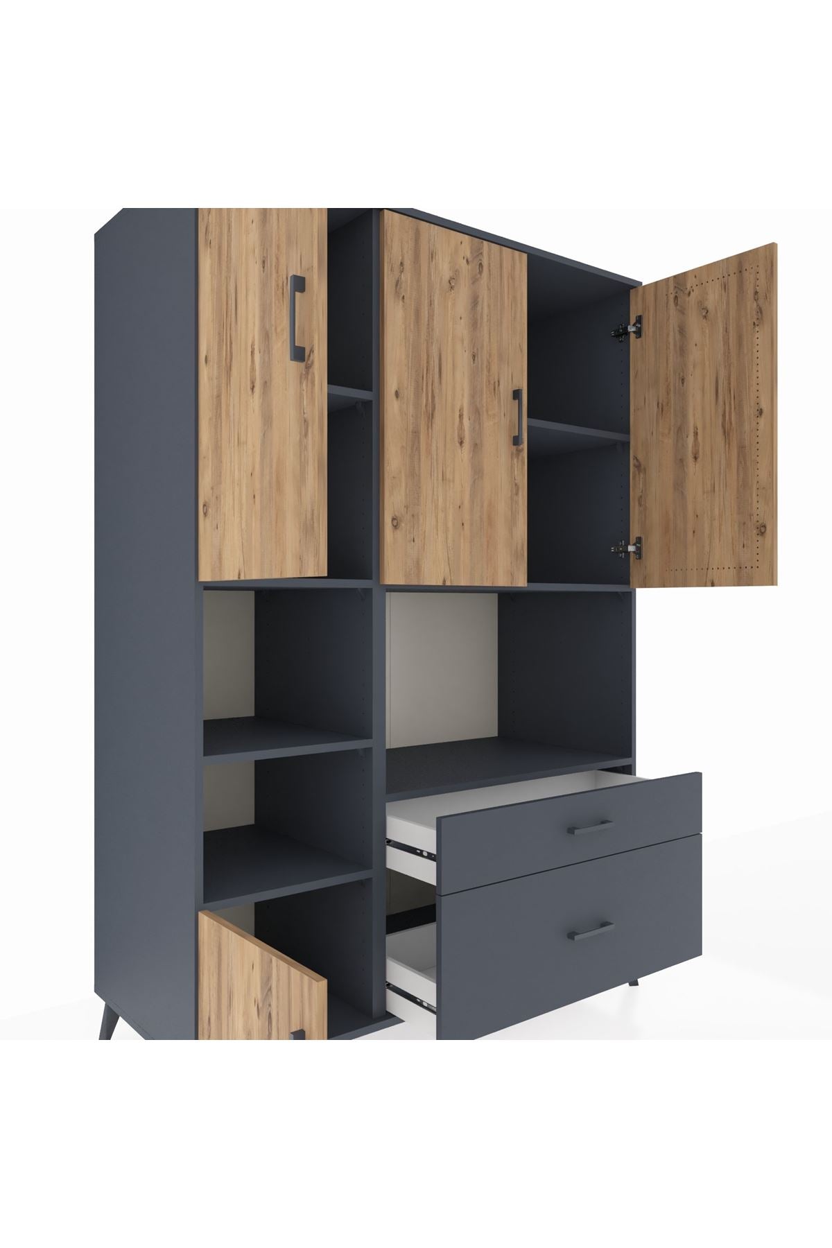 Kronos Dolap 7 Raflı 2 Çekmeceli 5 Kapaklı 132x59x195 Antrasit-Çam/Antrasit
