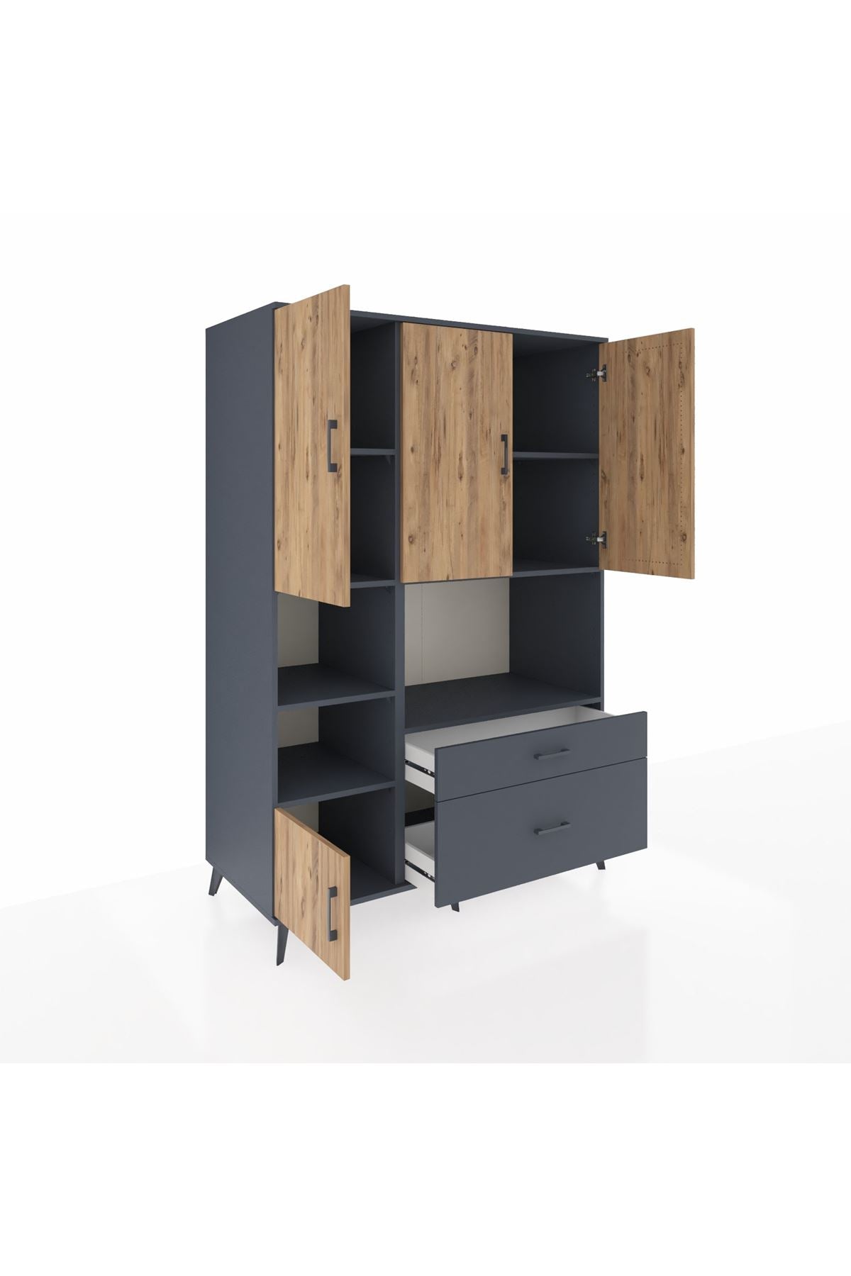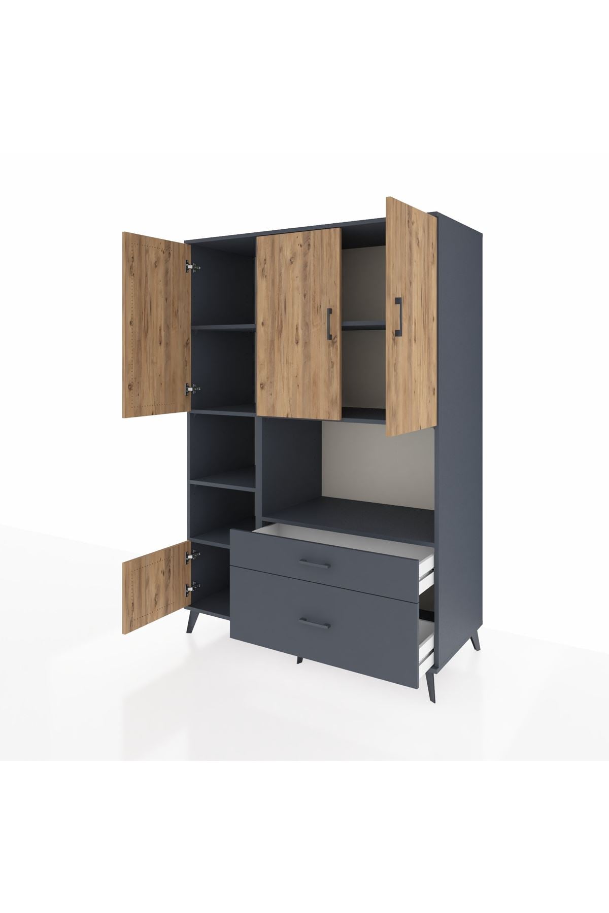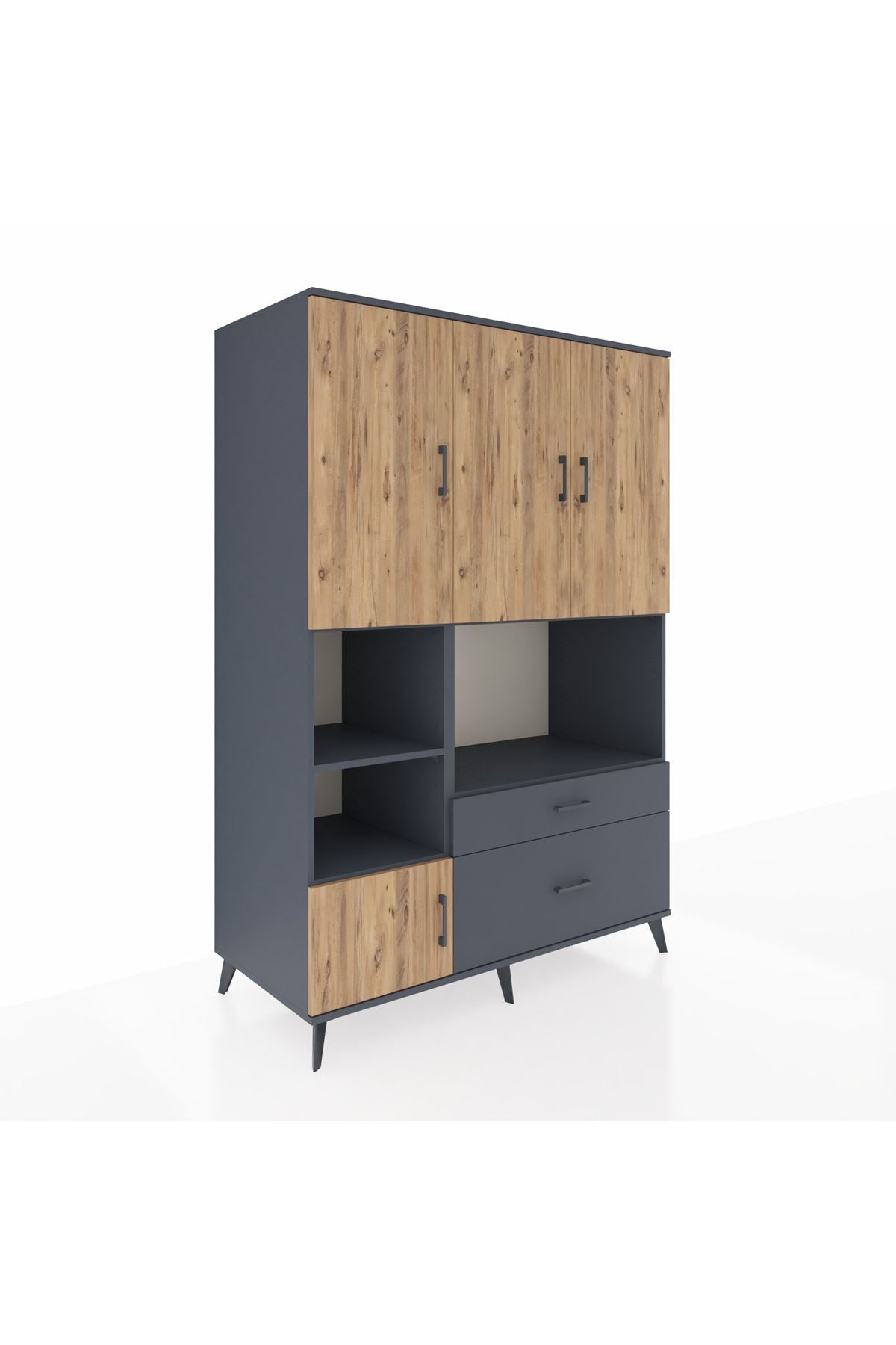 Kronos Dolap 7 Raflı 2 Çekmeceli 5 Kapaklı 132x59x195 Antrasit-Çam/Antrasit