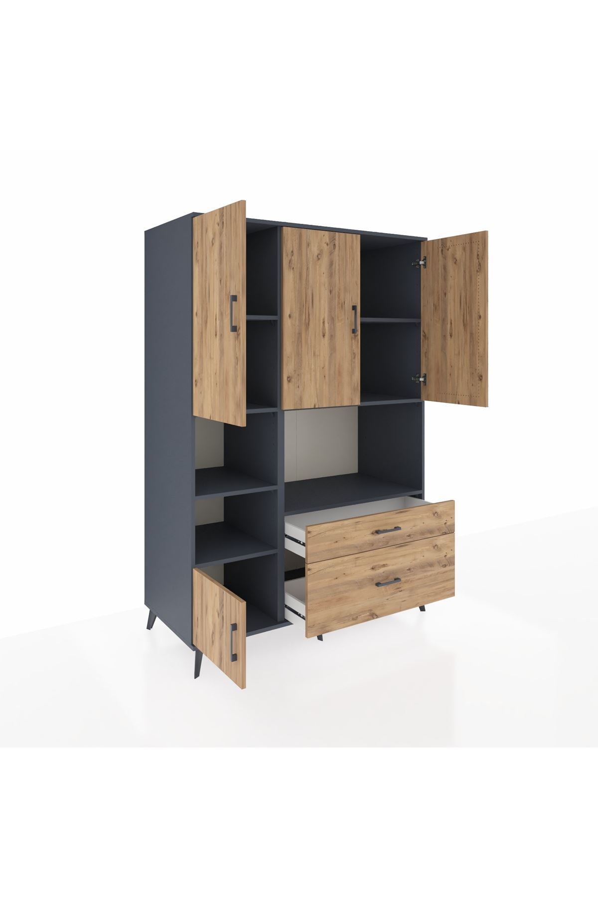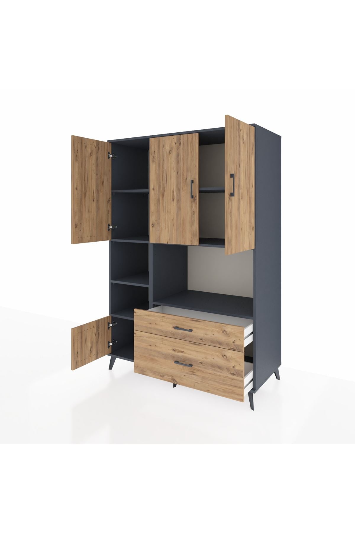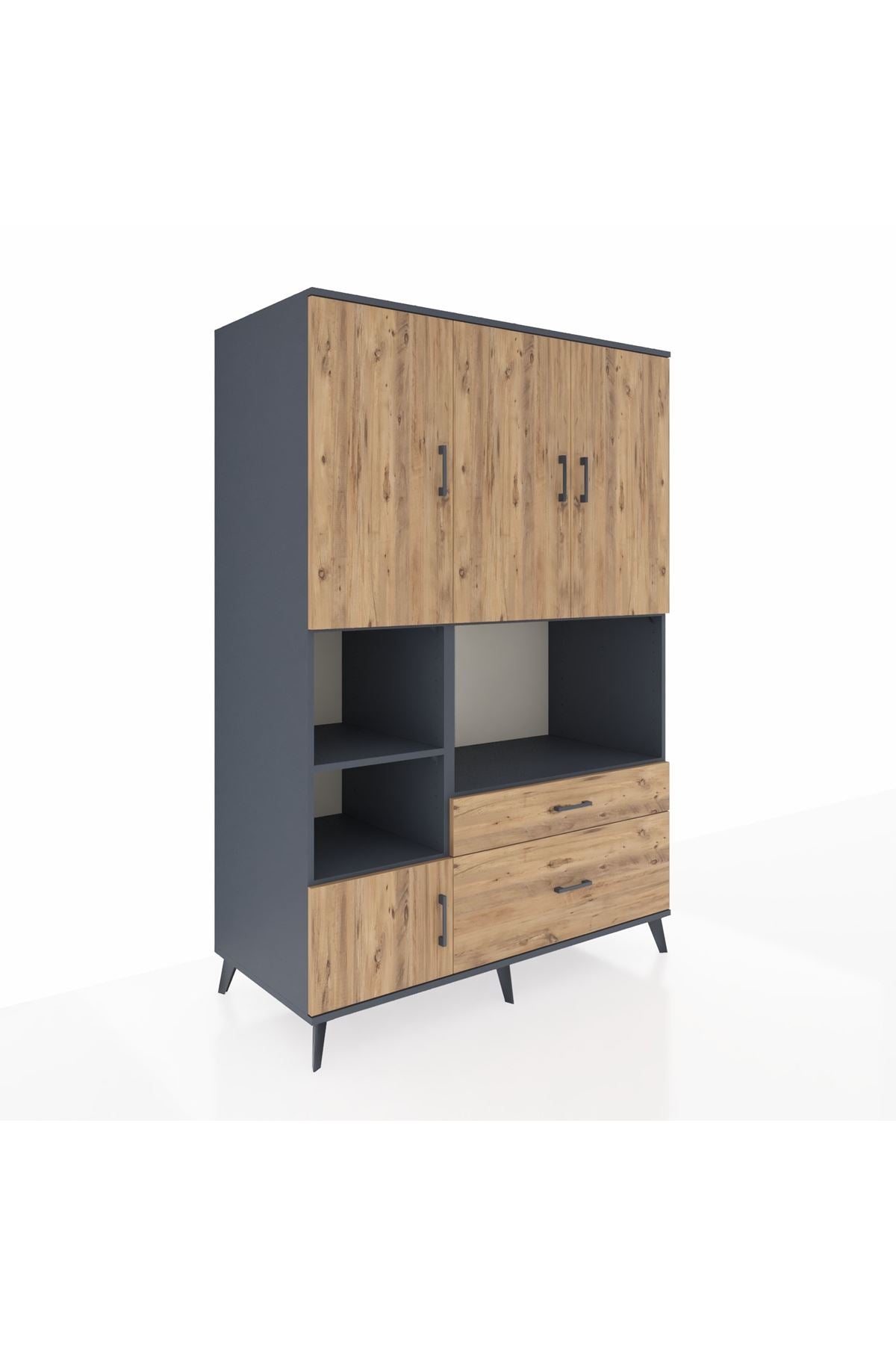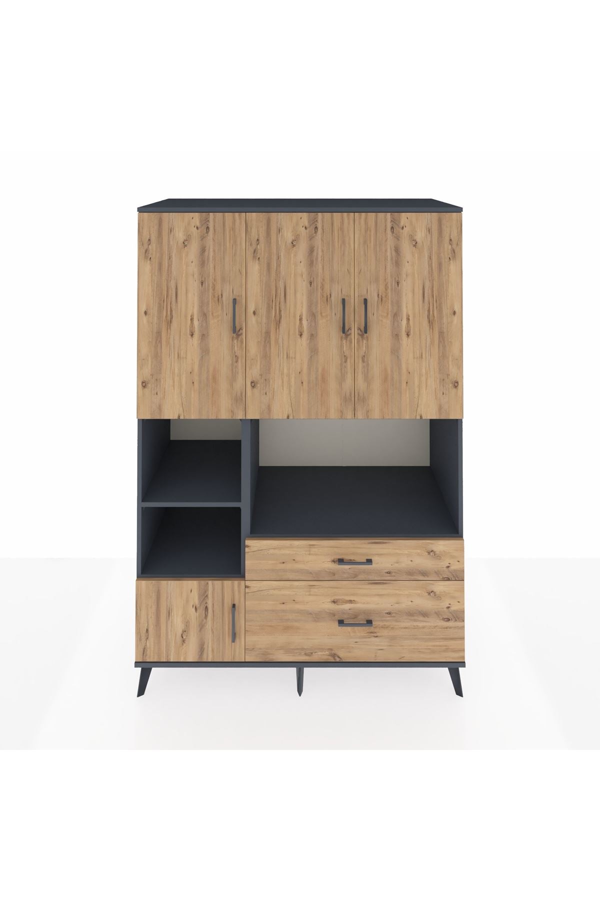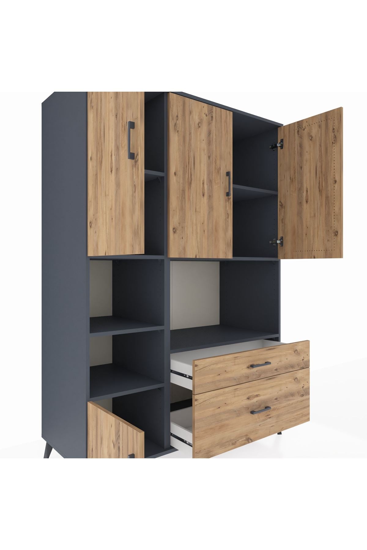 Kronos Dolap 7 Raflı 2 Çekmeceli 5 Kapaklı 132x59x195 Antrasit-Çam/Çam