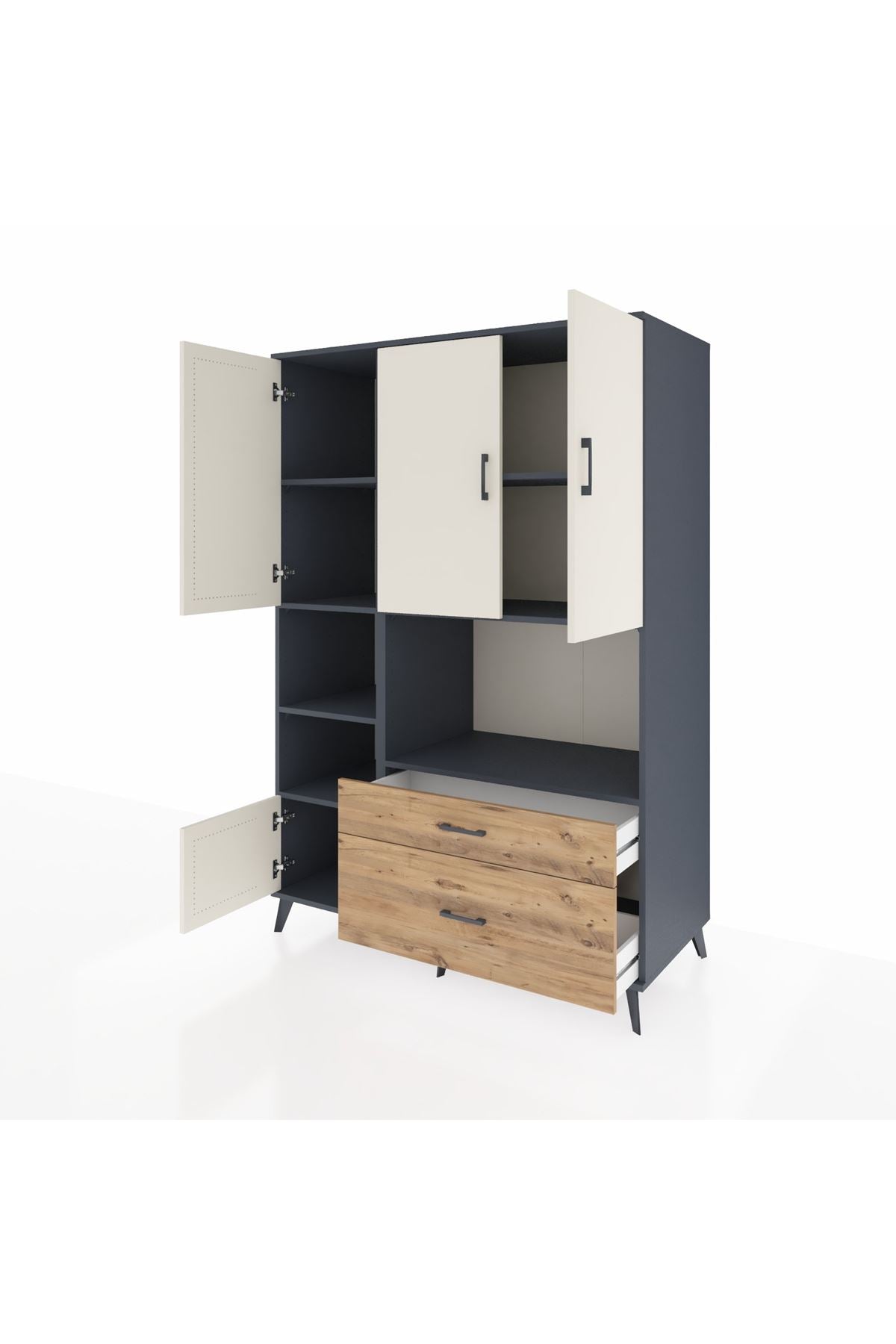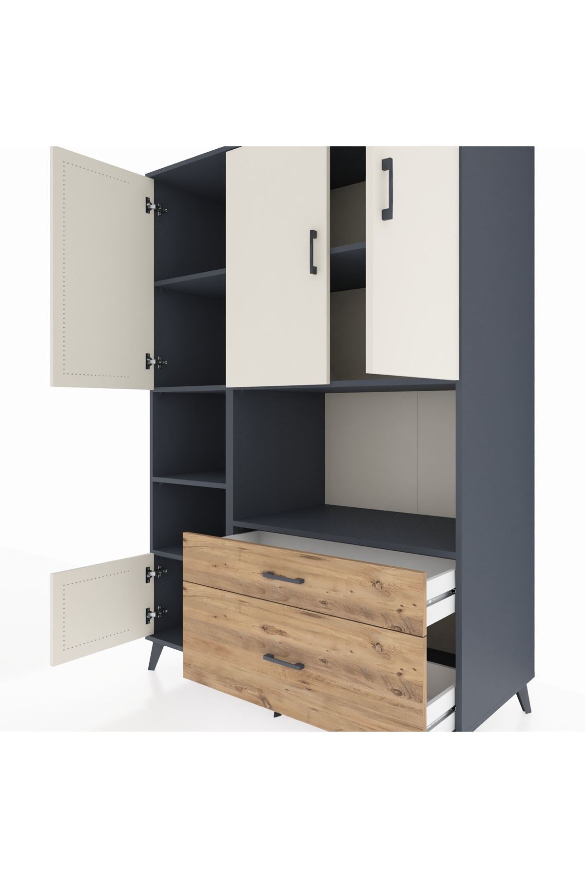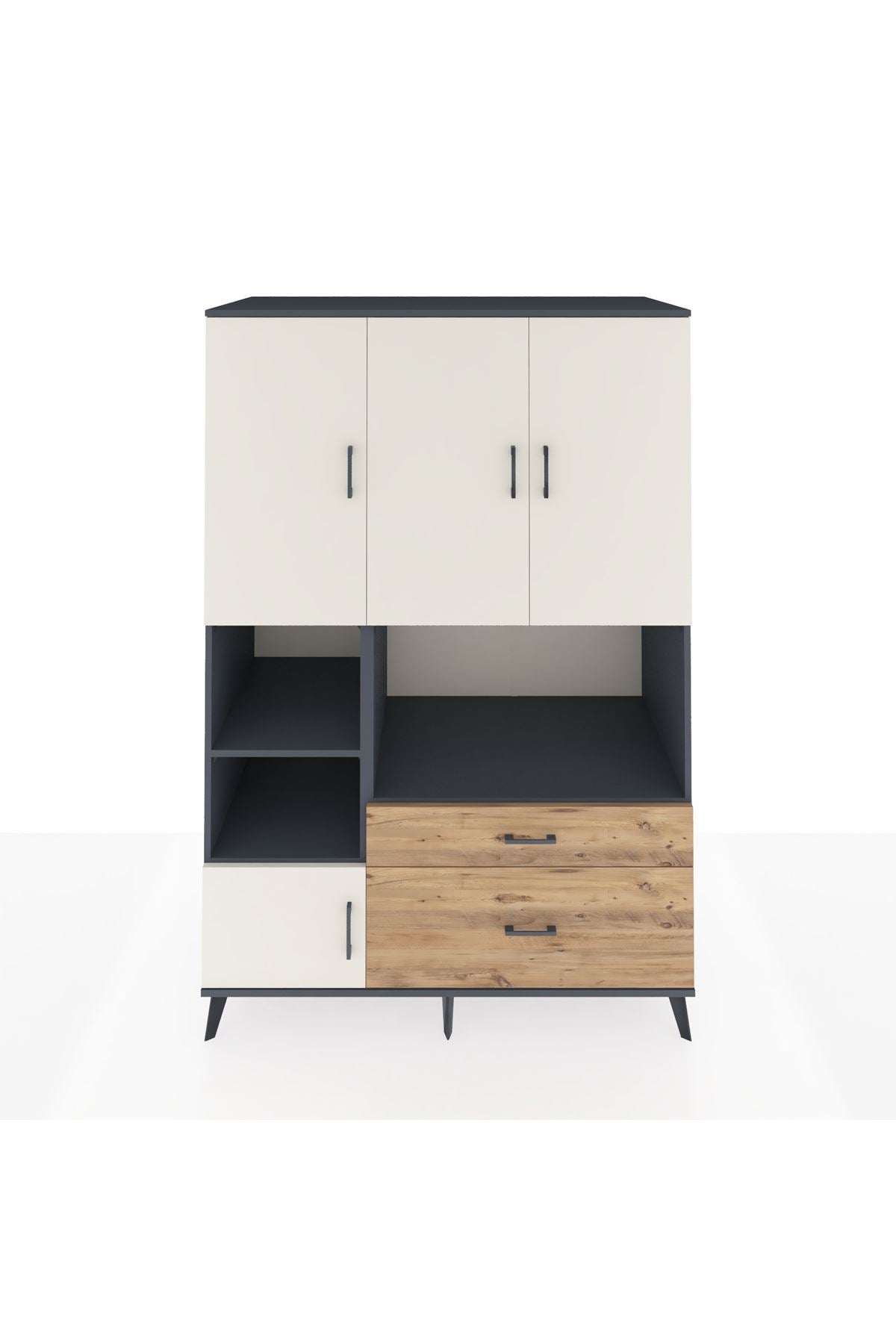 Kronos Dolap 7 Raflı 2 Çekmeceli 5 Kapaklı 132x59x195 Antrasit-Aytaşı/Çam