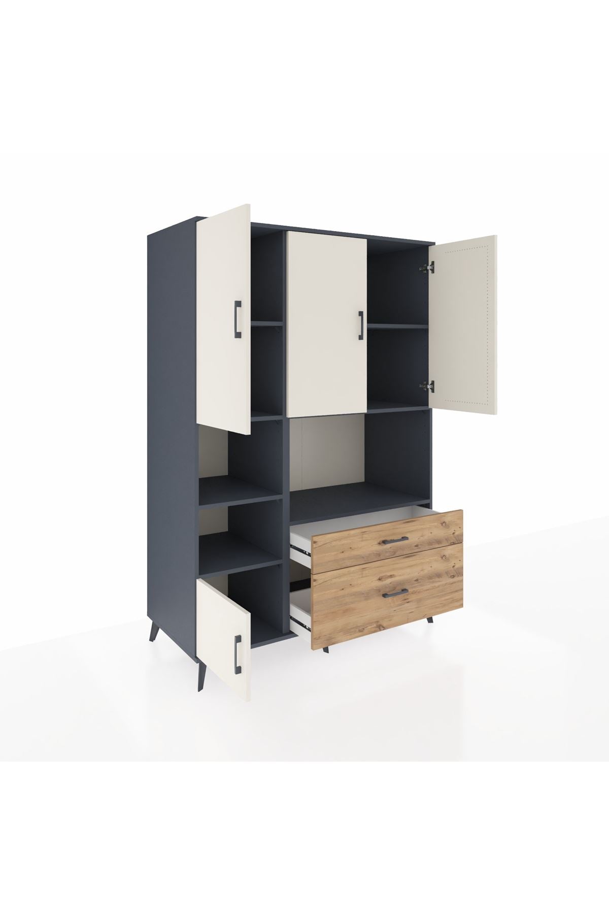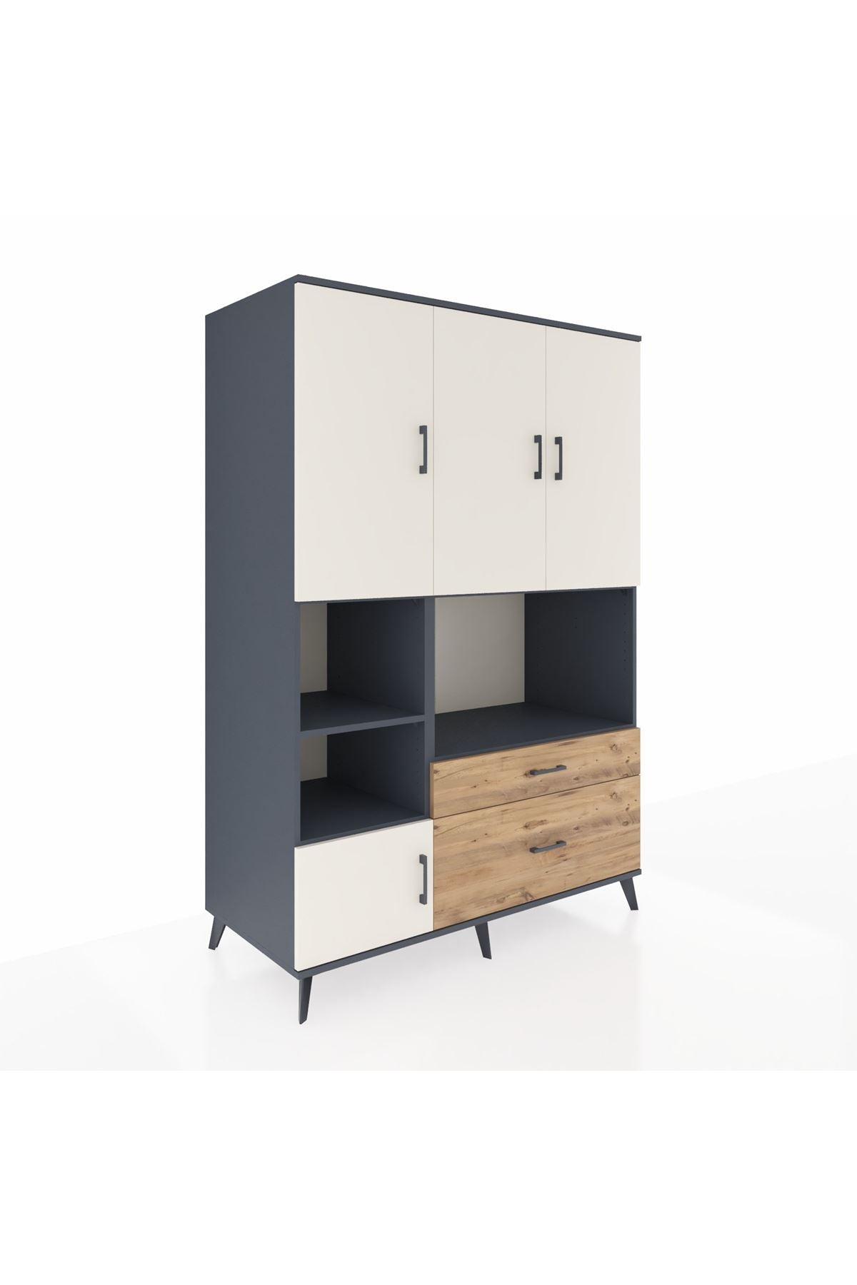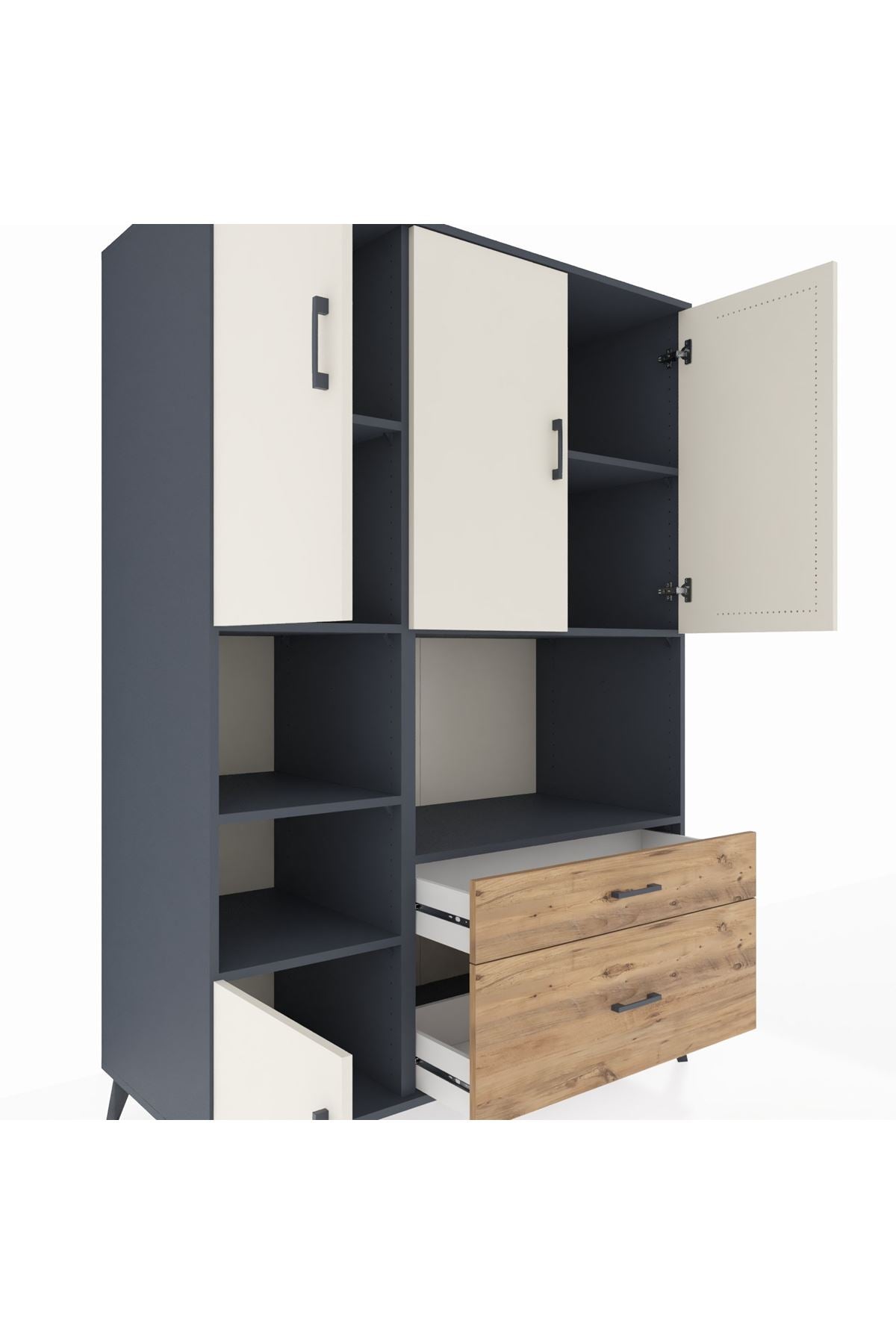 Kronos Dolap 7 Raflı 2 Çekmeceli 5 Kapaklı 132x59x195 Antrasit-Aytaşı/Çam